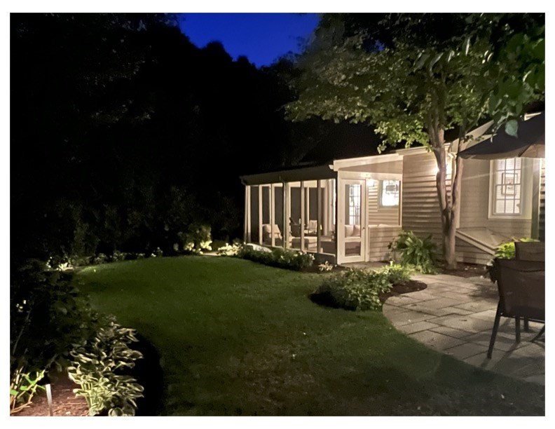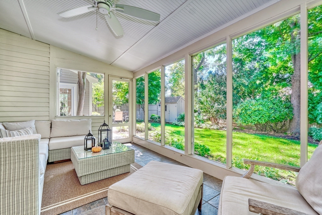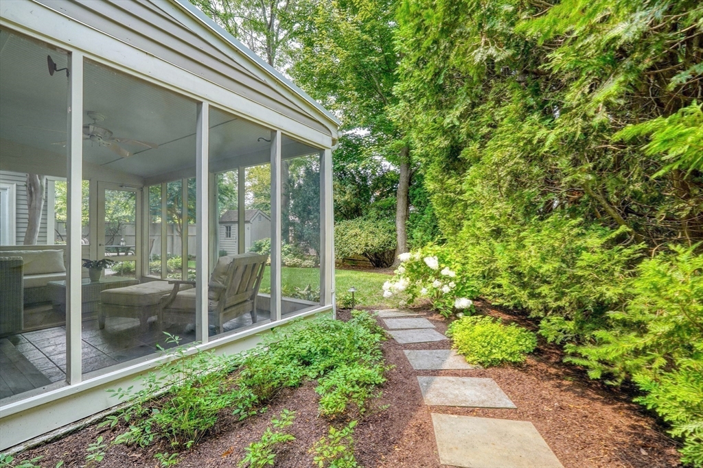 Nestled on a quiet tree lined street this delightful three bedroom, two bath Cape exudes warmth and charm. The home's beautiful curb appeal welcomes you inside to a light filled living room featuring a fireplace and hardwood floors. The open flow continues into the dining room and a comfortable TV room or den with sliding doors leading to the lovely patio. An updated kitchen features newer appliances, quartz counters and ample cabinetry. A convenient work area off the kitchen includes built in cabinets and desk, storage. The first floor bedroom and bath add versatility, perfect for a primary bedroom, office or guest room. Upstairs are two inviting bedrooms filled with natural light and a bath. Enjoy relaxing and entertaining on the lovely screened porch overlooking a well landscaped backyard and patio, creating a seamless connection between indoor and outdoor living. Additional finished space in lower level, central ac, & whole home generator.
