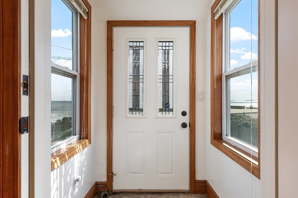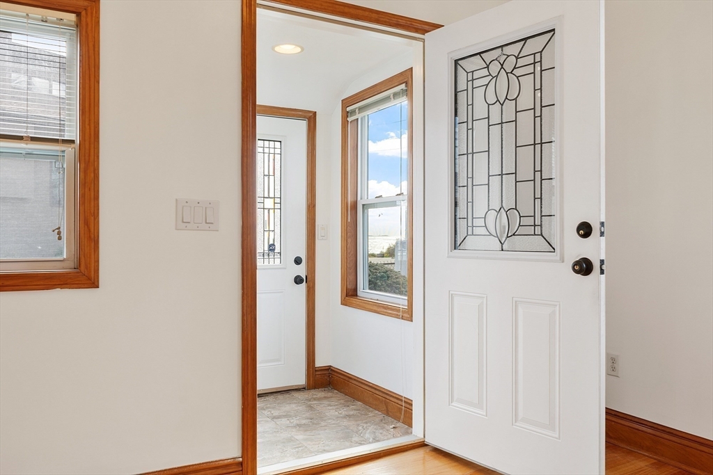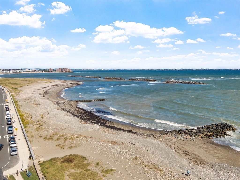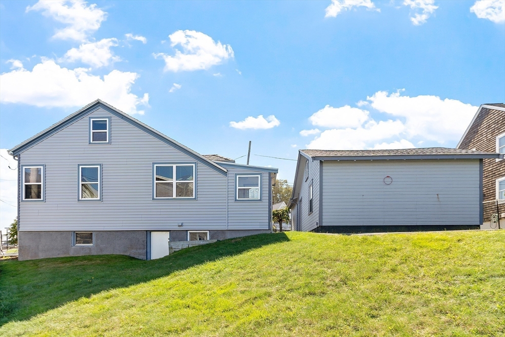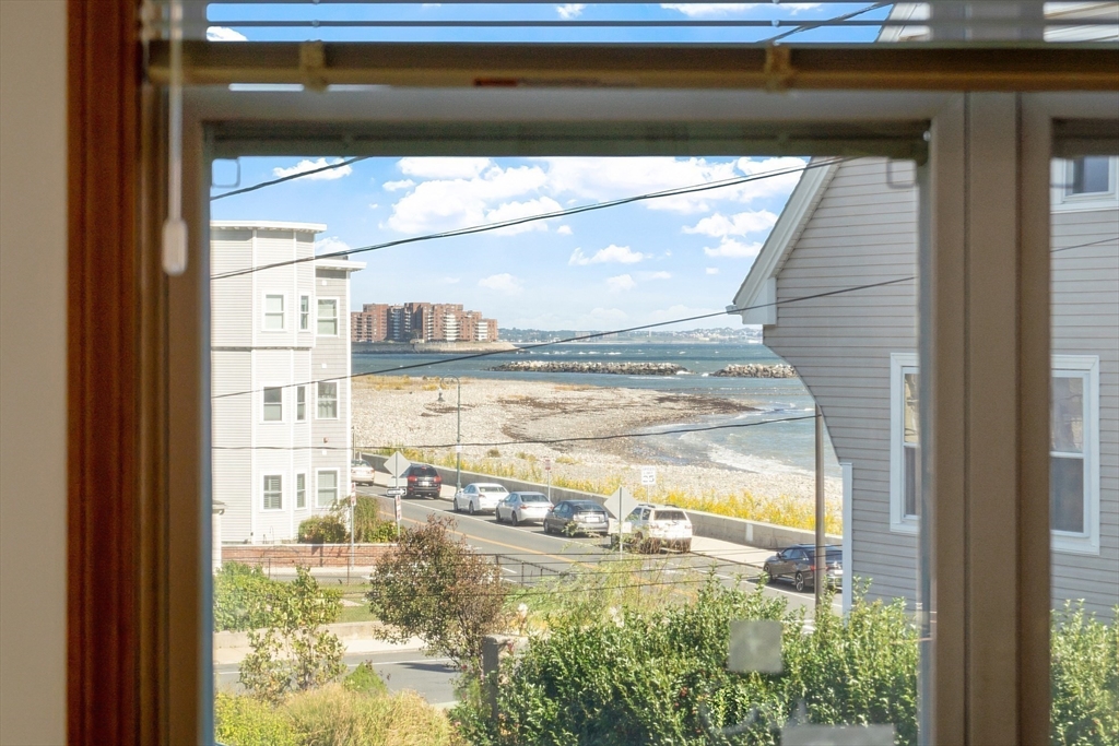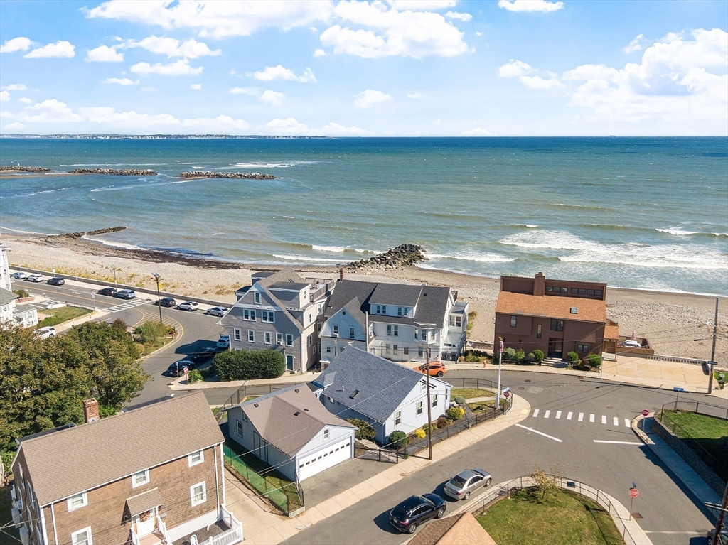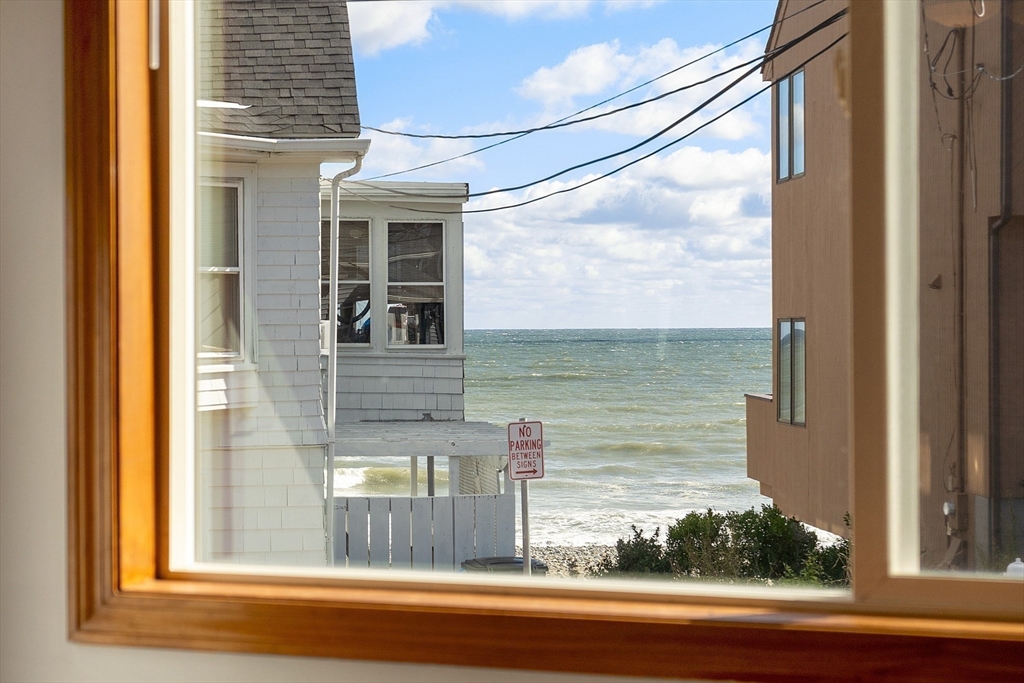Ocean views and the soothing sound of the surf all year long! This meticulous ranch-style home features two bedrooms, one full bath, and gleaming hardwood floors throughout. The welcoming front mudroom with leaded glass doors opens to a spacious living room with recessed lighting. The open floor plan flows into a dining area conveniently located off the updated kitchen, which offers stone countertops, stainless steel appliances, a gas stove, tile backsplash, and hardwood floors. The full bath includes a tiled tub/shower, tile flooring, and a skylight. Both bedrooms feature ceiling fans, recessed lighting, and hardwood floors. Off the kitchen, a step down leads to a tiled rear entry connecting to an oversized two-car garage with an expansive storage and workshop area. Additional storage can be found in the basement. Near Boston with close proximity to public transportation. Enjoy a fenced yard and ocean views from most windows — just move right in and start living the coastal lifestyle!