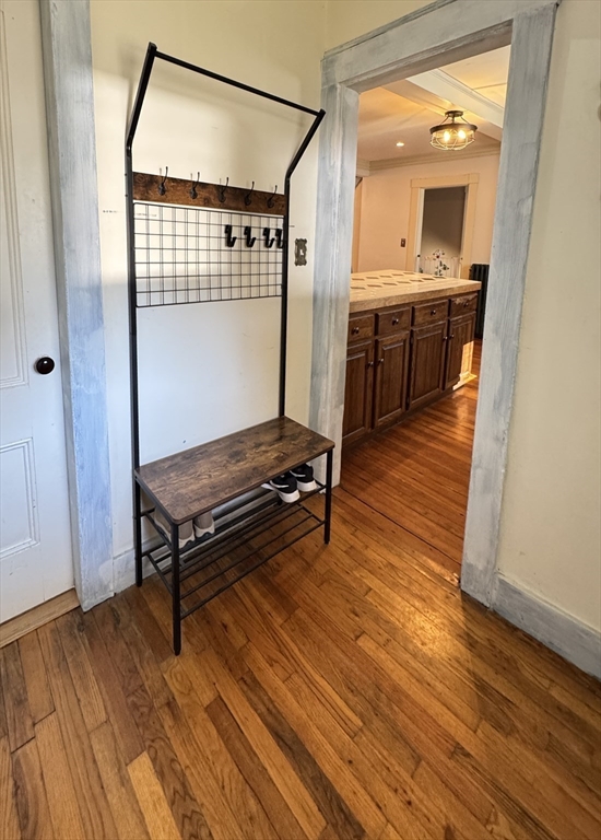 Charming Antique Colonial with timeless appeal and modern updates. Step inside to find spacious rooms, gleaming wood floors, and a front-to-back fireplace living room & a separate dining room. The center island kitchen features stainless appliances, gas cooking with a electric oven, pantry closet, and it opens to a 3-season porch. A first-floor laundry room has a new energy star washer/ dryer with a 10 yr. warranty. The room offers flexible use—ideal for hobbies or as a potential 4th bedroom. Completing the 1st floor is a 1/2 bathroom.. Upstairs, enjoy wide pine floors, 3 large bedrooms, and a new bathroom. Updates include a young roof, hot water heater, new windows, blown-in insulation, 200-amp electrical, and garage doors. Outdoors, a level lot with garden, patio, and private well for watering completes the picture. Conveniently close to highways and recreation area. Showings begin at open houses: Sat. Oct 11th - 11:00 to 12:30 & Sun. Oct 12th 12:00 to 1:30