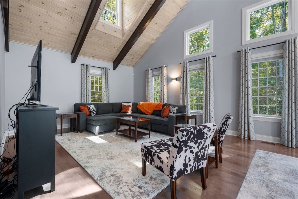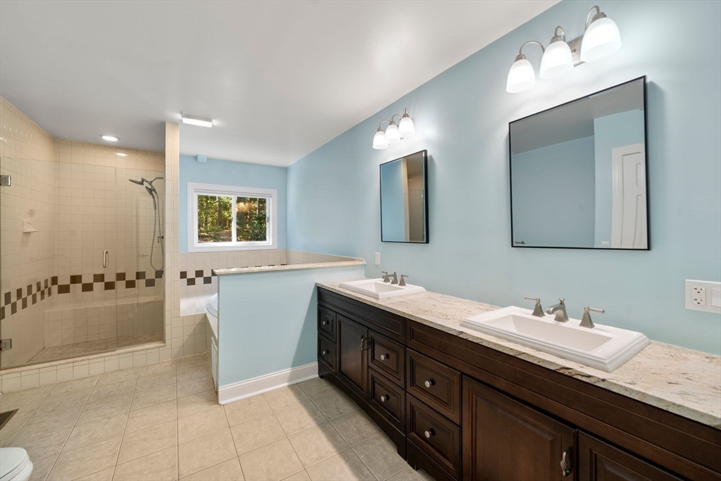 Welcome to 12 Dutton Park Drive — a modern retreat set on 3.5 acres of private, tree-lined land in one of Walpole’s most desirable neighborhoods. This stunning 5-bed, 5-bath home blends design, functionality, and comfort. The main level features a sun-filled open layout with a custom kitchen, high-end appliances, and spacious dining and living areas for effortless entertaining. A second great room with loft offers flexible living — ideal as a main-floor primary suite, au pair suite, or family room. Upstairs, the serene primary suite includes a spa-like bath and walk-in closet, with additional bedrooms for family or guests. The finished lower level adds bonus space for a gym, media room, or play area. Enjoy your expansive yard and deck surrounded by natural beauty, plus central air, an attached garage, and proximity to Walpole Center, schools, and major routes.