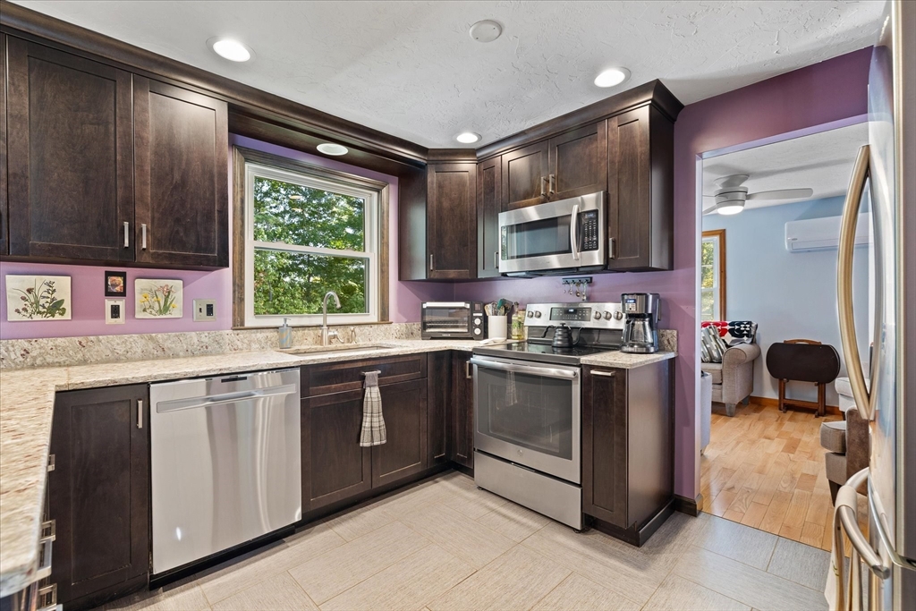 This home is ready to welcome new owners who will love it just as much as the current ones have! Tucked away in a tranquil neighborhood on Leominster’s south side, it offers the perfect mix of modern updates and classic charm. From the attached two-car garage, step into a beautiful kitchen with ceiling-height cabinetry, granite countertops, and stainless steel appliances. The first floor features a spacious living room, a dining area with a fireplace, and a cozy sitting room that’s perfect for the holidays or a relaxing night in. Upstairs, you’ll find four comfortable bedrooms, each with its own mini split for heating and cooling. The primary suite includes a full bathroom, a walk-in closet, and rich maple hardwood floors. Located close to Routes 190, 290, and 2, this home makes commuting easy while keeping you near everything Leominster has to offer.Come see how this beautifully cared-for colonial combines comfort, character, and modern style in a place you’ll love to call home!