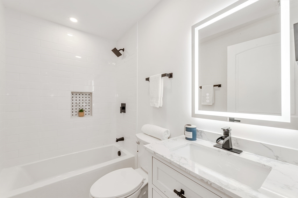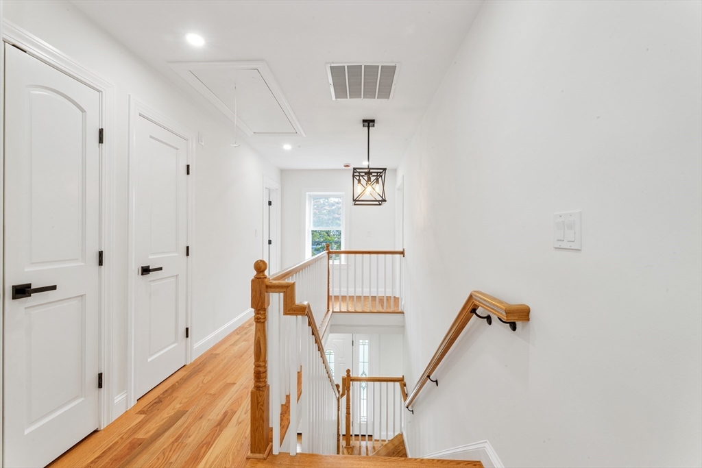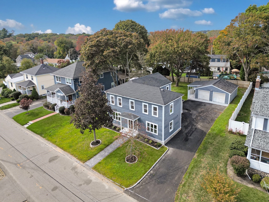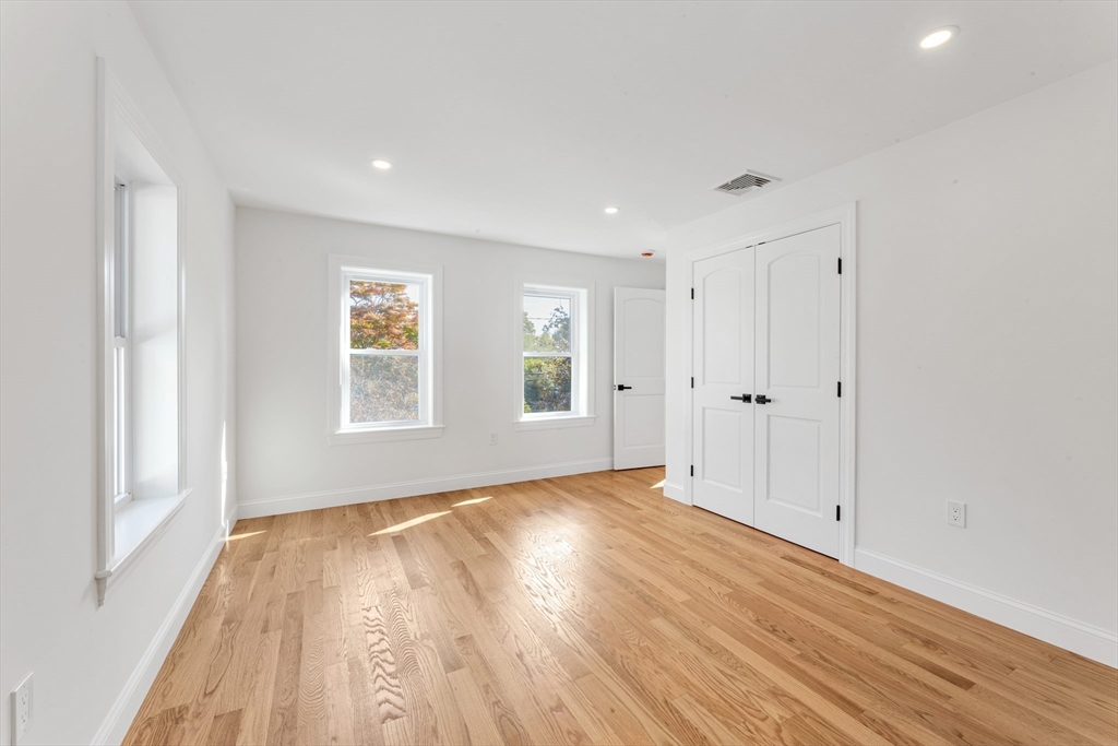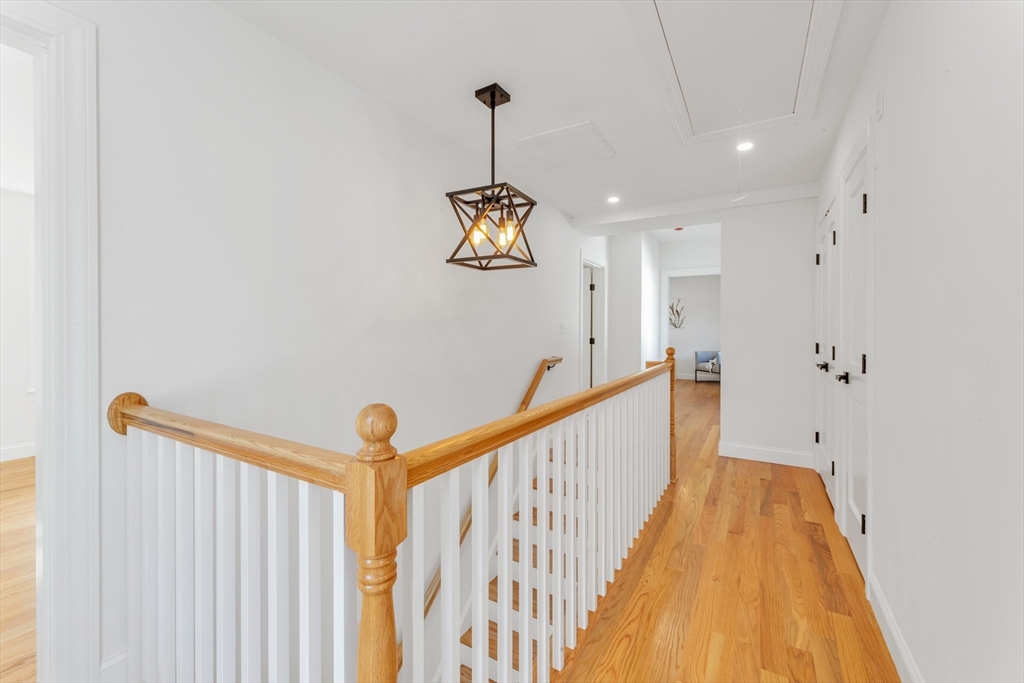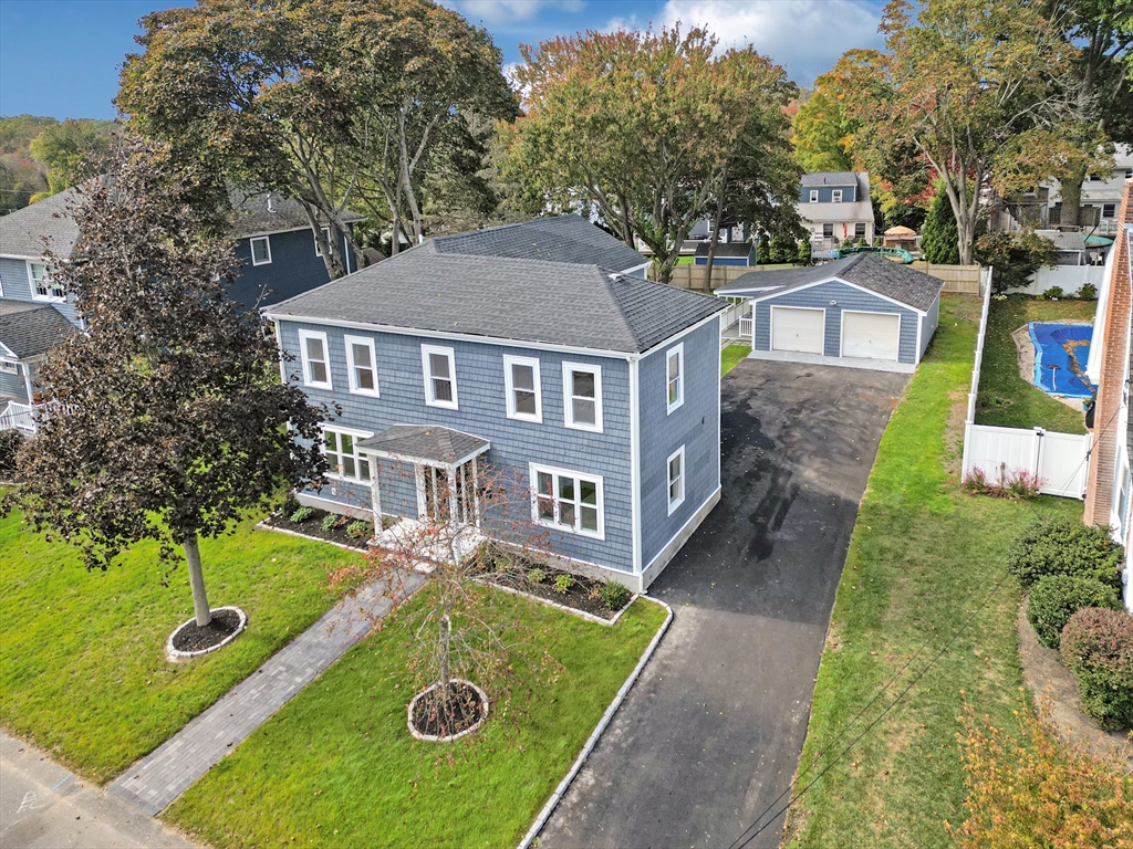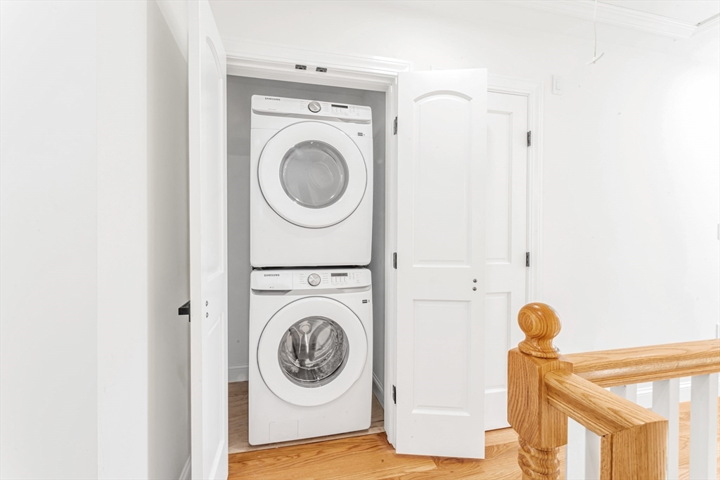 Completely gut renovated from the studs up, 1307 Washington St offers 4 beds, 3 full baths, and modern luxury throughout. The open-concept main level features a designer kitchen with quartz counters, stainless appliances, two kitchen islands that flow into the dining and living areas — perfect for entertaining. A first-floor bedroom and full bath provide ideal guest space. Upstairs includes a spacious primary suite with two closets and a spa-like bath. You'll also find two more large bedrooms, a full bath and the washer/dryer. The semi-finished basement offers great flex space for an office or play room. Enjoy a large detached garage, patio, and yard — all in a convenient Braintree location close to shops, parks, and commuter routes. New garage doors to be delivered/installed soon!