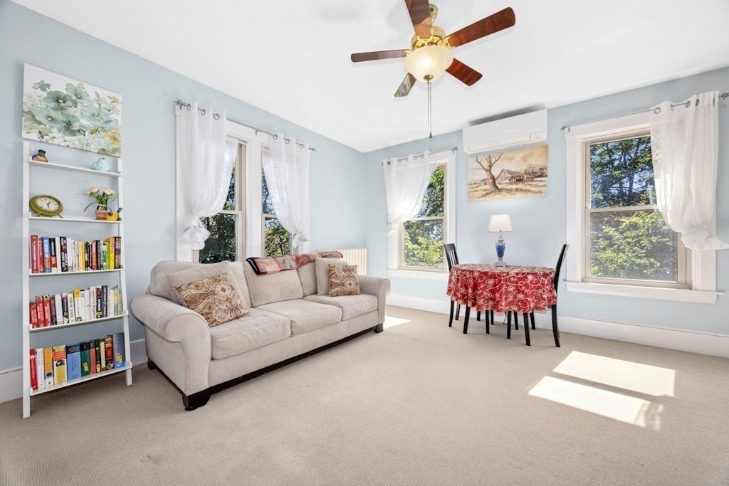 Discover this beautifully restored and meticulously maintained 4-bedroom, 2-bath Victorian home brimming with character, architectural detail, and curb appeal. Perfectly situated in the heart of Marlborough Center, this home blends timeless charm with modern updates. The inviting first floor features a spacious living room and elegant dining room showcasing original details—tall ceilings, large windows, hardwood floors, French doors, and exquisite woodwork. The updated kitchen offers a gas stove, ample cabinetry and dining area that opens to a bright sunroom. A convenient first-floor bedroom and half bath complete the main level. Upstairs, you’ll find three comfortable bedrooms, each with a ceiling fan and closet, plus a full bath with clawfoot tub, separate shower, and tiled floor. The third floor offers a loft area, ideal for a home office or creative space. Located just steps from Marlborough’s vibrant downtown, you’ll be close to local shops, restaurants, and community amenities.