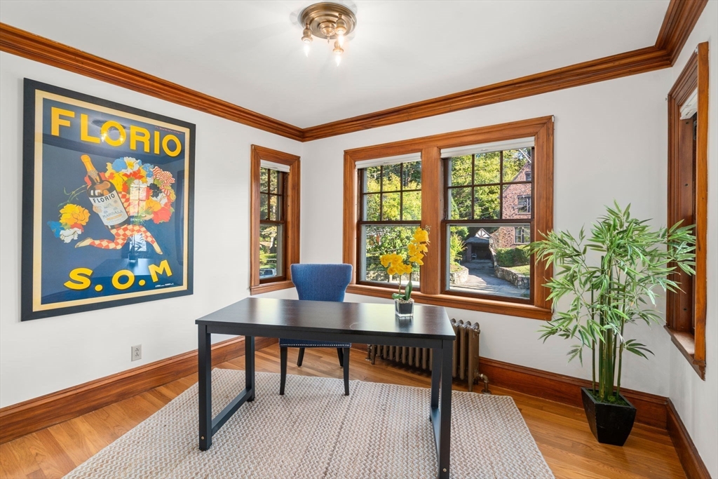 West Newton Hill: This timeless brick colonial with steel beam construction sits on a cul-de-sac right off the scenic Carriage Lane near Peirce School. The gracious entryway opens to a large living room and spacious dining room, filled with natural light throughout. The kitchen boasts granite countertops, a travertine tile backsplash, custom-built island, ample cabinetry and Thermador appliances. The family room, with its natural woodwork and extra-wide windows, leads to a relaxing screened porch. The 2nd floor offers an office and 3 bedrooms, including one with an adjoining room. The walk-out lower level is exceptionally practical, featuring an ensuite bedroom with large windows ideal for guests or an au-pair; sunroom with sliding doors to the bluestone patio and private yard, and access to a large 2-car garage. A walk-up attic with great ceiling height offers potential for expansion. Located near shops, restaurants, public transportation, MA Pike and I-95. Seamless commute to Boston.