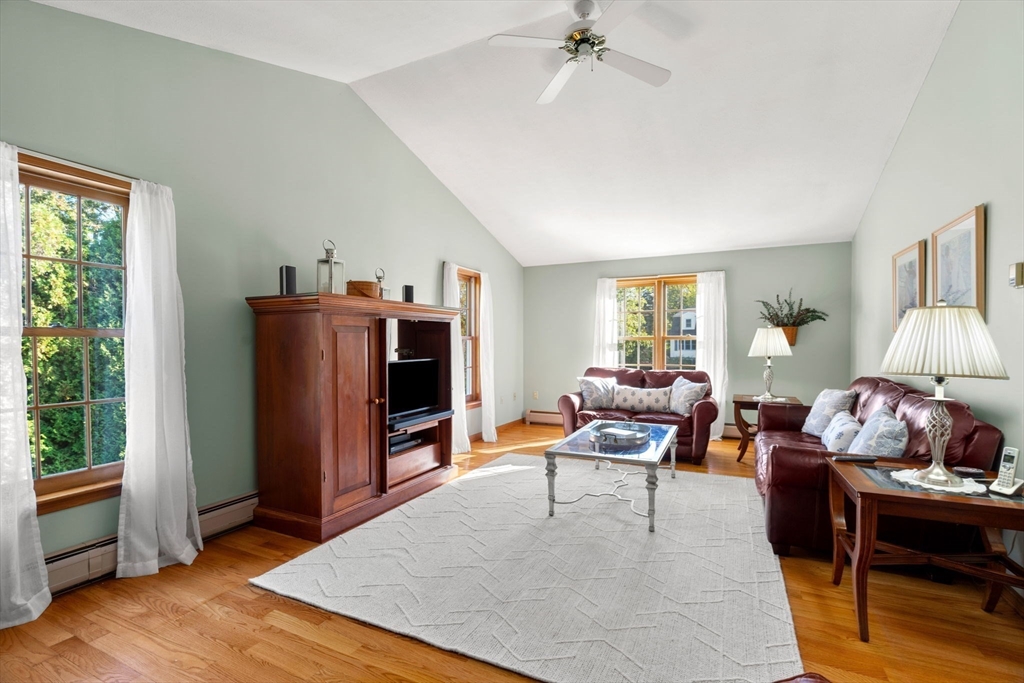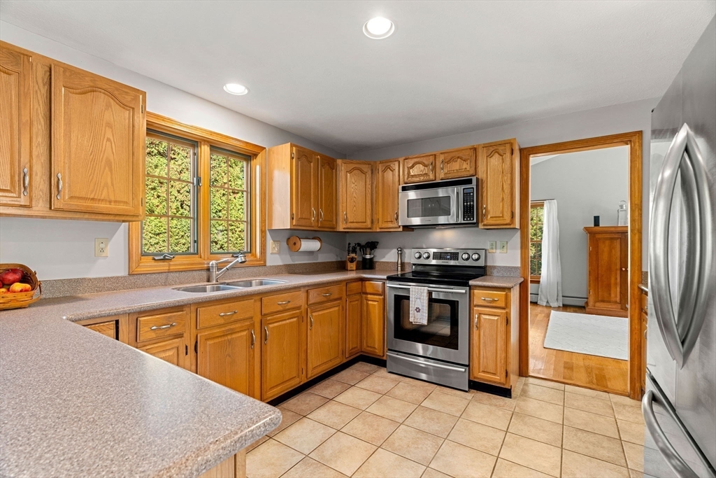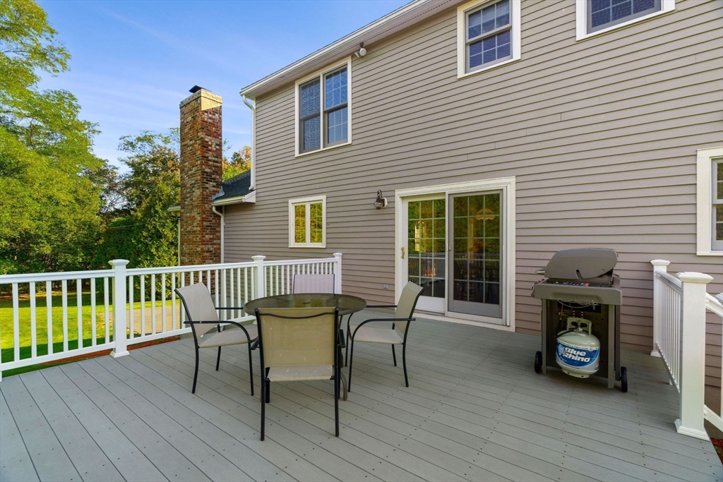 Welcome to 1 Stacey Lane — a beautifully maintained 3-bedroom, 2.5-bath Colonial set on 1.26 private, wooded acres in one of Amesbury’s most desirable neighborhoods. Surrounded by mature trees and landscaped grounds, this home offers the perfect blend of privacy and community. Sun-drenched living spaces feature enlarged windows, hardwood floors, and ceramic tile throughout the main level. The inviting living room with cathedral ceilings and fireplace opens to an updated eat-in kitchen and an expansive composite deck ideal for entertaining or quiet relaxation. Upstairs, three spacious bedrooms offer comfort and flexibility, with newer carpeting added just three years ago. Additional highlights include a two-car garage, newer roof, and quiet cul-de-sac setting just a short walk to Cider Hill Farm. A perfect mix of neighborhood charm and natural beauty—this home truly has it all!
