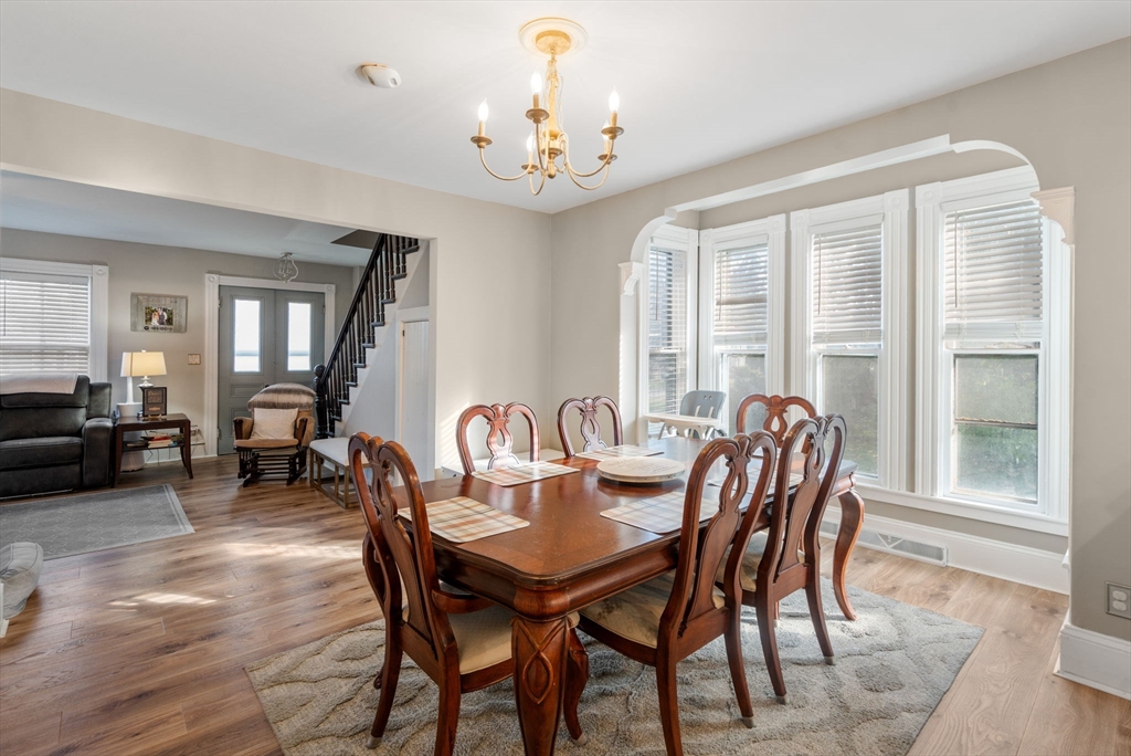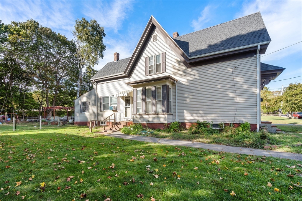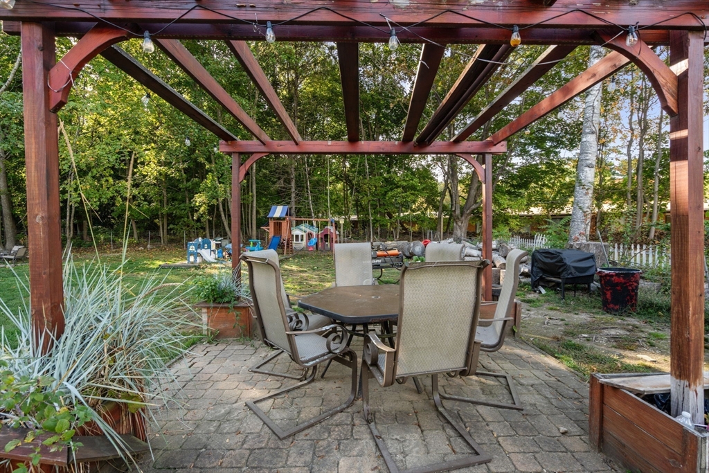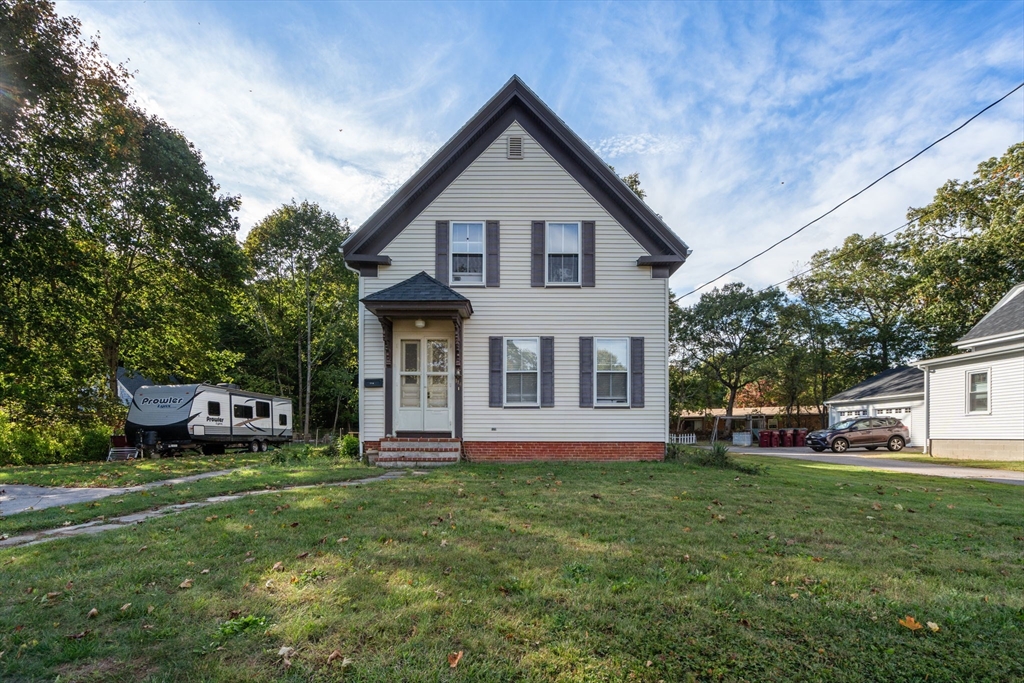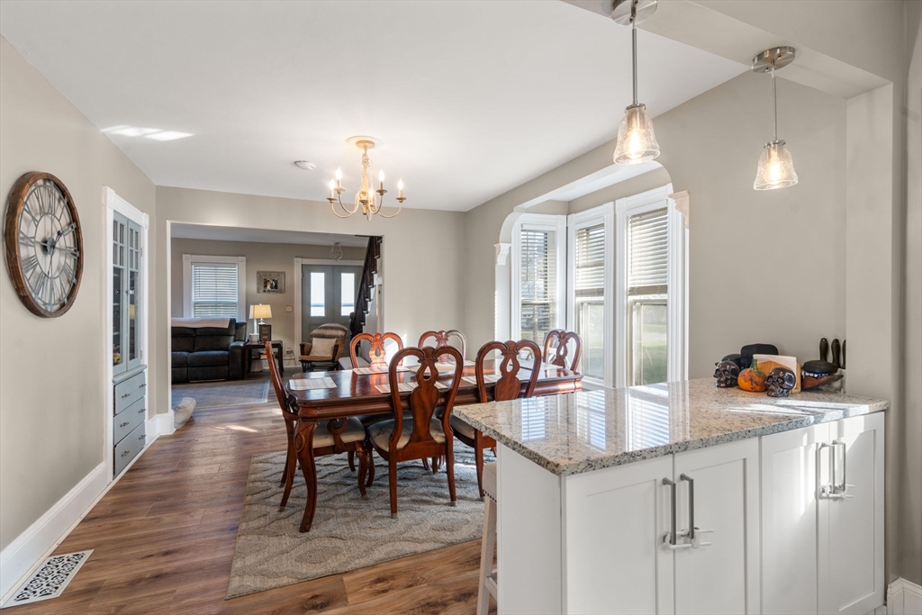 Colonial offering 3 bedrooms and 2 full bathrooms. New kitchen with granite, stainless steel appliances and new flooring all throughout. Open floor plan with updated lighting. Hot water heater and furnace replaced in 2023. Fenced backyard with pergola and a fire pit for entertaining. Easy highway access, five minutes from the commuter rail or a five-minute walk to do downtown.