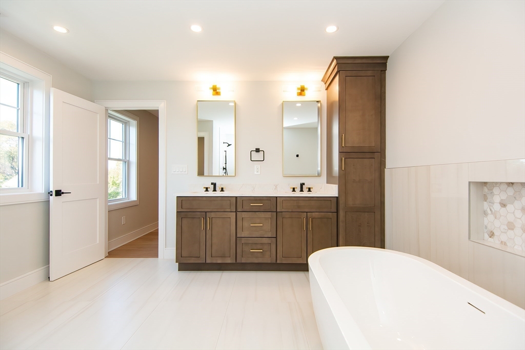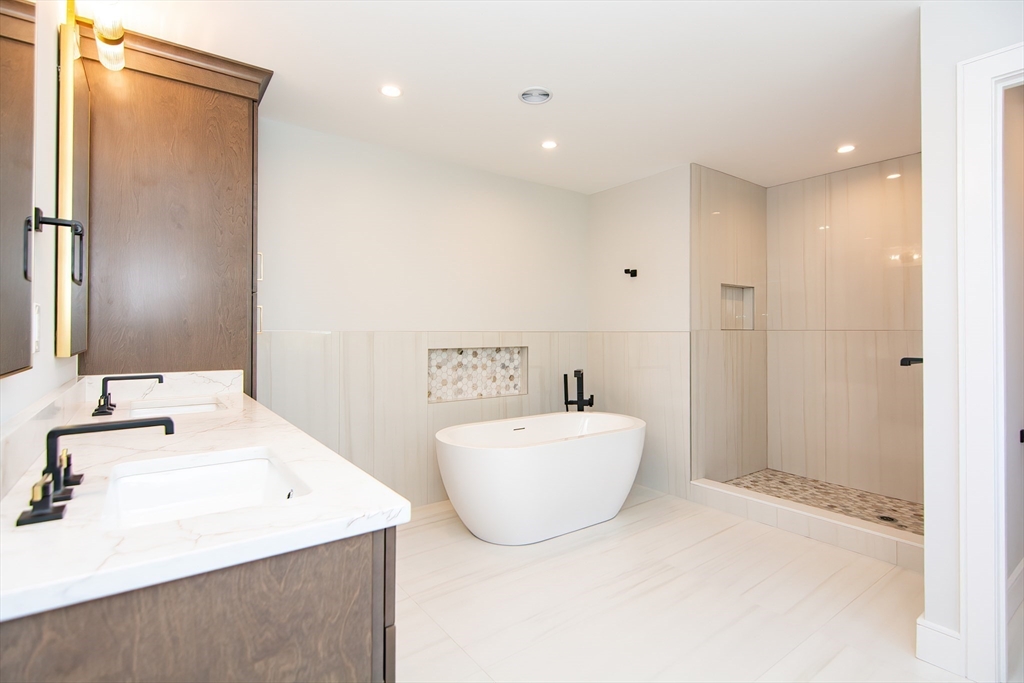 This exceptional 4-bedroom, 4.5-bath residence redefines new construction with its refined craftsmanship, designer finishes, & thoughtful floor plan. The main level includes a color-drenched office/sitting room, open concept design with chef’s kitchen, dining area and family room w cathedral ceiling & gas fireplace, and a slider to a deck overlooking a fenced yard. Half bath is just off the kitchen, plus mudroom & access to an oversized 2 car garage. 4 bedrooms upstairs, including a guest suite with full bath, & primary suite with spa bath & huge walk-in closet/dressing room. A full bath with tub and 2 bright bedrooms with enormous double closets complete this level. The lower level surprises with a large flex space, additional room for a potential 5th bedroom, gym or office, full bath, and separate entry with private sunken patio. First showing at the 1st Open House on Saturday, 10/11 and Sunday, 10/12 from 11:00 AM-12:30 PM.