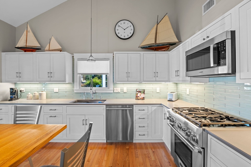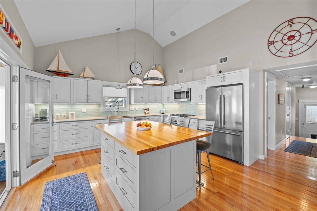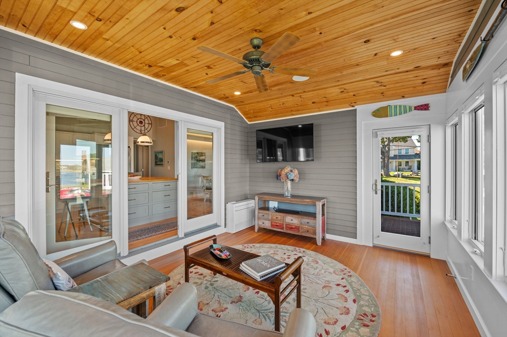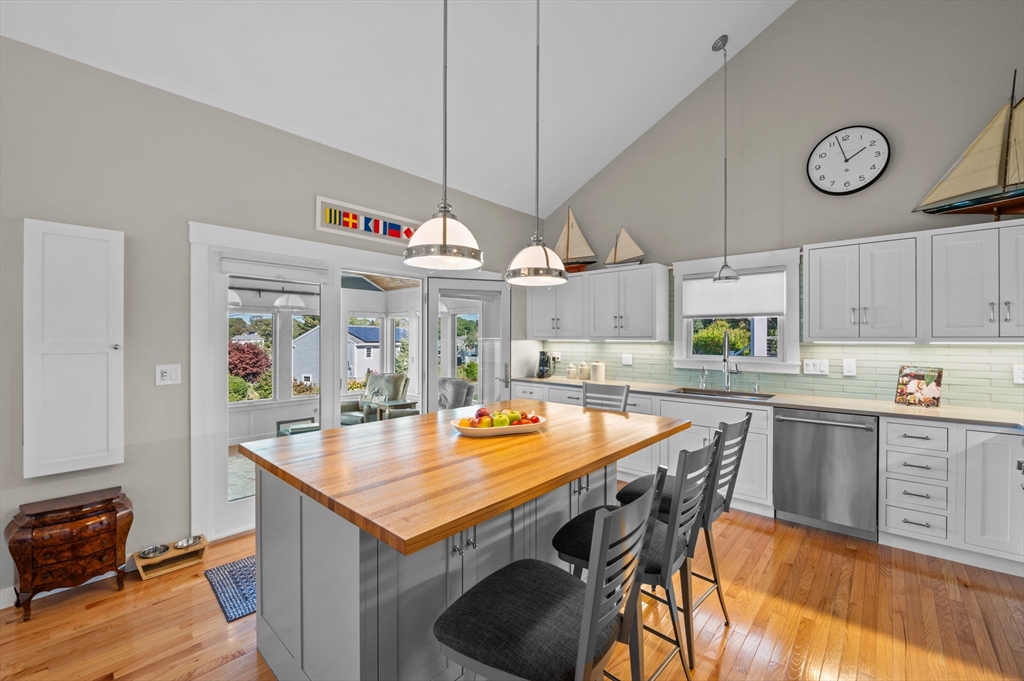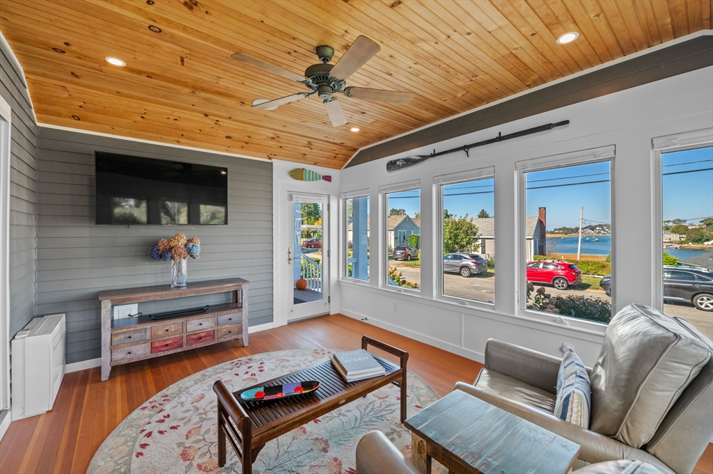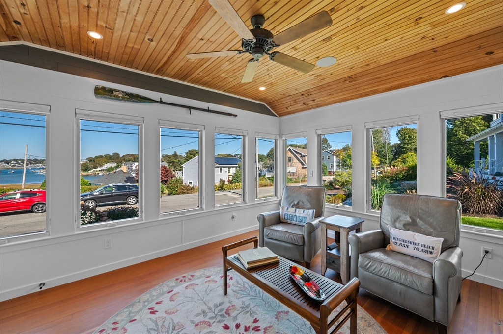 Rarely available in Wheeler’s Point. This fully renovated residence showcases attention to every detail offering modern comfort and convenience for easy single-level living. This home has scenic views of the boats going down the Annisquam River. The updated kitchen features high-end custom cabinets, appliances, and spacious butcher block center island for entertaining. The kitchen leads to a sun filled four-season room. The open concept living/dining room boasts cathedral ceilings, oak floors, and a Mendota gas fireplace. Two new full baths and first-floor laundry. Updates include all-new systems, James Hardie siding, Andersen windows, central air and enhanced insulation. The lower level provides flexible space with room for abundant storage, gym or playroom. Thoughtfully designed grounds with patios in front and back, perfect for entertaining or relaxing along with Boston Fence for backyard and raised gardens along with an Eastern-Shed for storage.