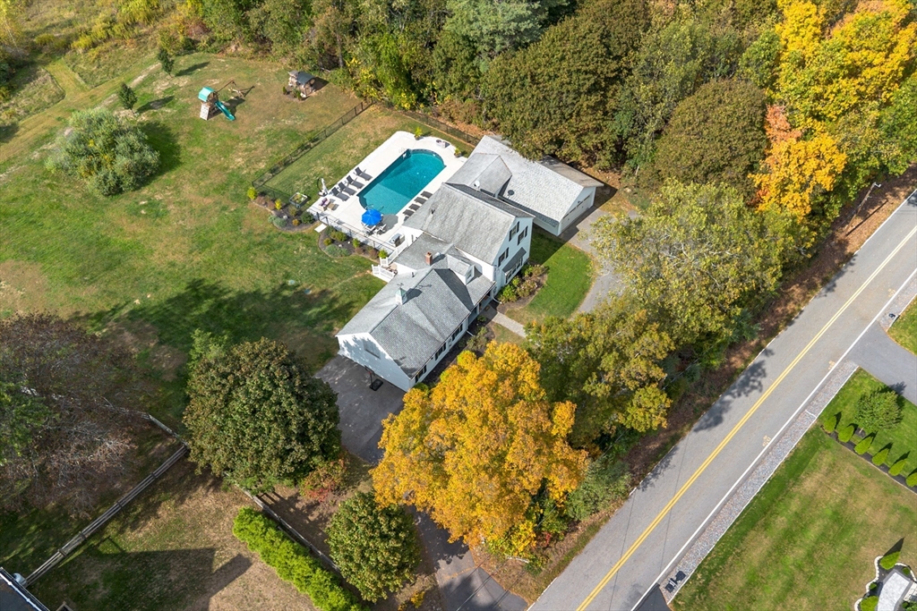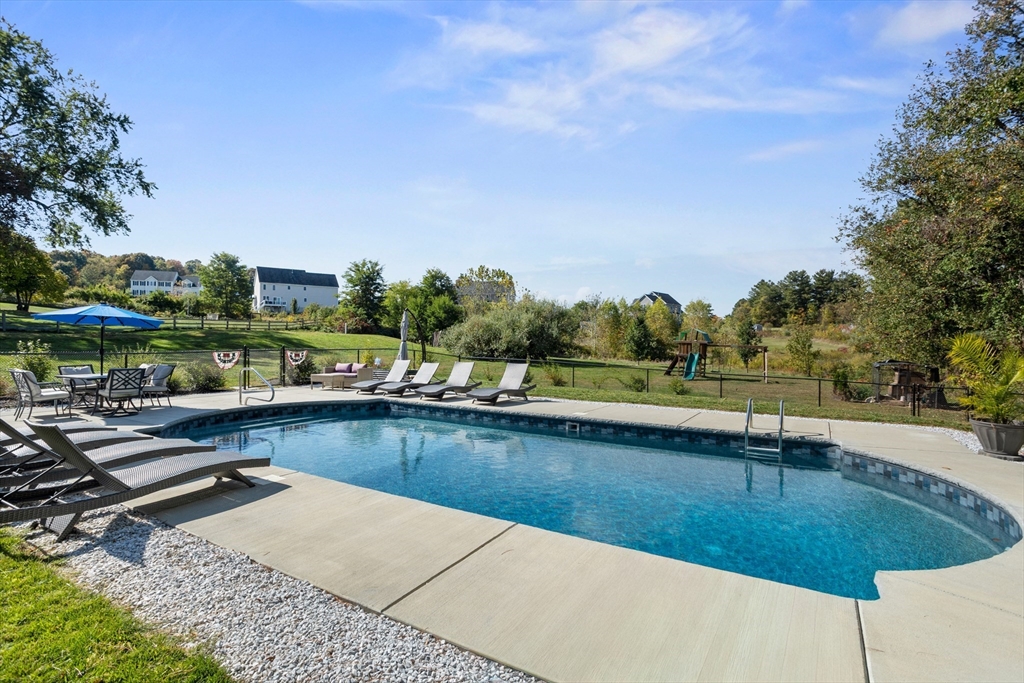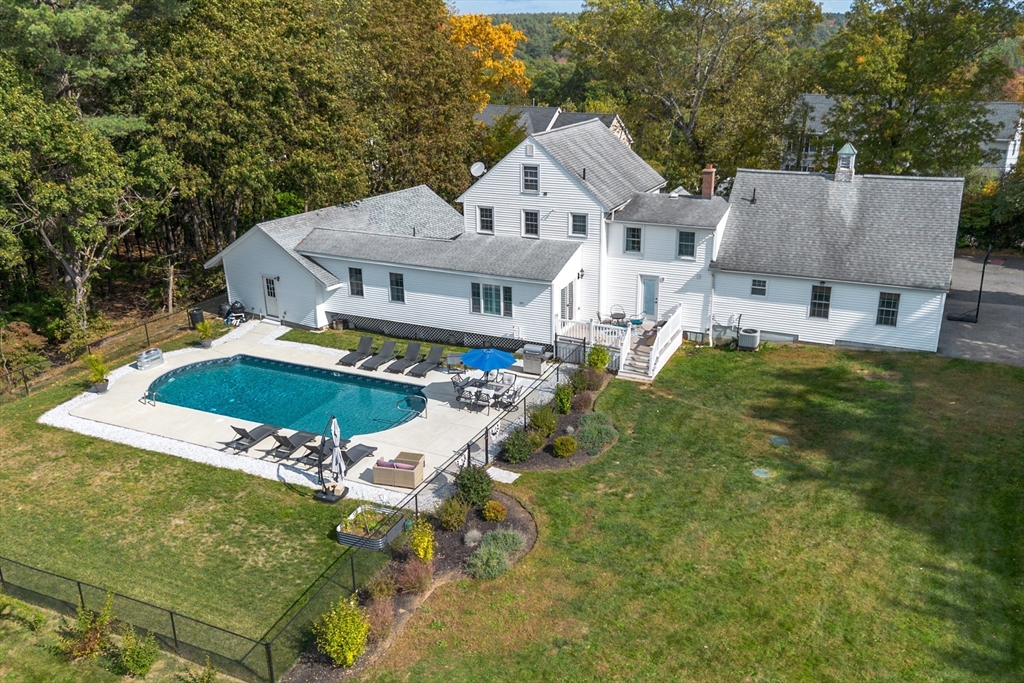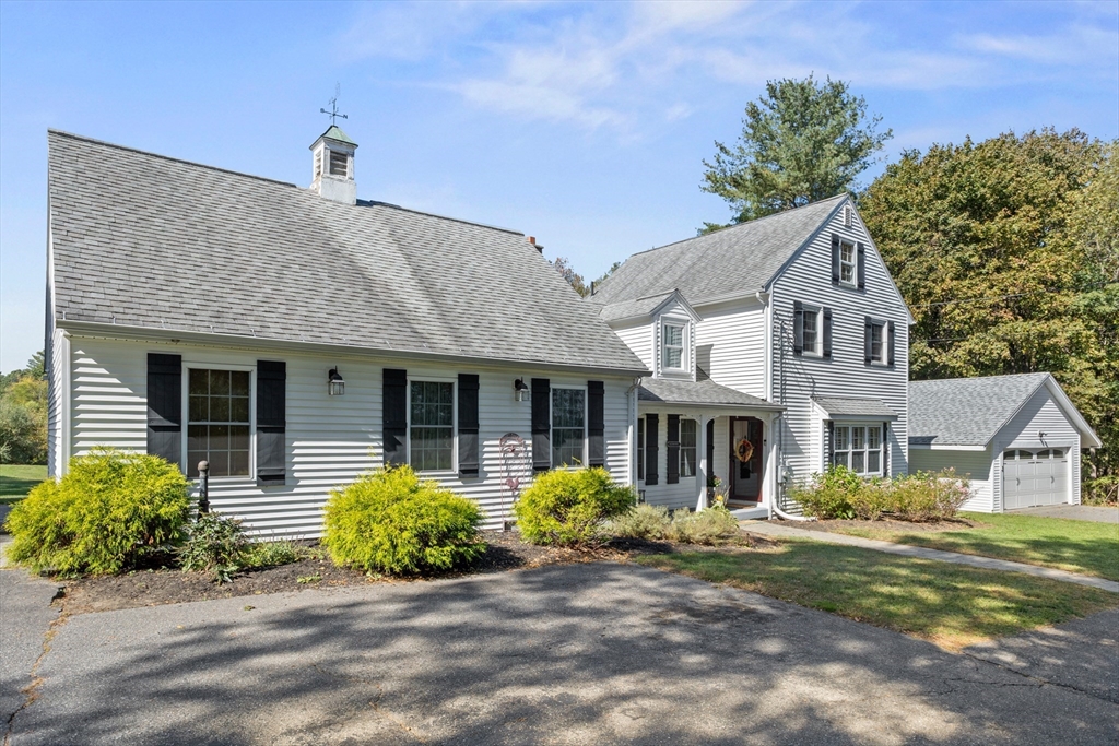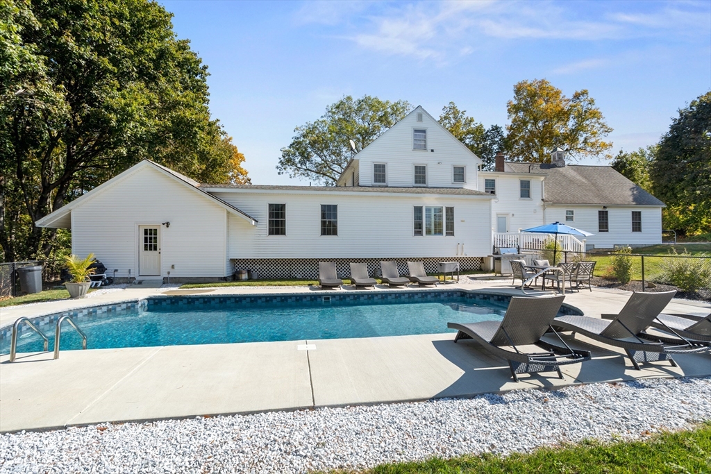 Own a piece of New England charm with this beautifully renovated farmhouse offering 4 bedrooms, 2.5 baths, and a dedicated home office. Timeless character meets smart updates: roof (2016), upgraded electrical, efficient heating/cooling, and a quality addition. The crisp gourmet kitchen features a walk-in pantry, Thermador 6-burner range with griddle and hood, abundant cabinetry, granite counters, and hardwood floors. An open, inviting family room with gas fireplace anchors the main level. The first-floor primary suite provides two walk-in closets and a spa bath with steam shower, plus a large first-floor laundry for daily ease. Step outside to your private retreat: a stunning heated, inground saltwater pool beside a tree-lined yard abutting conservation land—ideal for relaxing and entertaining. An oversized garage, serene setting, and quick access to Worcester and Routes 190/290/12/110/140 add convenience. This turnkey New England home blends charm, comfort, and location!