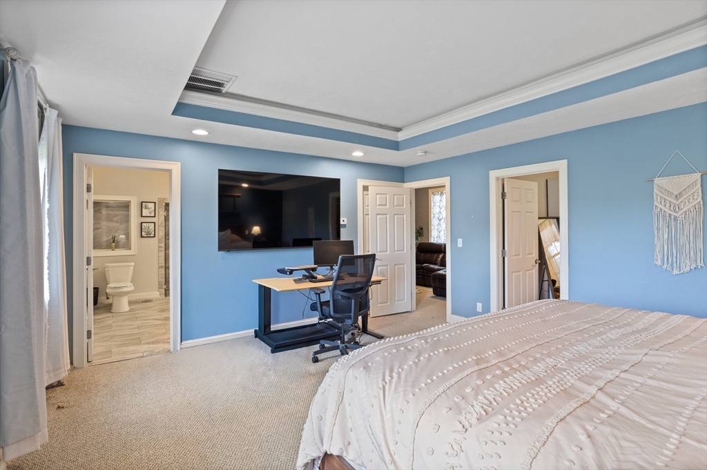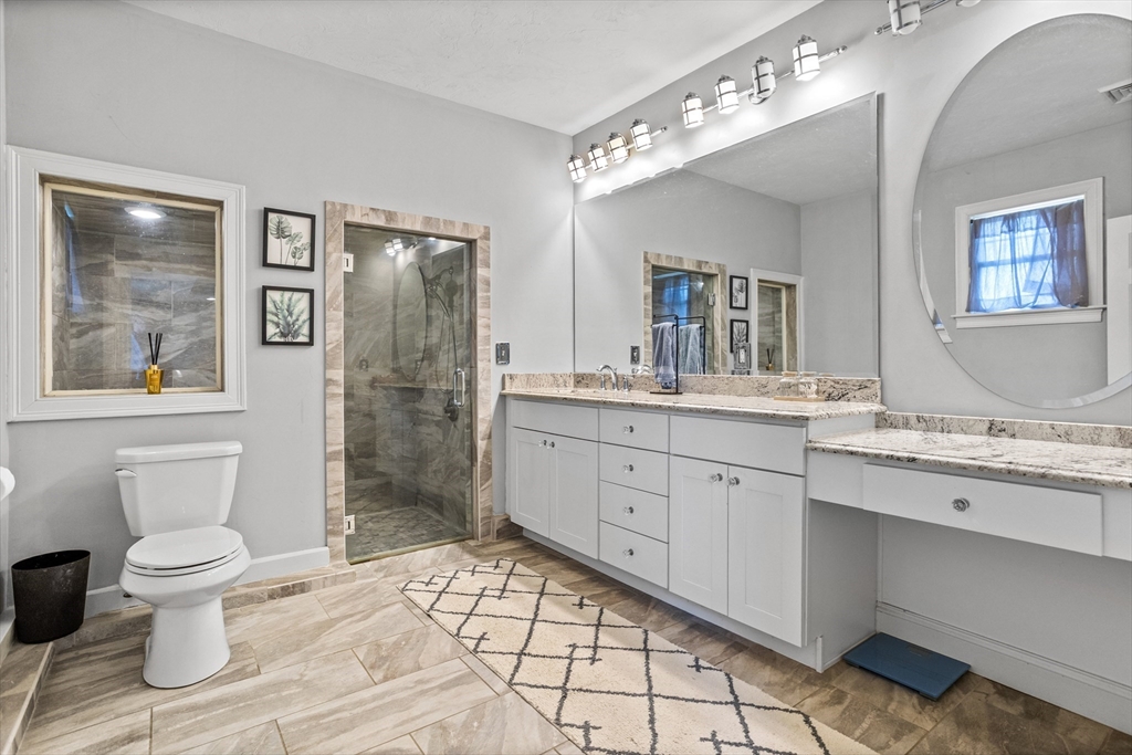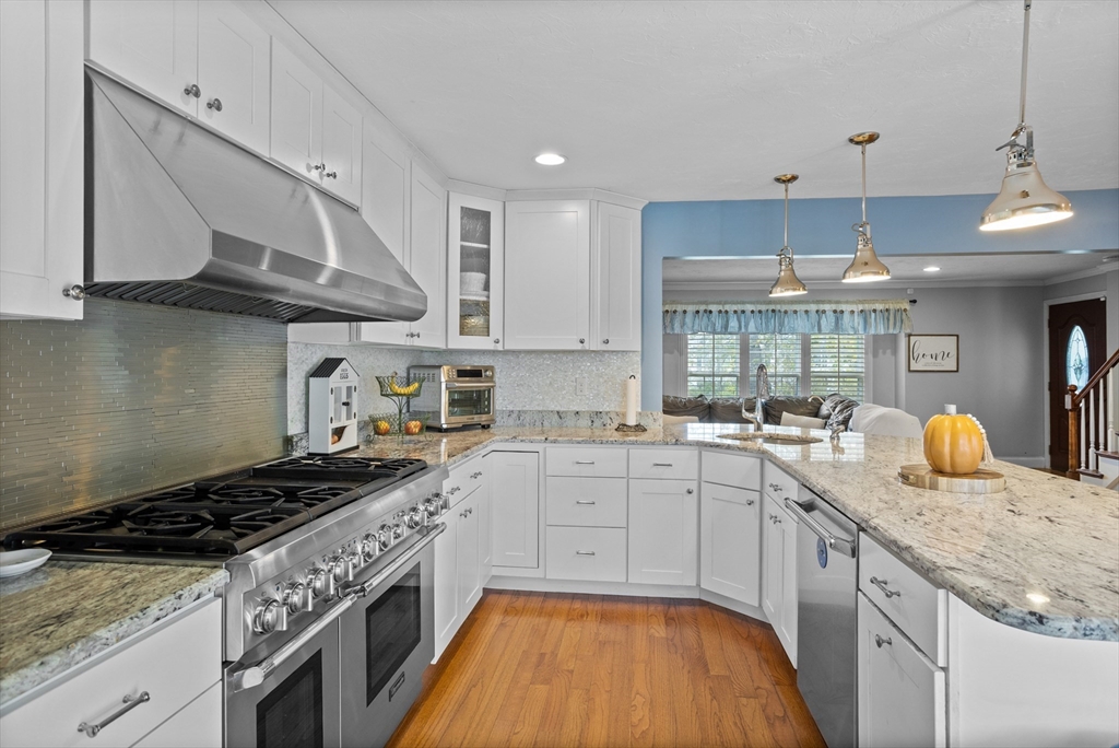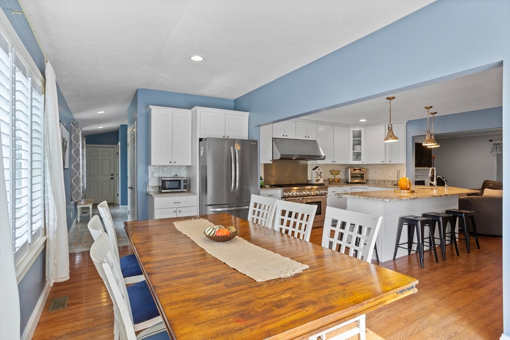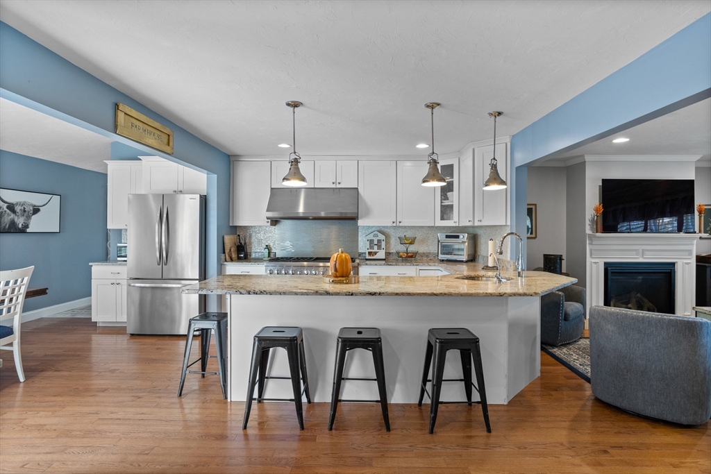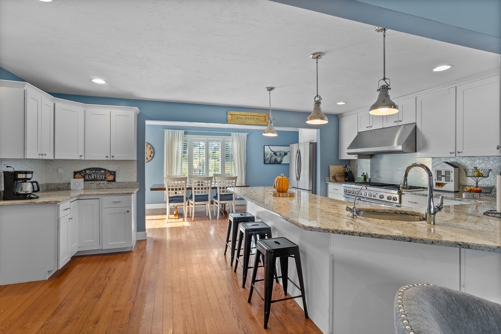 Own a piece of New England charm with this beautifully renovated farmhouse offering 4 bedrooms, 2.5 baths, and a dedicated home office. Timeless character meets smart updates: roof (2016), upgraded electrical, efficient heating/cooling, and a quality addition. The crisp gourmet kitchen features a walk-in pantry, Thermador 6-burner range with griddle and hood, abundant cabinetry, granite counters, and hardwood floors. An open, inviting family room with gas fireplace anchors the main level. The first-floor primary suite provides two walk-in closets and a spa bath with steam shower, plus a large first-floor laundry for daily ease. Step outside to your private retreat: a stunning heated, inground saltwater pool beside a tree-lined yard abutting conservation land—ideal for relaxing and entertaining. An oversized garage, serene setting, and quick access to Worcester and Routes 190/290/12/110/140 add convenience. This turnkey New England home blends charm, comfort, and location!