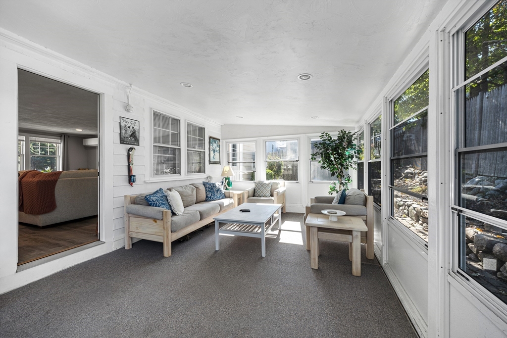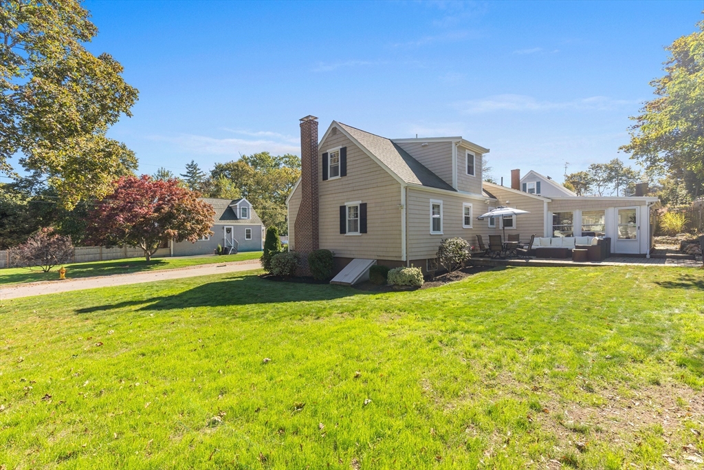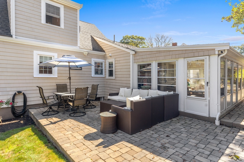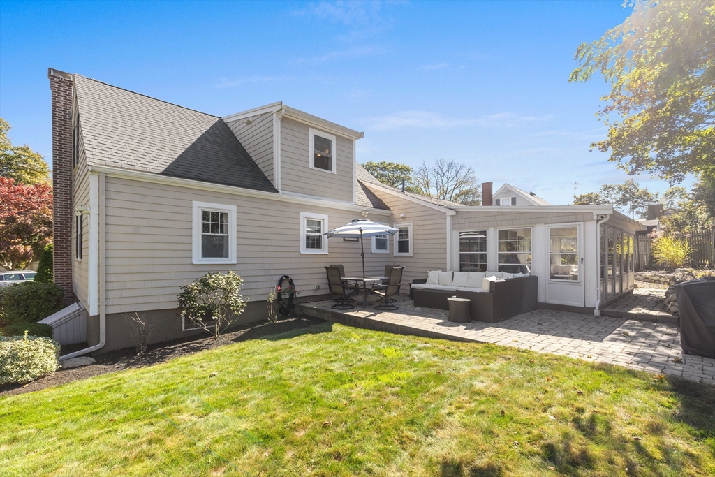 CHARMING and SPACIOUS cape in a sought after South Weymouth cul-de-sac neighborhood! Lots of room to spread out and enjoy this lovely home. Most notable is the oversized family room off the kitchen which is perfect for all to gather. This room also flows nicely to the large 3 season porch that overlooks the expansive level yard with patio. Enjoy the renovated kitchen with stainless appliances and breakfast bar which has been opened up into the dining area to allow great natural light and space. A living room with fireplace offers an additional cozy living area. Upstairs there are two nice sized bedrooms and a recently renovated full bath. The third bedroom is on the first floor with another full bath. The lower level is partially finished offering a gym space, play room and laundry. Fabulous location with easy access to Rte 3 and South Shore hospital!