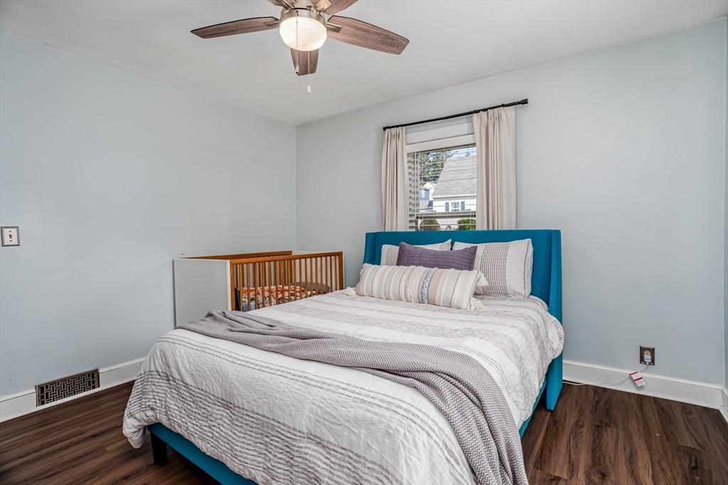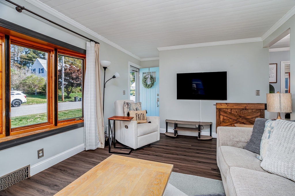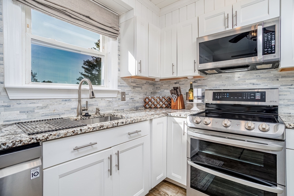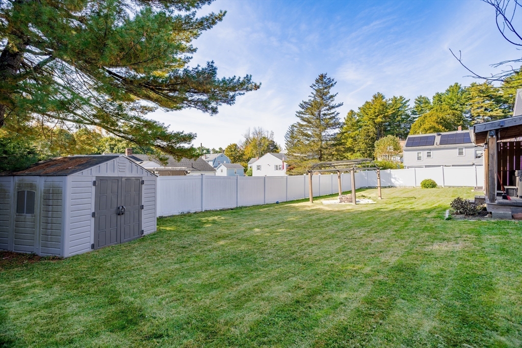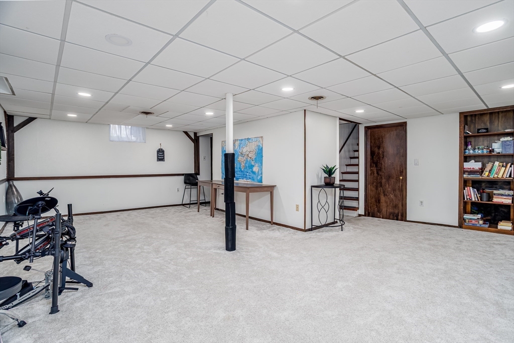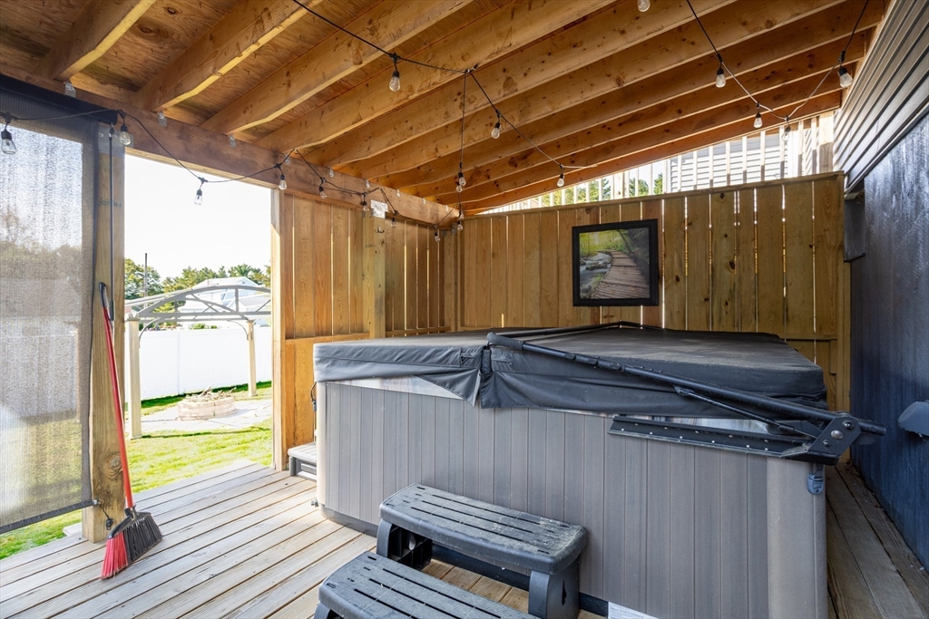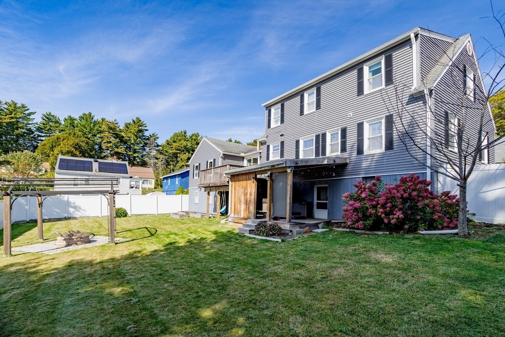 Situated on a quiet dead-end street, this warm and welcoming Cape has been thoughtfully cared for and improved over the years. The flexible floor plan allows for a primary bedroom on either level, with four bedrooms total and one and a half baths. The bright kitchen features granite counters, recessed lighting, and stainless appliances, opening to a sunlit living room with a bay window. The walk-out lower level offers extra space for a home office, playroom, or cozy retreat. The current owner added central air, a water-softening system, and worked with the Mass Save Energy Program to increase efficiency with added insulation and other upgrades. Outside, enjoy a fenced yard with a deck, covered patio, hot tub, and cabana — the perfect place to relax or gather with friends. A happy home, filled with love and ready for its next chapter.