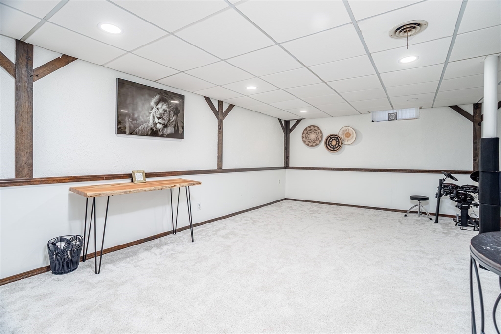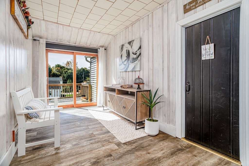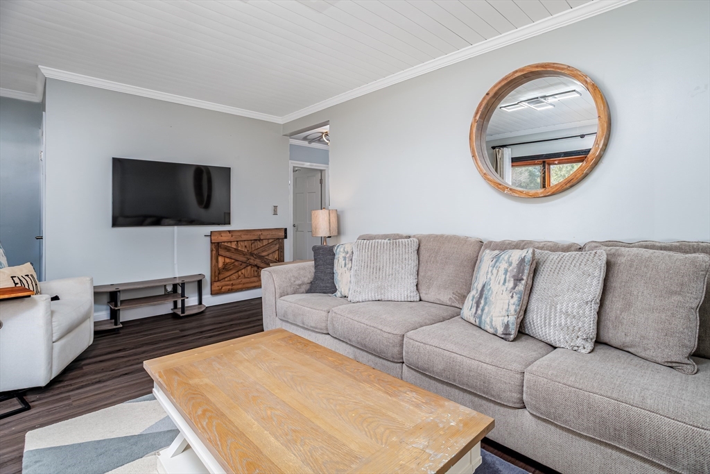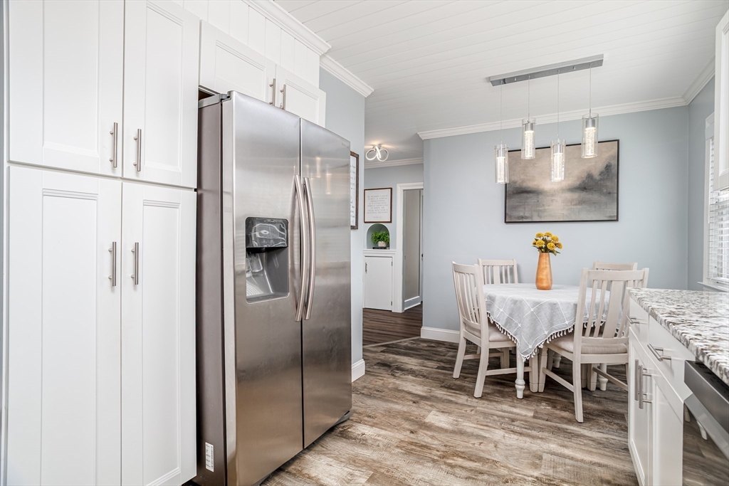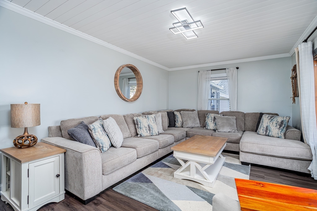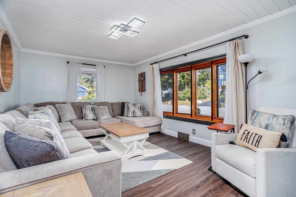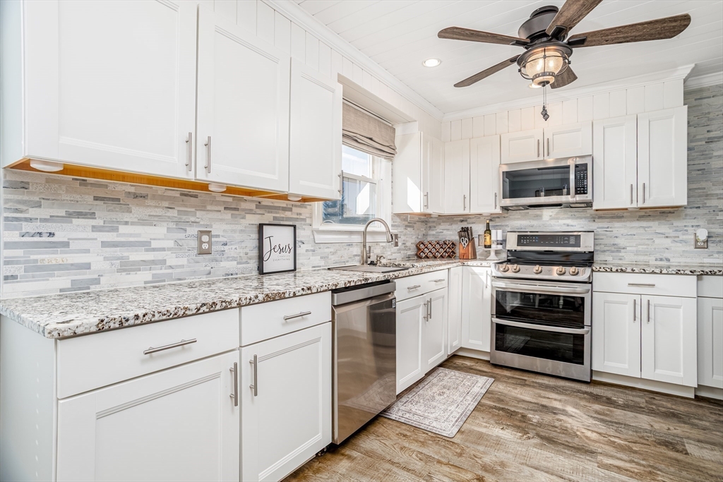Situated on a quiet dead-end street, this warm and welcoming Cape has been thoughtfully cared for and improved over the years. The flexible floor plan allows for a primary bedroom on either level, with four bedrooms total and one and a half baths. The bright kitchen features granite counters, recessed lighting, and stainless appliances, opening to a sunlit living room with a bay window. The walk-out lower level offers extra space for a home office, playroom, or cozy retreat. The current owner added central air, a water-softening system, and worked with the Mass Save Energy Program to increase efficiency with added insulation and other upgrades. Outside, enjoy a fenced yard with a deck, covered patio, hot tub, and cabana — the perfect place to relax or gather with friends. A happy home, filled with love and ready for its next chapter.