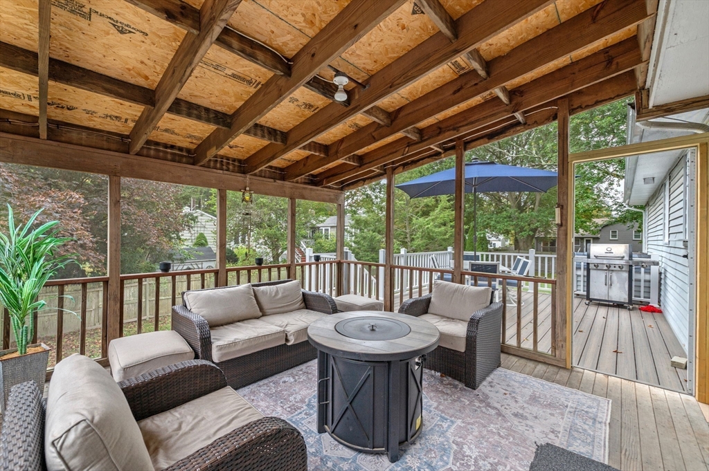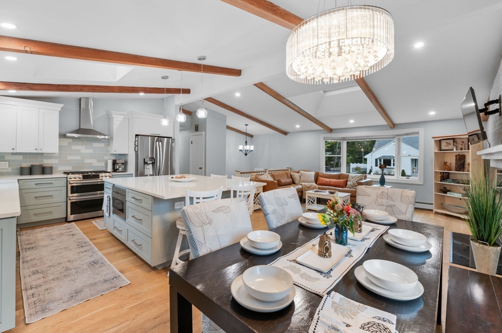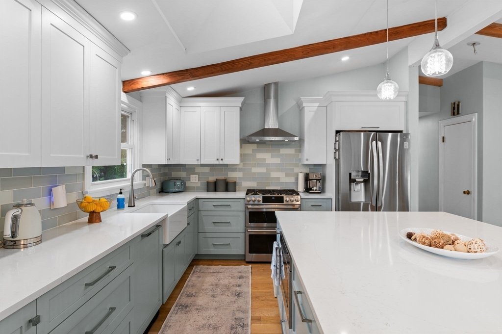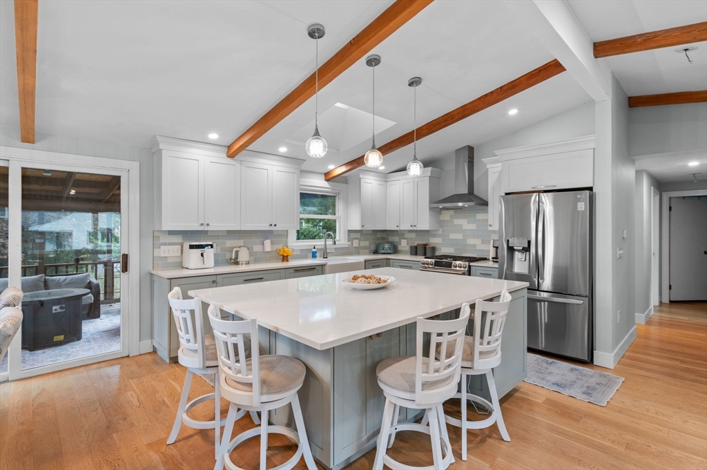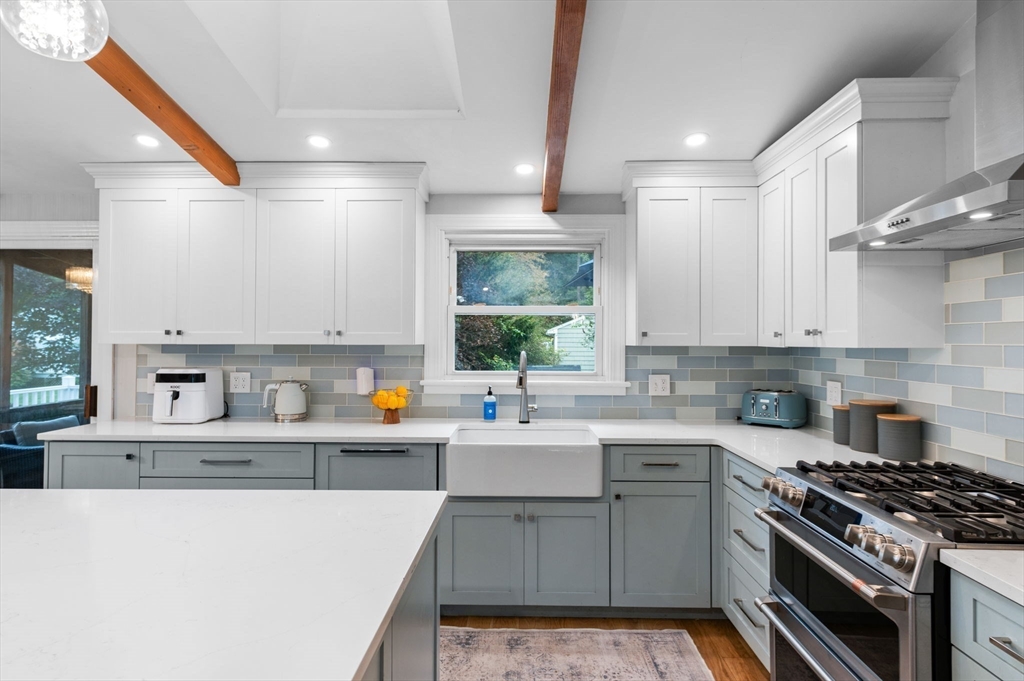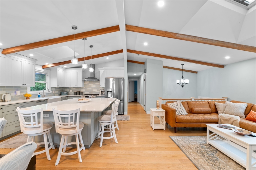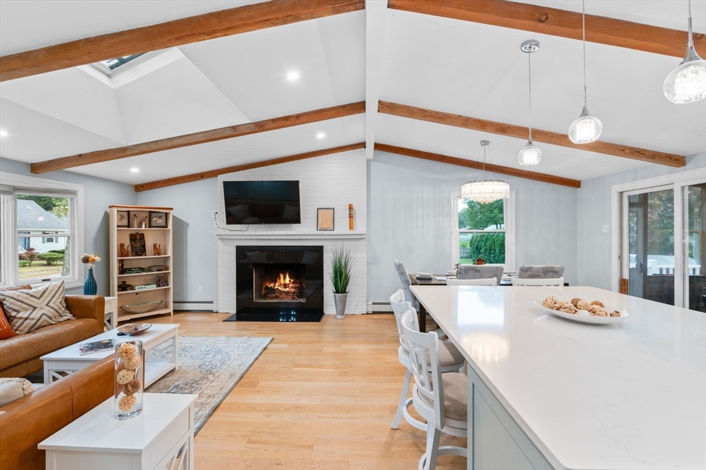 Welcome to the Cove! This 4-bedroom, 2-full-bath home offers the perfect blend of updates, space, and location. The beautifully renovated kitchen features custom made cabinetry, a large quartz center island, and newer appliances, all opening to a dining area and living room with a cozy fireplace. From here, step into the three-season porch that leads to a brand-new deck and patio—perfect for entertaining in the level backyard. The lower level has also been fully renovated with bathroom, living room, fireplace, bedroom and laundry room leads to one car garage. Great space for teen suite or family member. The location is truly unbeatable—just seconds to Cove School, Brackenbury Beach, and Lynch Park. Enjoy all that Beverly has to offer, recently voted one of the premier places to live, from the historic Cabot Theater to upscale restaurants and scenic Route 127. Showing start at open house SAT/SUN 2-4