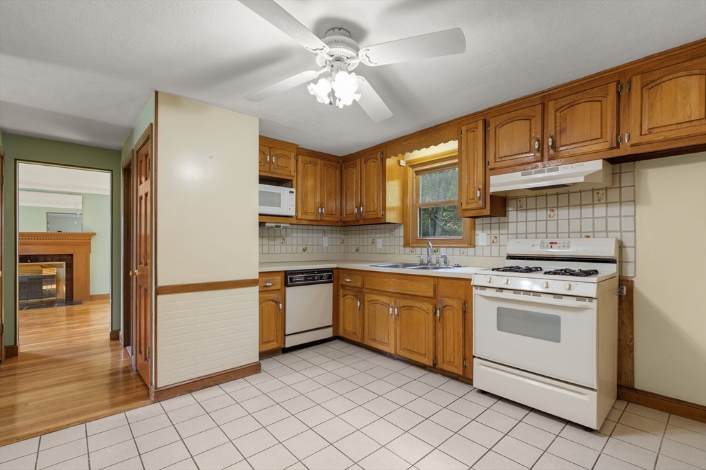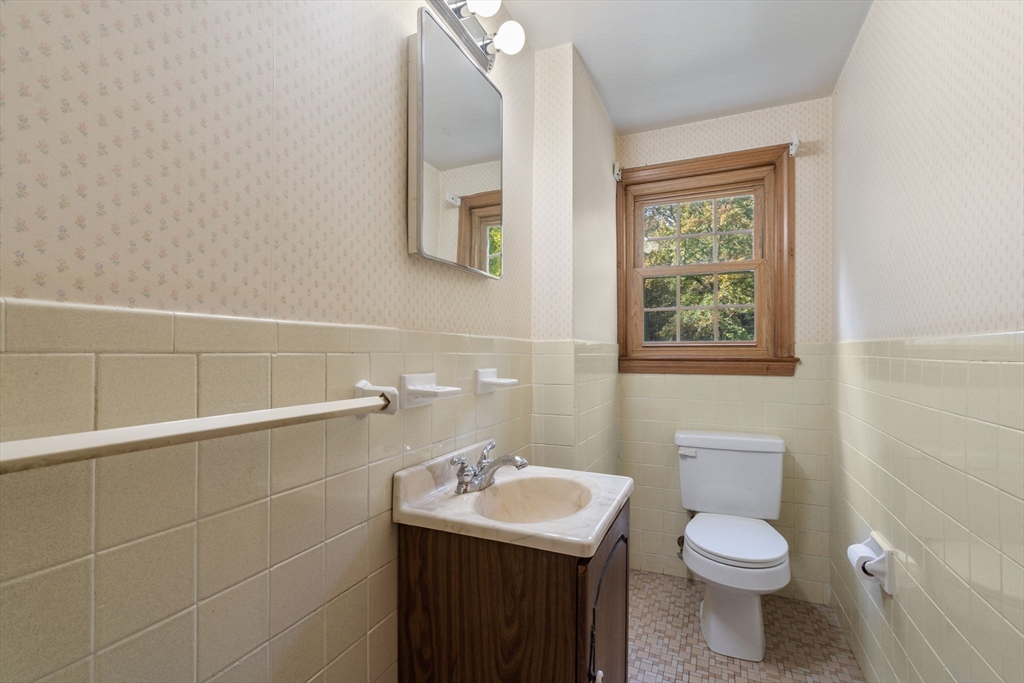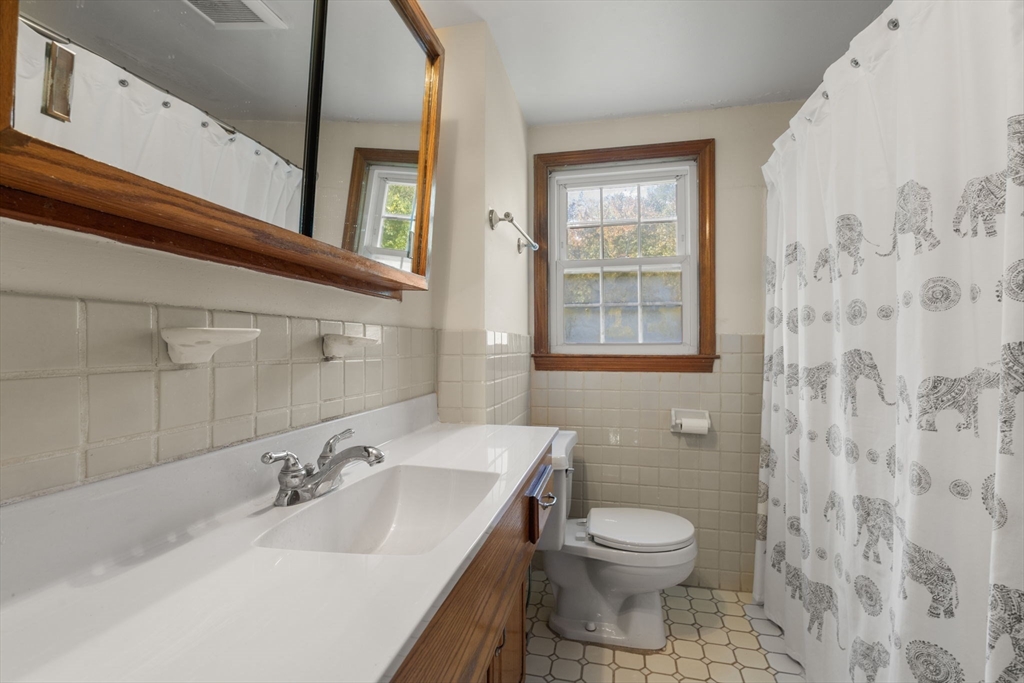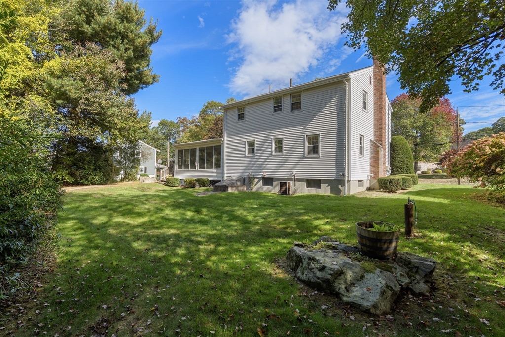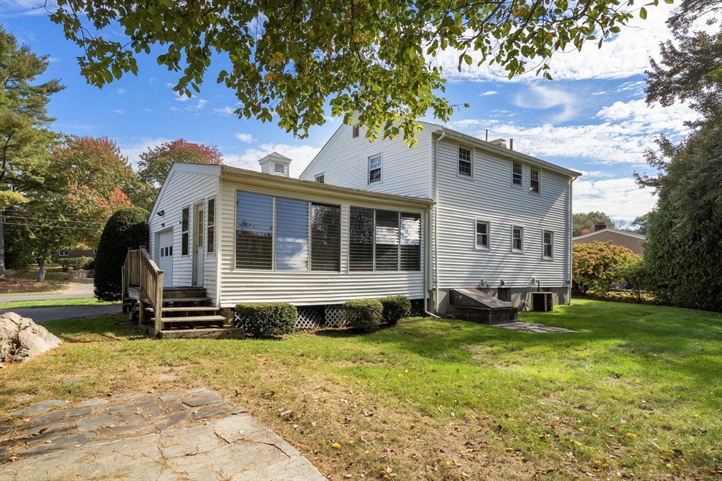 Offered for the first time in over 55 years, this classic 4-bedroom, 1.5-bath Colonial is full of potential. The home features hardwood floors throughout, a traditional layout, and recent updates including a newer roof and hot water heater. Situated in a desirable location on a nice, level lot, the property includes a one-car garage, an approximate 20' x 10' sunroom overlooking the serene backyard, and a bonus room in the basement—ideal for a home office, playroom, or additional living space. While the interior could benefit from updates, the home has been well maintained and provides a solid starting point. Conveniently located near the commuter rail, shopping, restaurants, and other area amenities. A great opportunity to personalize a well-kept home in a desirable location.