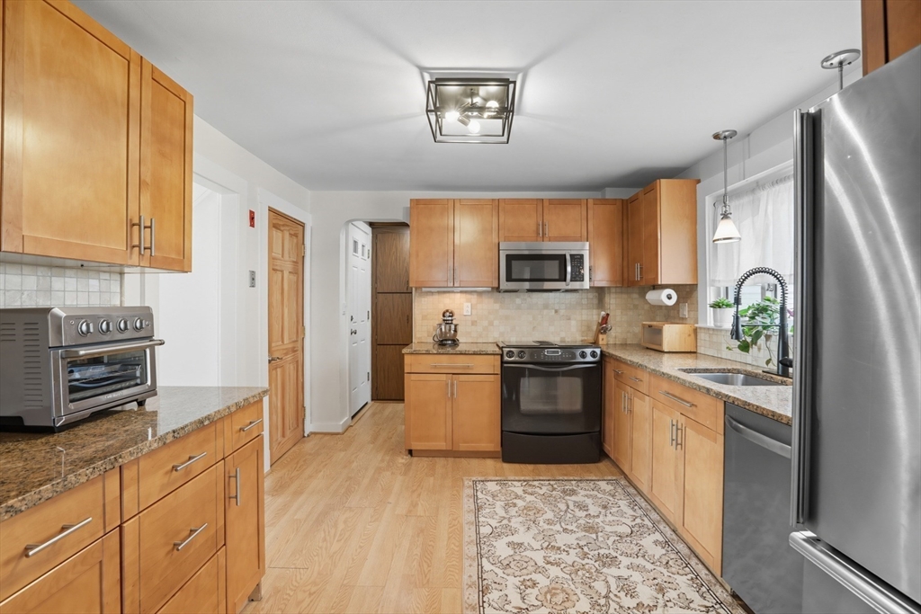 Don't miss this lovingly maintained 3 bedroom, 1.5 bath colonial in one of Lynn's nicest neighborhoods. Located in desirable Ward 1, this turn key property offers a wonderful opportunity to establish roots in a vibrant community. The main level offers a spacious living room complete with fireplace, formal dining room, modern kitchen with ample cabinet space and a convenient half bath. The upper level houses 3 generous bedrooms with tiled full bath and loads of natural light. The large basement offers an additional 500 sq feet of living space ready for your finishing touches. Additional features include extra-large heated garage, fenced back yard, off street parking, gleaming hardwood floors, freshly painted interior, gas heating system, energy efficient solar panels (electric bill averages 50.66/month) and a wood burning stove. Fantastic opportunity in a wonderful neighborhood. Showings begin at open house.