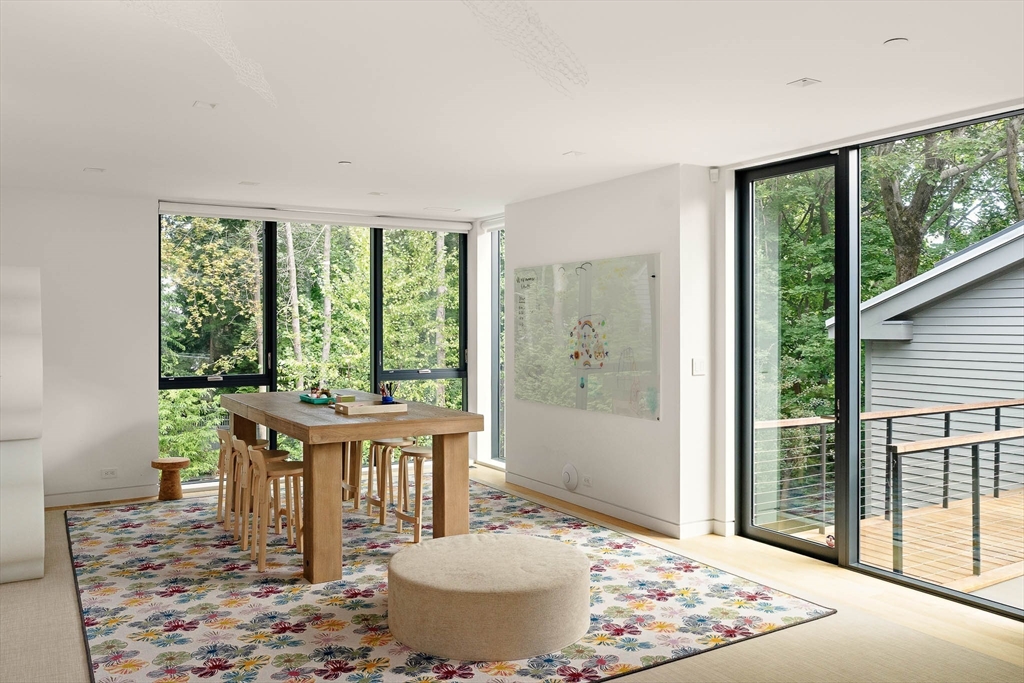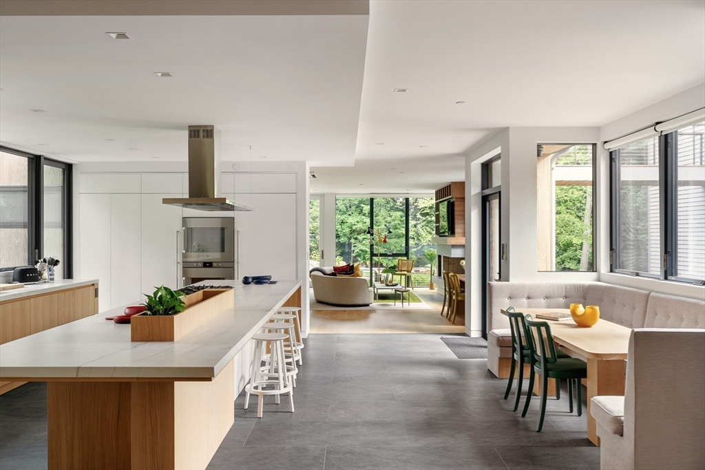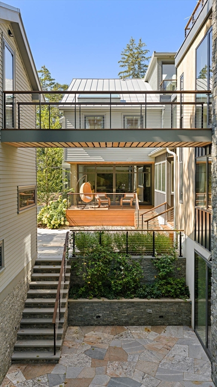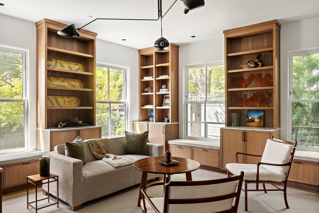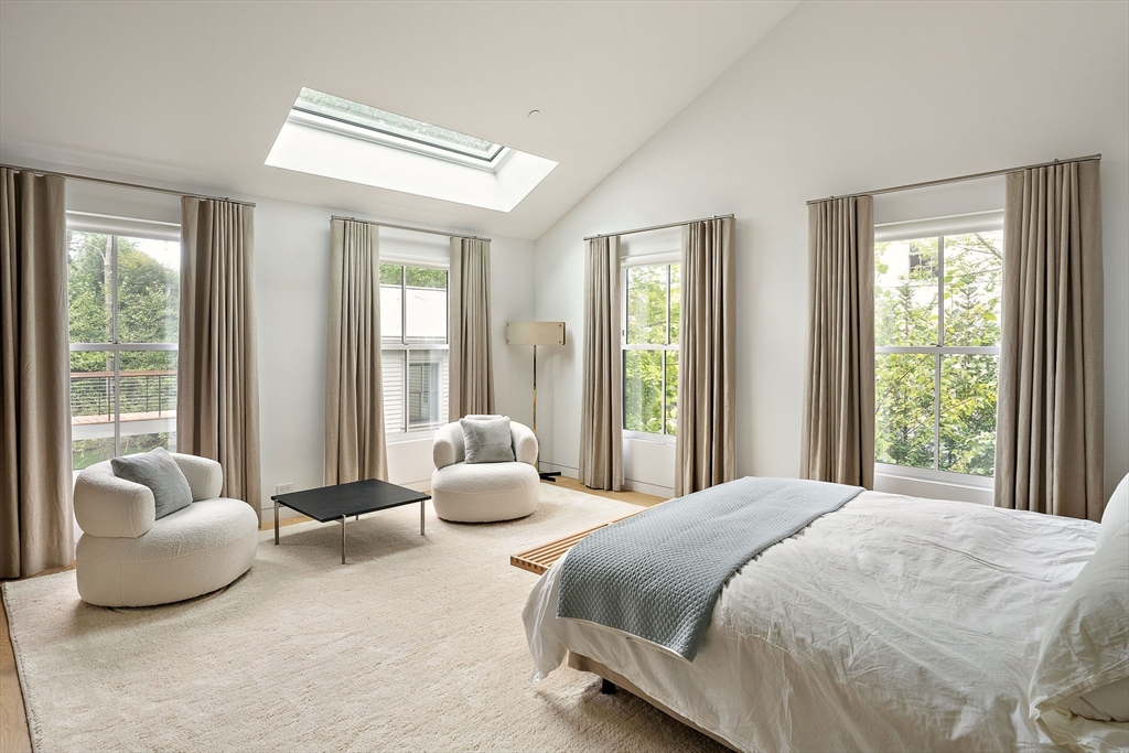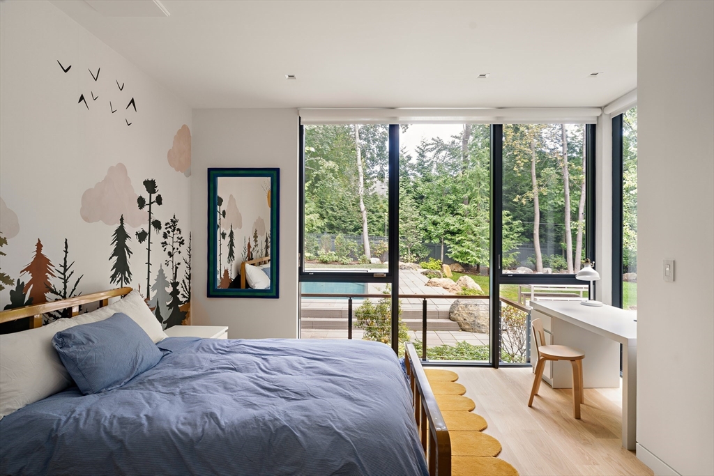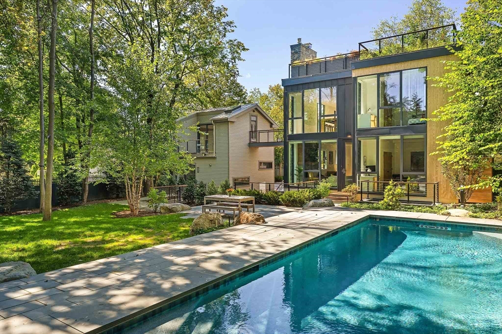 A gated modern residence of contemporary craftsmanship and calm precision, offering over 11,000 SF of living space on coveted Avon Hill. Light pours through vast panes of glass, dissolving the boundary between interior and landscape. Multiple terraces, a sunken patio with a two-sided fireplace, and a roof deck with its own fireplace create a seamless connection between house and garden. The private backyard, with its pool framed by mature trees and layered plantings, offers both openness and seclusion. Inside, warm natural materials and refined detailing define every room, from interconnected living spaces to quietly composed private rooms above. The primary suite is a sanctuary of light and serenity, with a vaulted ceiling, integrated storage, and a bath finished in stone and oak. The expansive lower level includes a guest or au pair suite, providing flexibility and privacy. Complete with two-car garage, advanced systems, and rare privacy just outside Harvard Square.