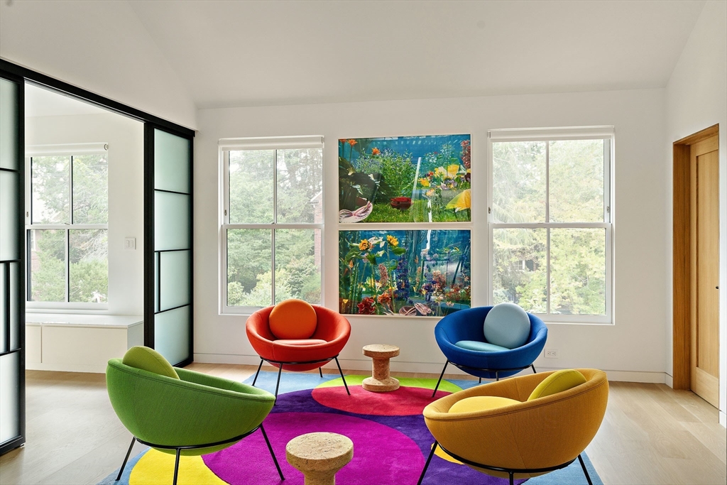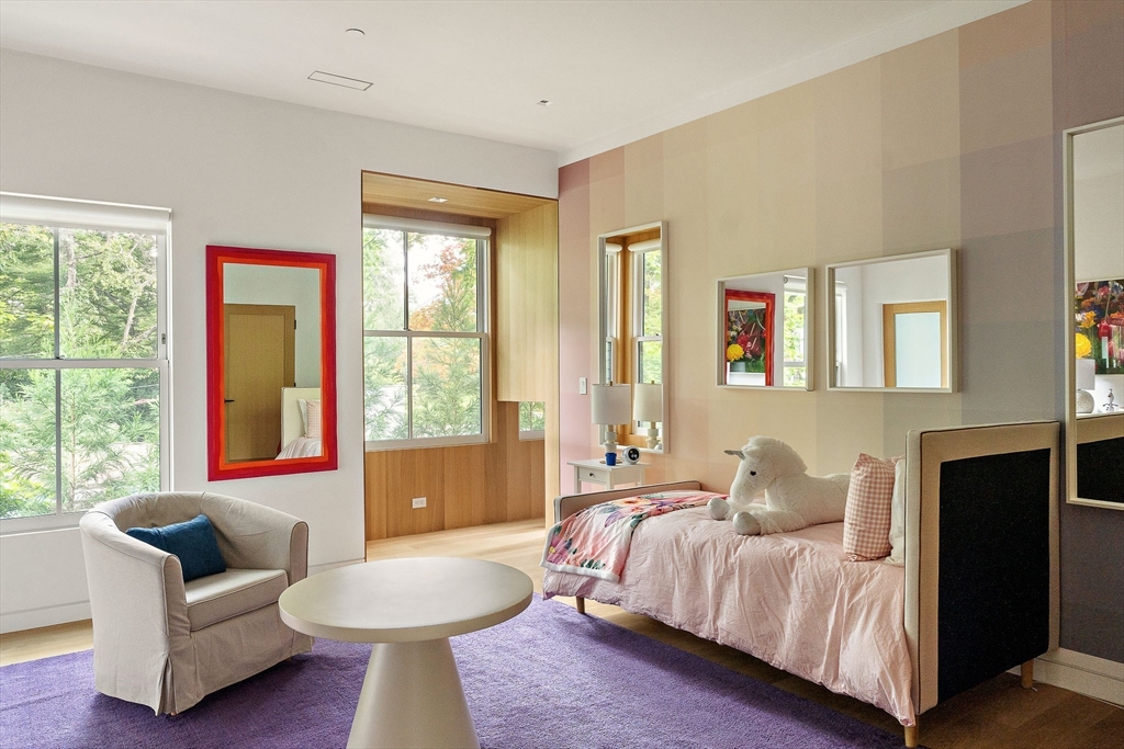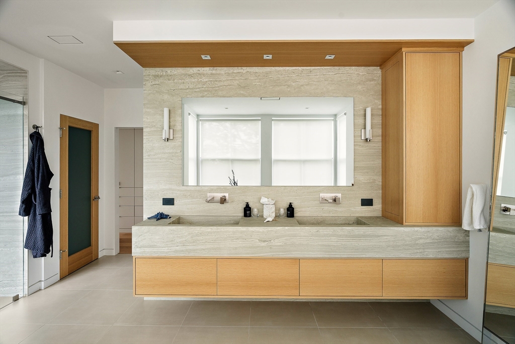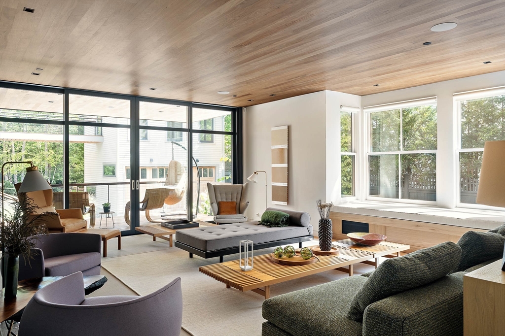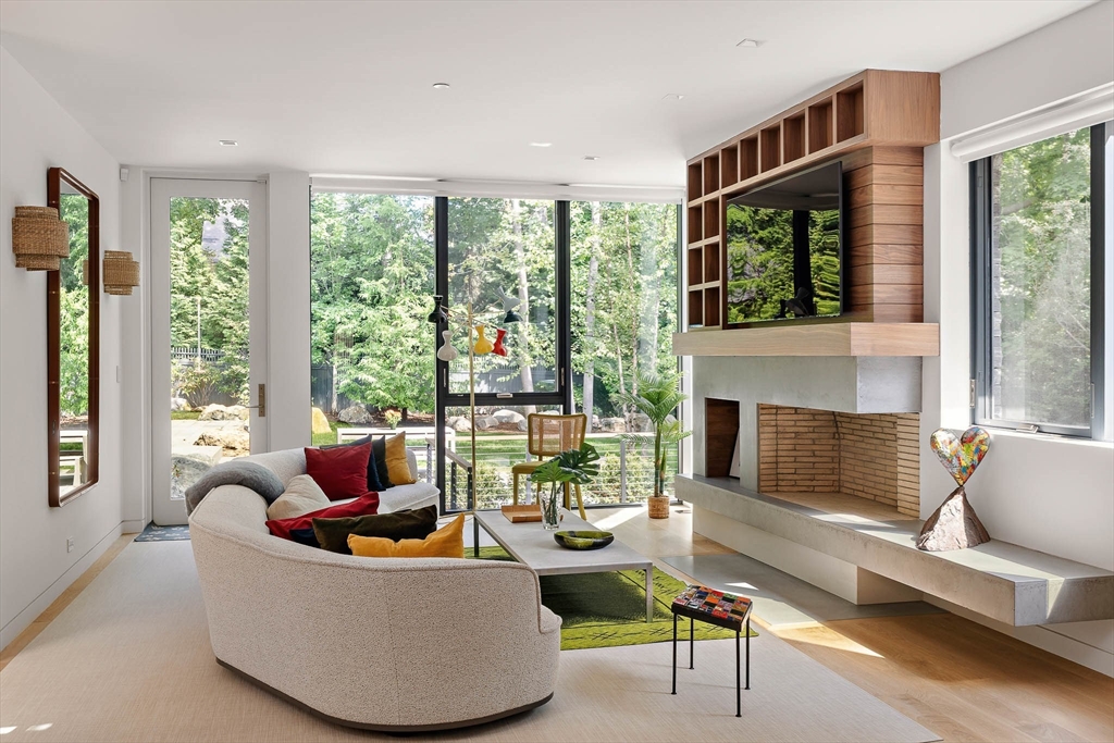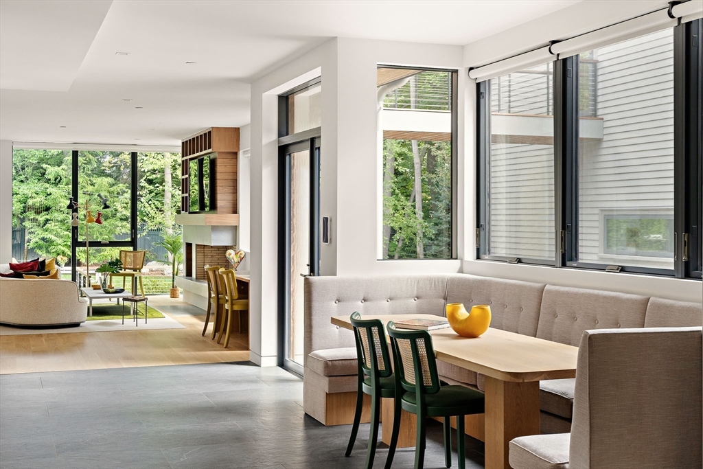 A gated modern residence of contemporary craftsmanship and calm precision, offering over 11,000 SF of living space on coveted Avon Hill. Light pours through vast panes of glass, dissolving the boundary between interior and landscape. Multiple terraces, a sunken patio with a two-sided fireplace, and a roof deck with its own fireplace create a seamless connection between house and garden. The private backyard, with its pool framed by mature trees and layered plantings, offers both openness and seclusion. Inside, warm natural materials and refined detailing define every room, from interconnected living spaces to quietly composed private rooms above. The primary suite is a sanctuary of light and serenity, with a vaulted ceiling, integrated storage, and a bath finished in stone and oak. The expansive lower level includes a guest or au pair suite, providing flexibility and privacy. Complete with two-car garage, advanced systems, and rare privacy just outside Harvard Square.