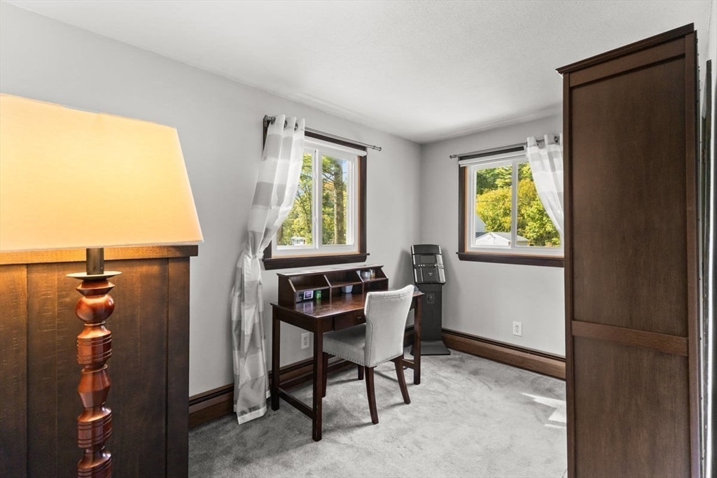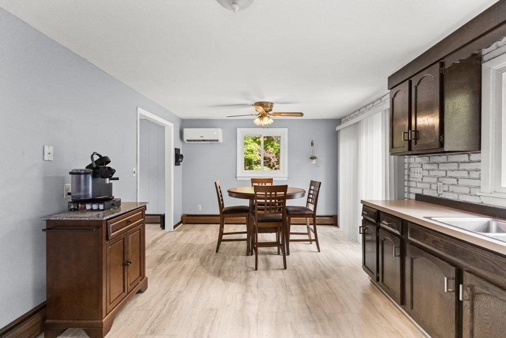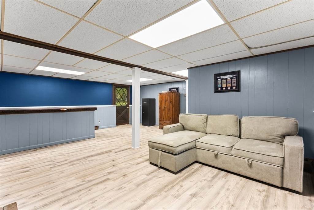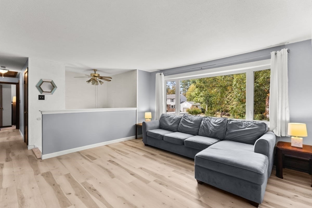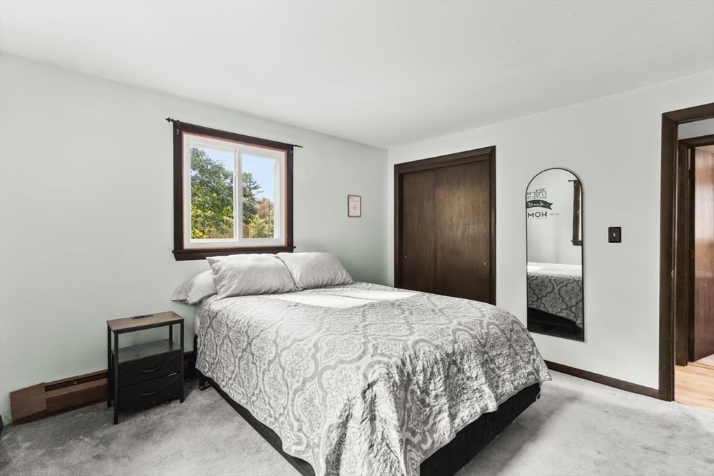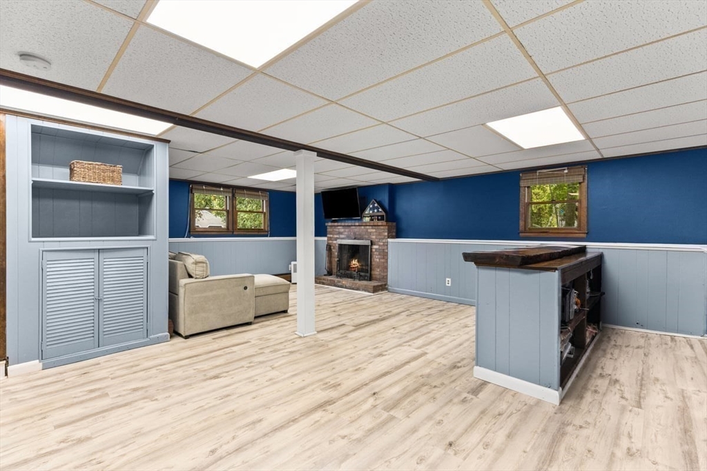 Fall in love with this charming raised ranch offering comfort and space in a quiet suburban neighborhood, perfect for those looking to move out of the city while staying close to the highway and new commuter rail. The bright living room with a large bay window fills the home with natural light. A spacious kitchen and dining area open to a deck overlooking the large backyard. The main level features three nicely sized bedrooms with great closet space and a full bath. The finished lower level adds versatility with a cozy fireplace, wet bar, full bath with laundry, and direct access to the garage and backyard—ideal for entertaining, a playroom, or even a guest suite. Updates include newer windows, flooring, hot water tank, and water filtration system. A propane-fueled generator adds peace of mind. This well-cared-for home blends comfort, functionality, and location—the perfect place to start your next chapter!