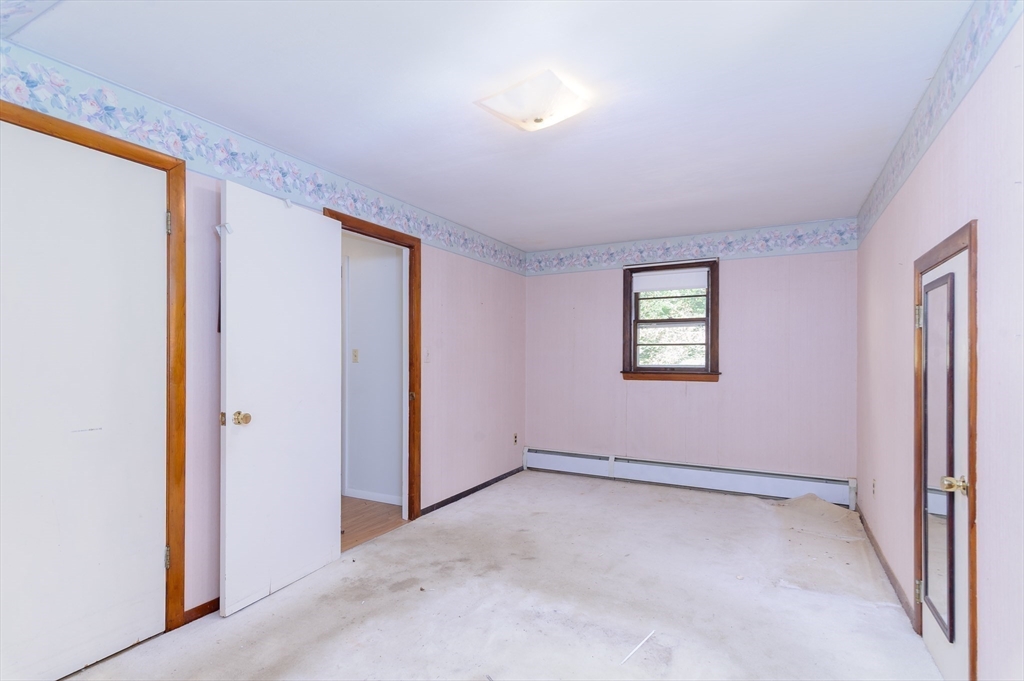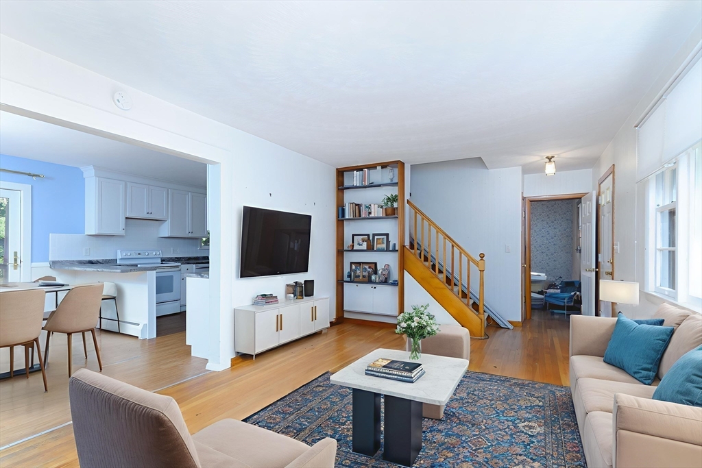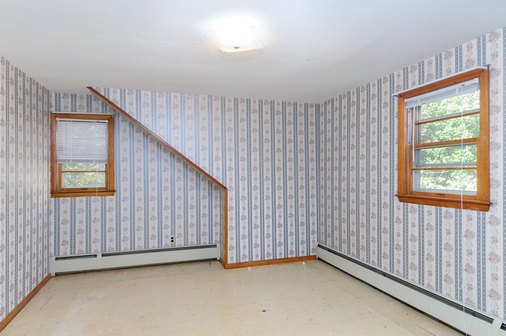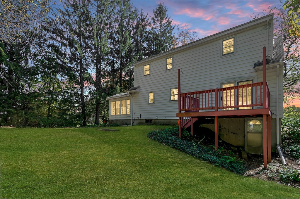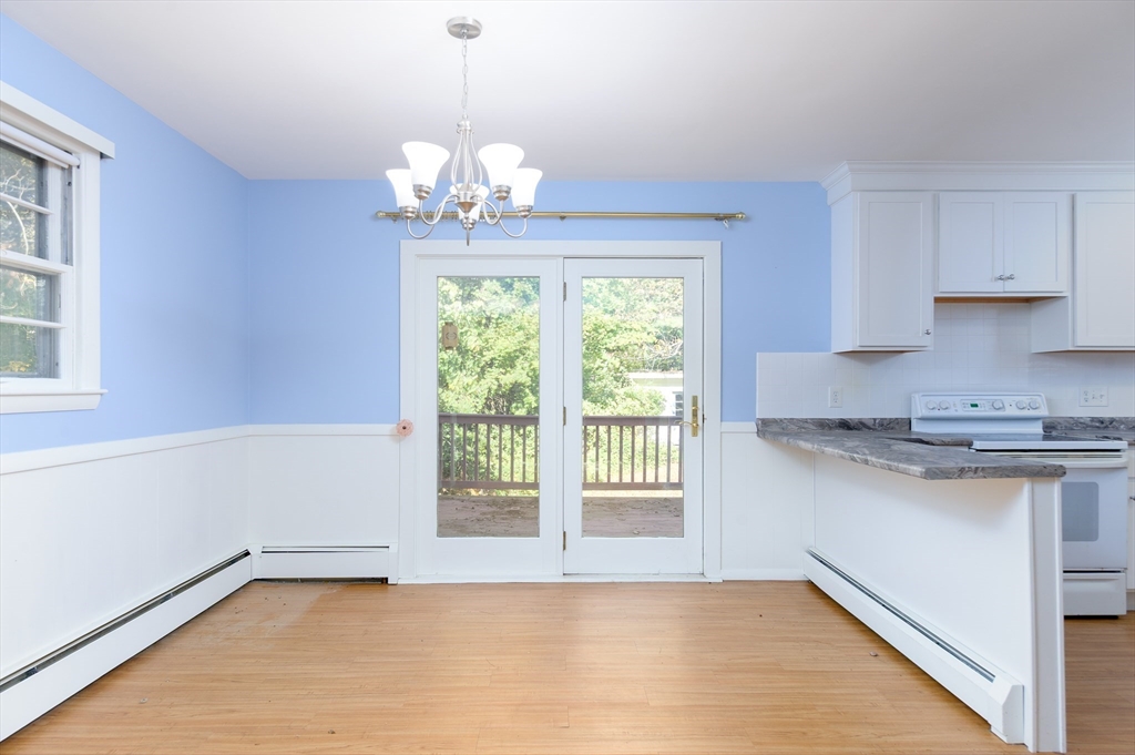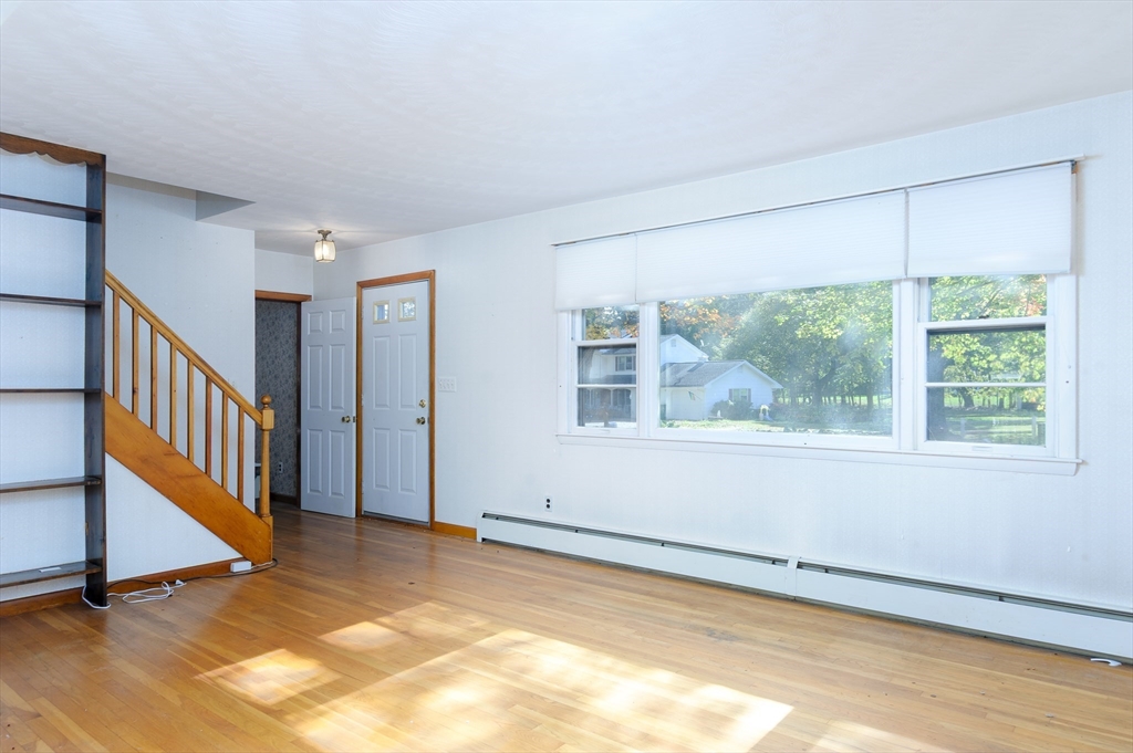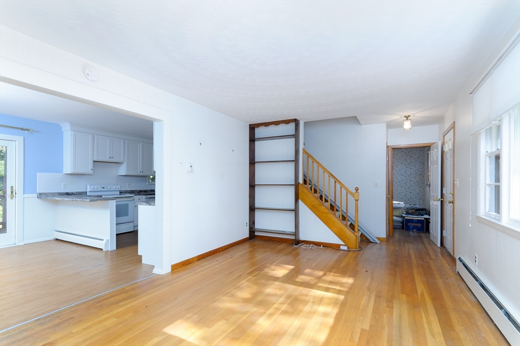 Well-cared-for 3-bedroom, 1.5-bath Cape featuring an additional first-floor room that can be used as a 4th bedroom or home office. Nestled on a private wooded lot just under a half-acre, this home offers a recently upgraded kitchen open to the dining area and a cozy living room with hardwood floors and a large picture window. A convenient half bath completes the first floor. Upstairs includes three bedrooms and a full bath. The walkout basement offers a bonus 19x12 finished room—perfect for a playroom, gym, or office. Enjoy the peaceful backyard from the deck off the dining area or the screened-in porch/mudroom. Plenty of off-street parking. A brand-new septic system will be installed prior to closing. With a little TLC, this home is full of potential! Commuter Open House, Friday 10/10 4pm-530pm!