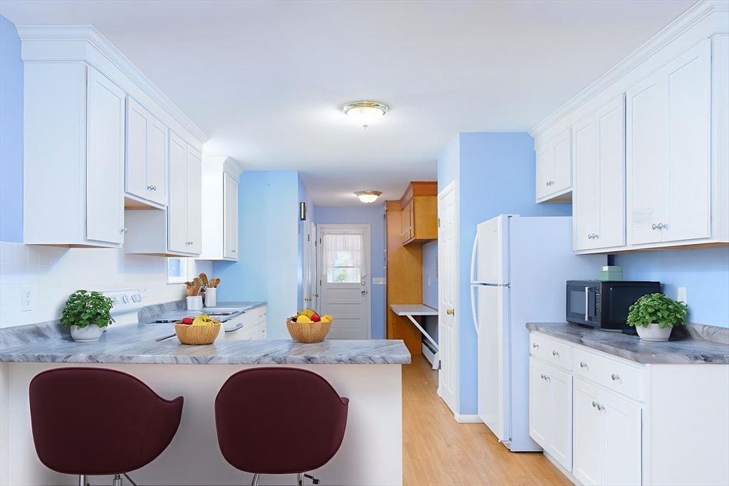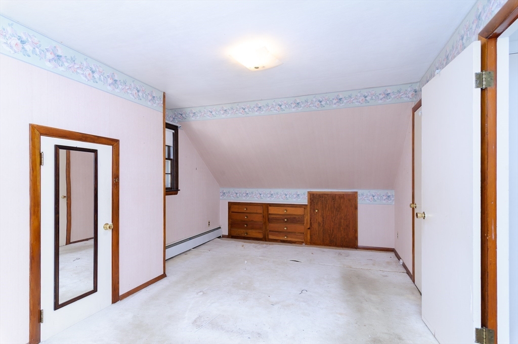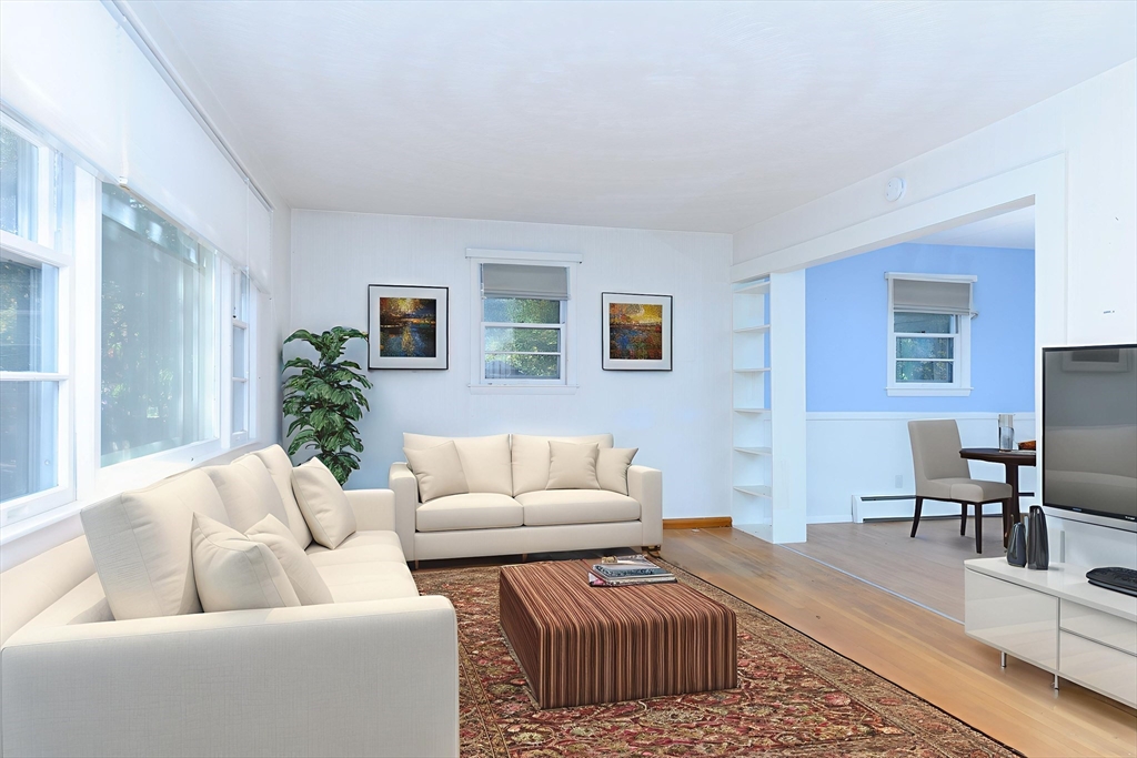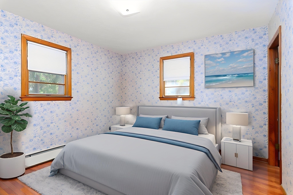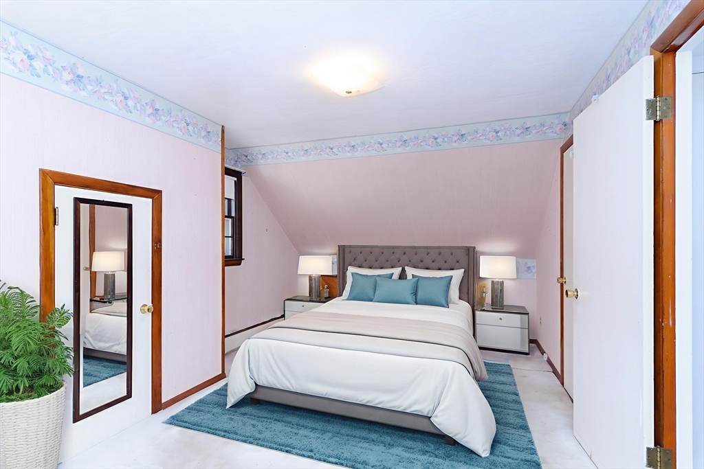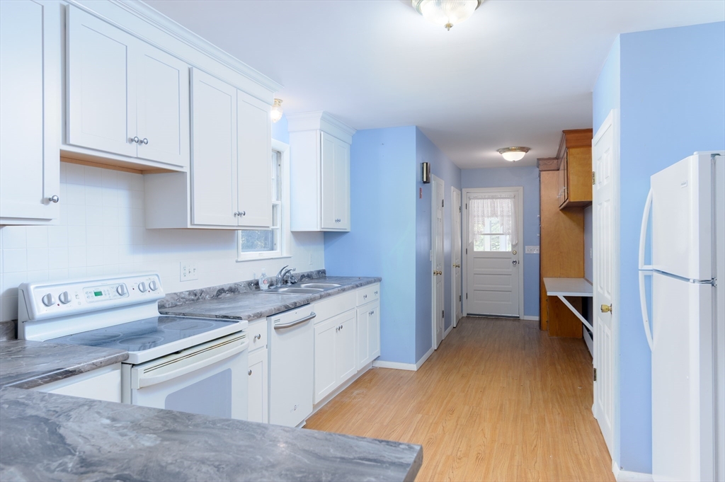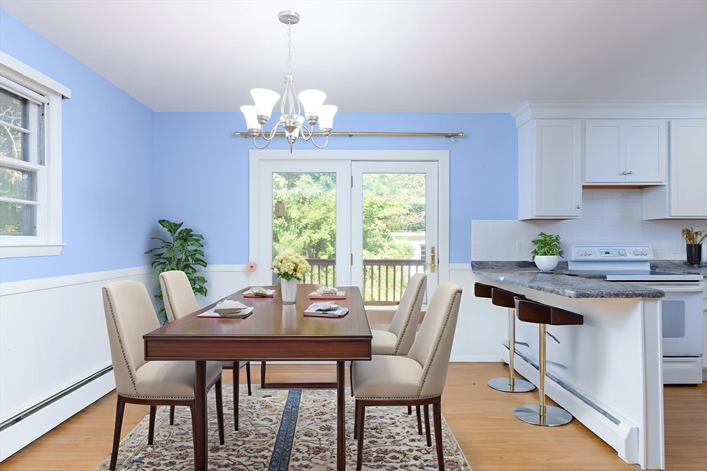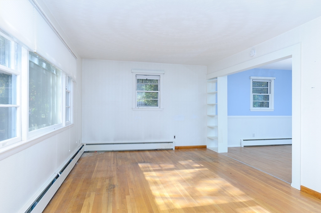 Well-cared-for 3-bedroom, 1.5-bath Cape featuring an additional first-floor room that can be used as a 4th bedroom or home office. Nestled on a private wooded lot just under a half-acre, this home offers a recently upgraded kitchen open to the dining area and a cozy living room with hardwood floors and a large picture window. A convenient half bath completes the first floor. Upstairs includes three bedrooms and a full bath. The walkout basement offers a bonus 19x12 finished room—perfect for a playroom, gym, or office. Enjoy the peaceful backyard from the deck off the dining area or the screened-in porch/mudroom. Plenty of off-street parking. A brand-new septic system will be installed prior to closing. With a little TLC, this home is full of potential! Commuter Open House, Friday 10/10 4pm-530pm!