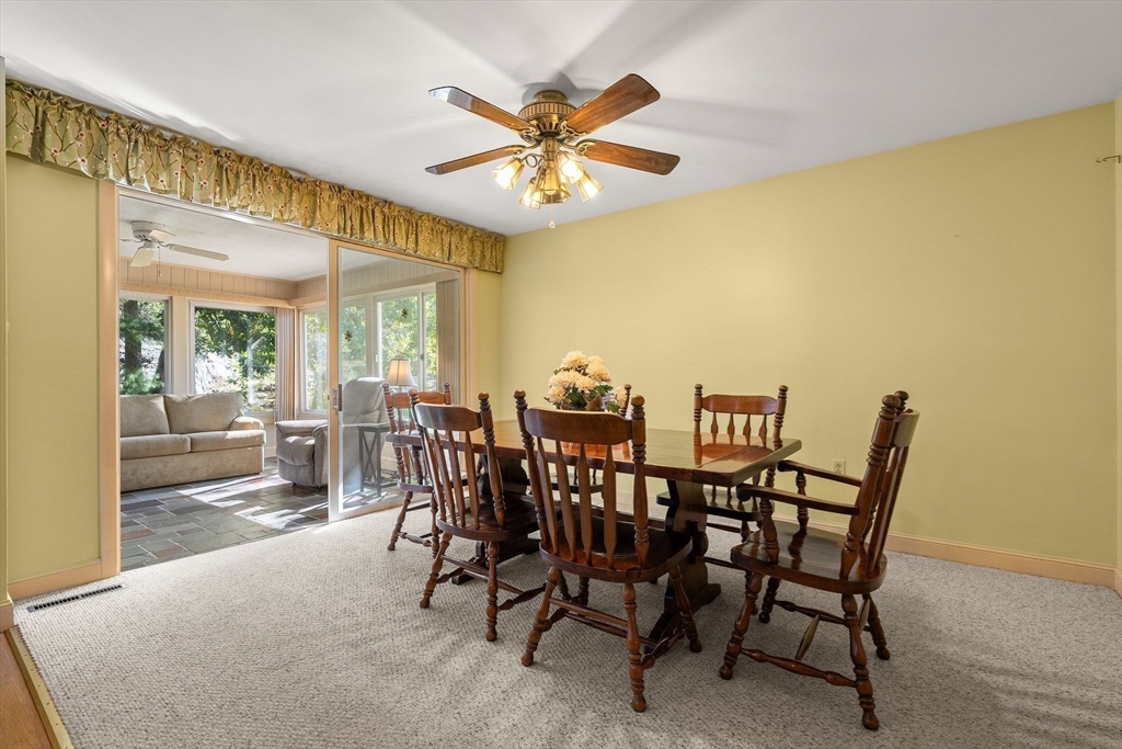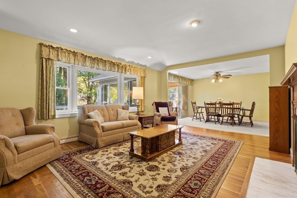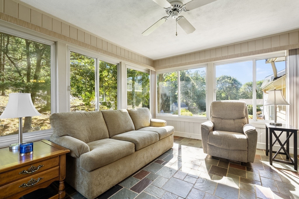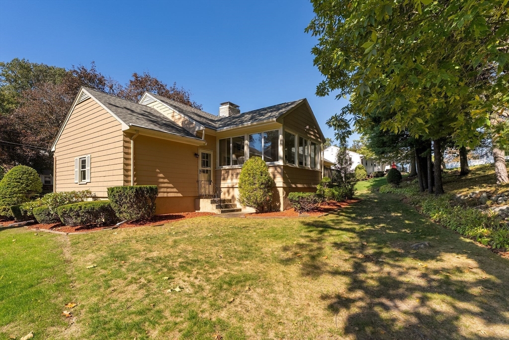 Welcome to 39 Walsh Ave, a beautifully maintained ranch in one of Stoneham’s most desirable neighborhoods. Located in the sought after Colonial Park School district and just a stone’s throw from the brand new high school, this home sits on a quiet, tree-lined street with no cut-through traffic. Perfectly positioned just minutes from the commuter rail and bus stop, it offers both convenience and tranquility. Inside, you’ll find gleaming hardwood floors, an open floor plan ideal for entertaining, and three spacious bedrooms. It has a newer roof, newer gutters with heating coils, and central air for year-round comfort. A gorgeous heated sunroom off the back provides the perfect place to relax and enjoy views of nature, with a deck just outside for summer gatherings. TONS of closets including a walk in Cedar.The backyard abuts conservation land, offering privacy and a peaceful setting. A huge basement provides endless potential, just waiting to be finished and customized to fit your needs
