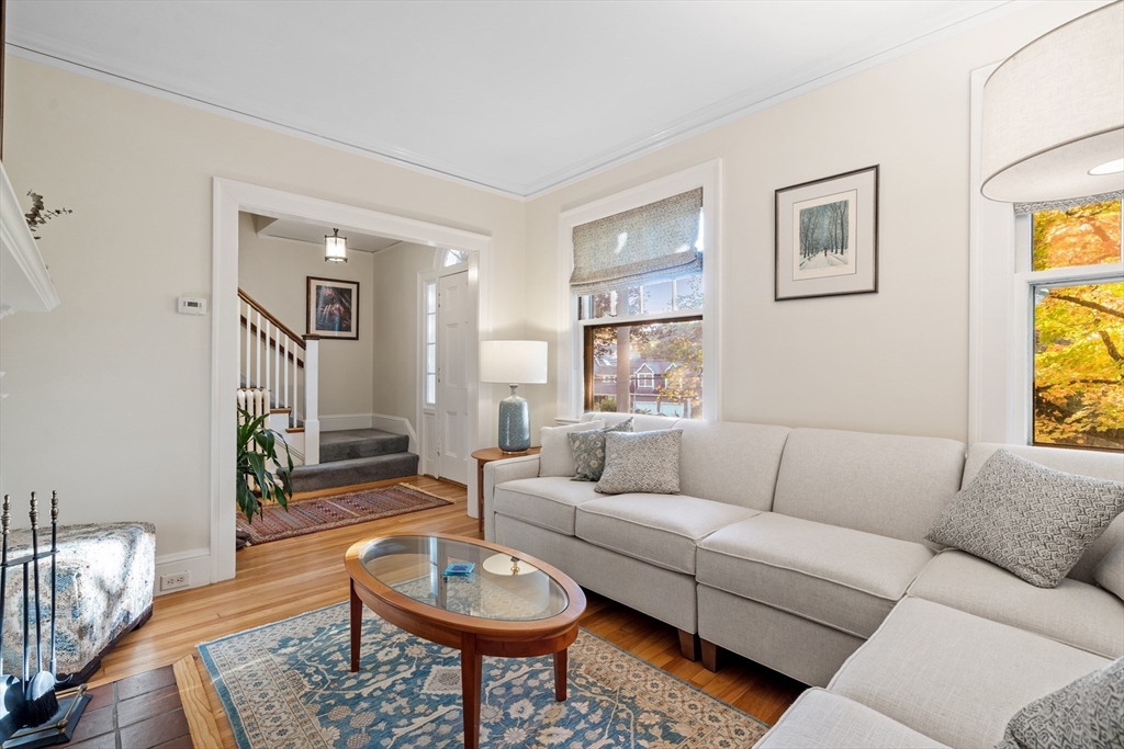 Conveniently situated near Kineens Park, Willards Woods, Diamond Middle School, and major commuter routes, this 1925 Dutch Colonial blends timeless character with modern updates. Period details abound—high ceilings, hardwood floors, a fireplaced living room with built-in bookcases, and an oversized dining room with china cabinet and window seats. The first floor also offers a fireplaced family room with a bow window, a sun-filled office/sunroom, and a mudroom for everyday convenience. Recent renovations have expanded the kitchen, adding pantry storage, an eating island, and a casual dining area with backyard views. Upstairs, the spacious primary suite includes a walk-in closet and double-sink bath. Two additional large bedrooms and an office with access to the third-floor bonus room provide flexible living options. Step outside and unwind on the beautiful backyard patio—the perfect setting for relaxing or entertaining.