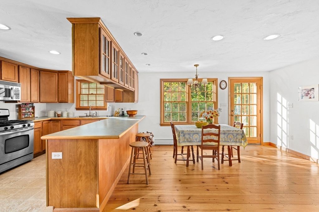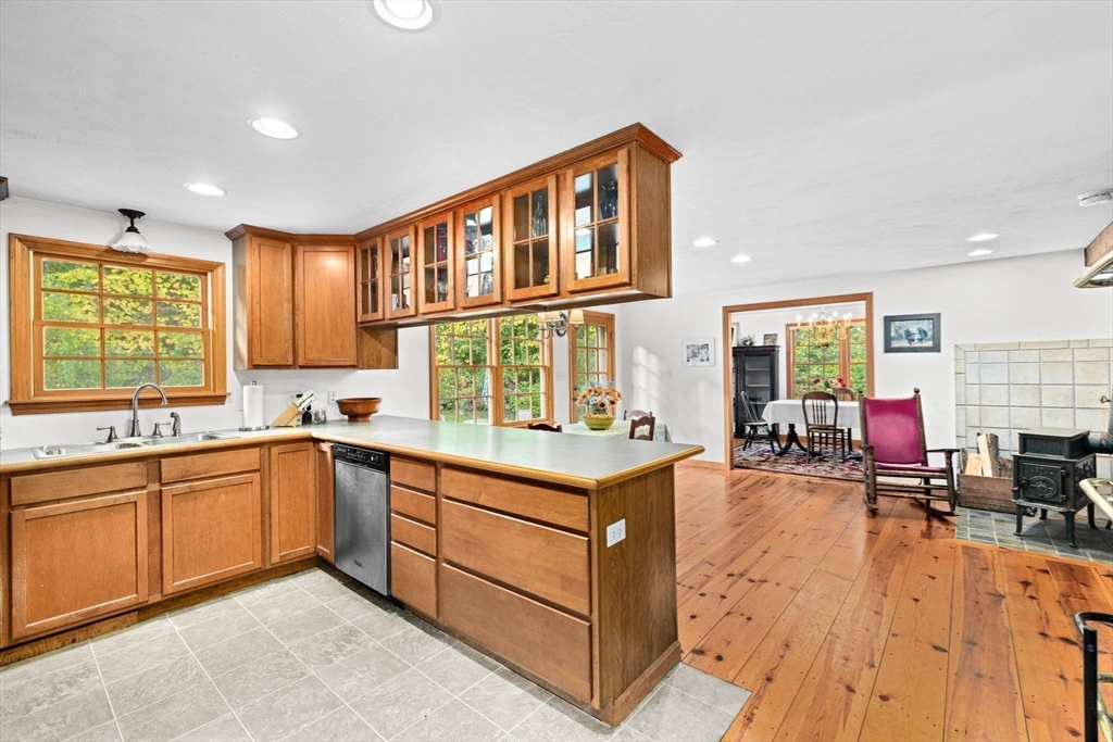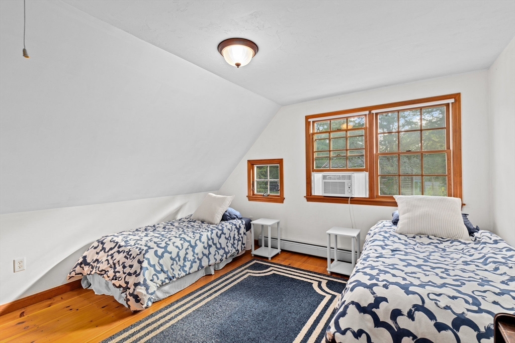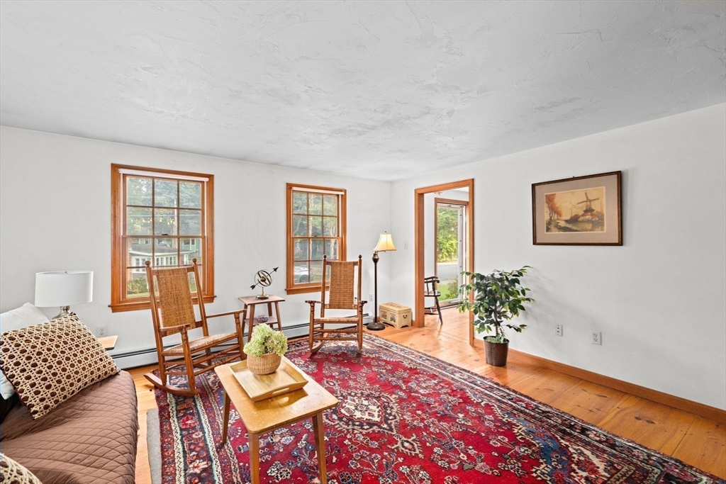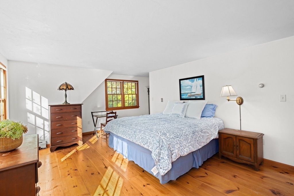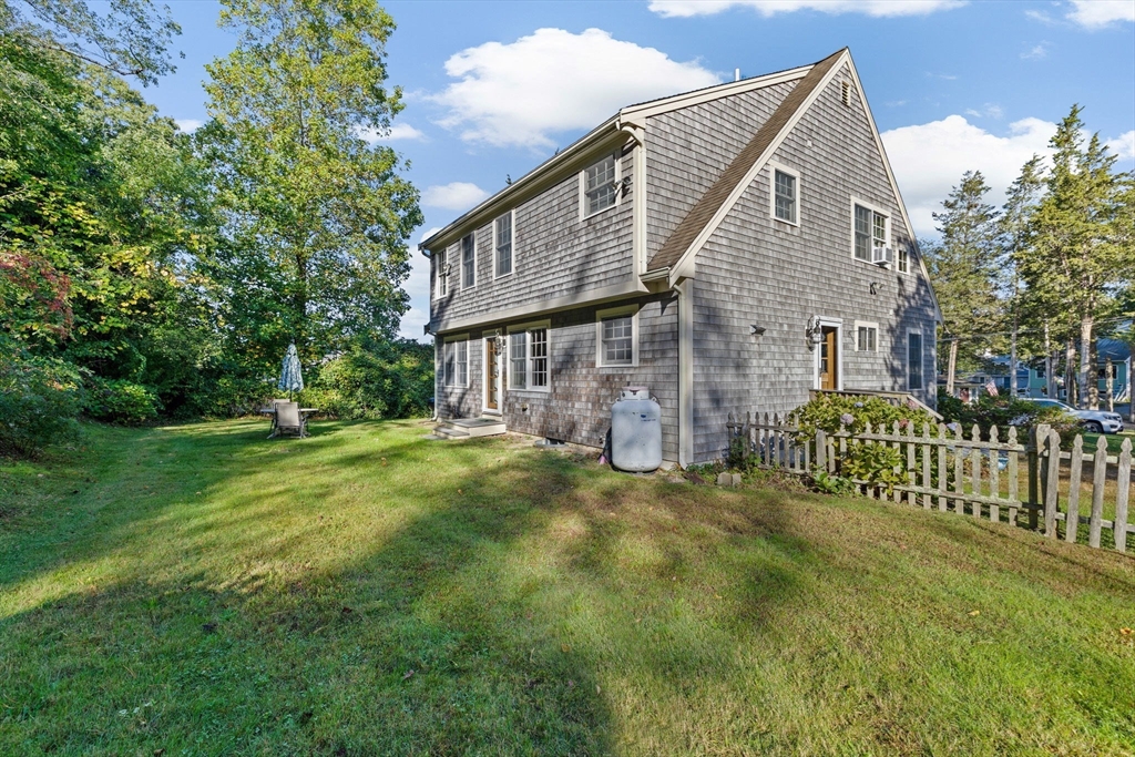 Sought after Rocky Nook location! Step inside this charming reproduction Cape and discover gleaming wide pine floors, and an open floor plan allowing for comfortable family living. The kitchen is the heart of the home with peninsula seating, wood burning stove, french door and wall of windows out to the backyard. The formal dining room flows seamlessly into the living room for easy entertaining. The main floor is filled with natural light, warm wood, a first floor bedroom or office, and full bath. Upstairs find three additional bedrooms, including the primary suite with an ensuite bath featuring a reclaimed claw foot soaking tub and walk in shower. A family bath completes the second level. Private backyard abuts Wildlands Trust nature preserve and walking trails. Walk to Jones River, neighborhood beach for kayaking or minutes to Gray's Beach for swimming, tennis and pickleball. Enjoy all that this oceanside community has to offer. Commuter's dream close to Route 3 and commuter rail.
