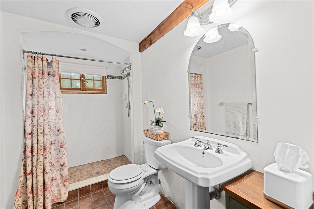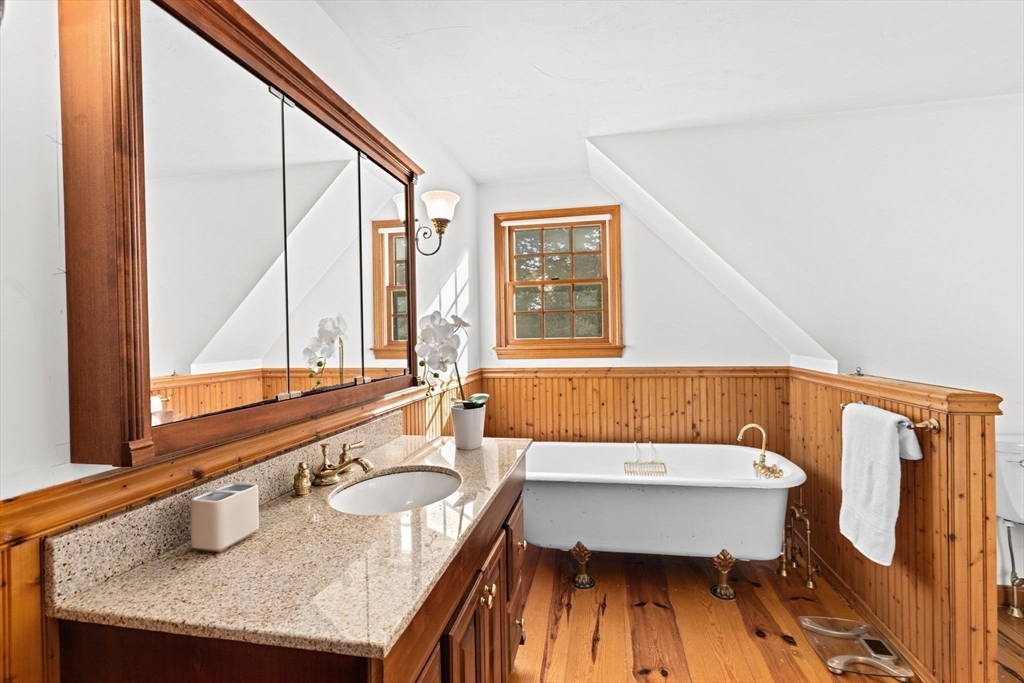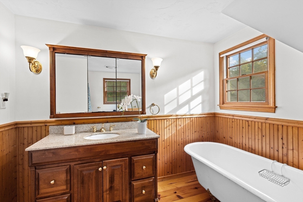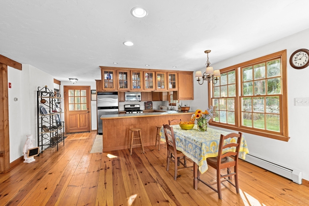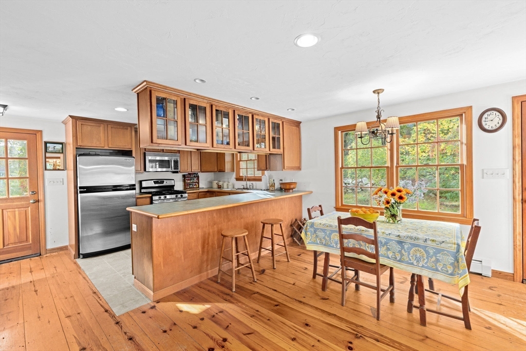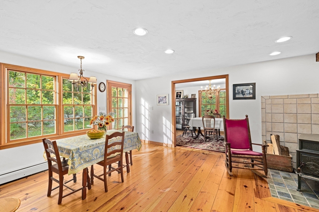 Sought after Rocky Nook location! Step inside this charming reproduction Cape and discover gleaming wide pine floors, and an open floor plan allowing for comfortable family living. The kitchen is the heart of the home with peninsula seating, wood burning stove, french door and wall of windows out to the backyard. The formal dining room flows seamlessly into the living room for easy entertaining. The main floor is filled with natural light, warm wood, a first floor bedroom or office, and full bath. Upstairs find three additional bedrooms, including the primary suite with an ensuite bath featuring a reclaimed claw foot soaking tub and walk in shower. A family bath completes the second level. Private backyard abuts Wildlands Trust nature preserve and walking trails. Walk to Jones River, neighborhood beach for kayaking or minutes to Gray's Beach for swimming, tennis and pickleball. Enjoy all that this oceanside community has to offer. Commuter's dream close to Route 3 and commuter rail.