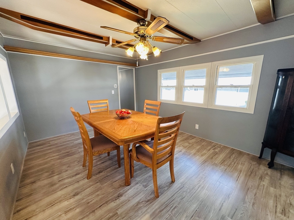 If you have been searching for the perfect place to retire, this is it! Welcome to the Springfield Mobile Home Park designated for resident who are 55 and older, located across from Five Mile Pond Park. You will be pleasantly surprised by the spacious interior, including a sun-filled living room, open dining room and kitchen with expansive counter tops and plenty of storage! Just down the hallway you will find the main bedroom, full bath, and a 2nd bedroom with 1/2 bath, making it ideal for guests and sleepovers with your grandchildren. And wait, there's more...just off the living room is a large laundry room w/double closets, and just beyond is a bonus room ready to be defined! All of this with central air, and there are 3 off-street parking spots and an oversized shed for additional storage.
