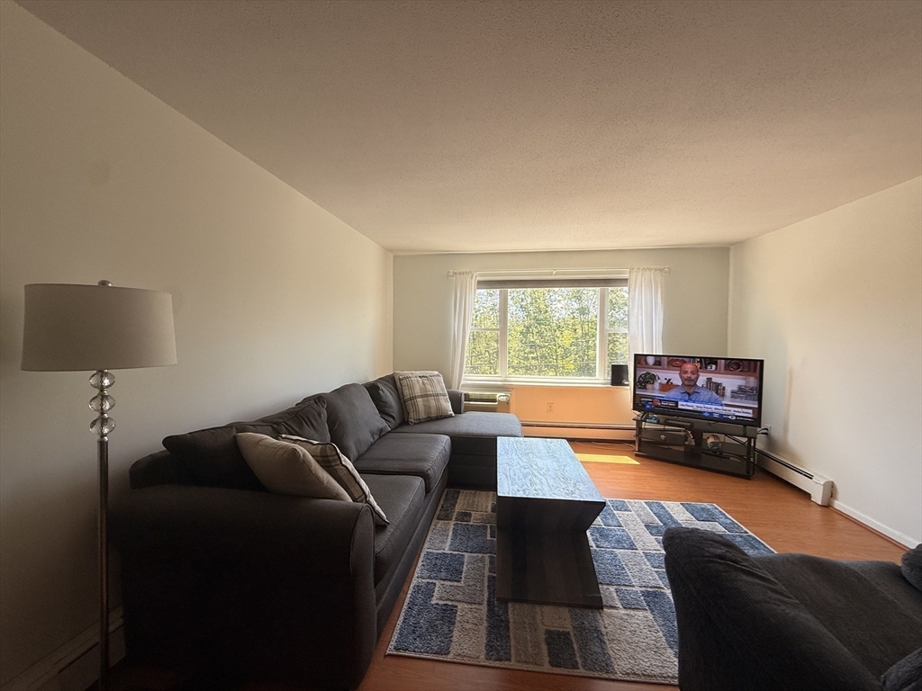 Beautifully maintained, top floor PH corner unit, featuring large, updated picture windows, open floor plan, laminated flooring, updated electric panel. Kitchen features lots of cabinet space, tile flooring. King-sized bedroom includes double closet, lots of windows allowing for lots of natural light. Bathroom w/Bath-Fitters on tub and a shower. Complex includes a swimming pool, basketball court, tennis court, and dog park. On-site Laundry assigned storage space (Bin# 8), deeded parking #112 (directly in front of building), plus plenty of guest parking. Easy access to Rt.93, Harold Parker State Forest, restaurants and shops along R t 28.