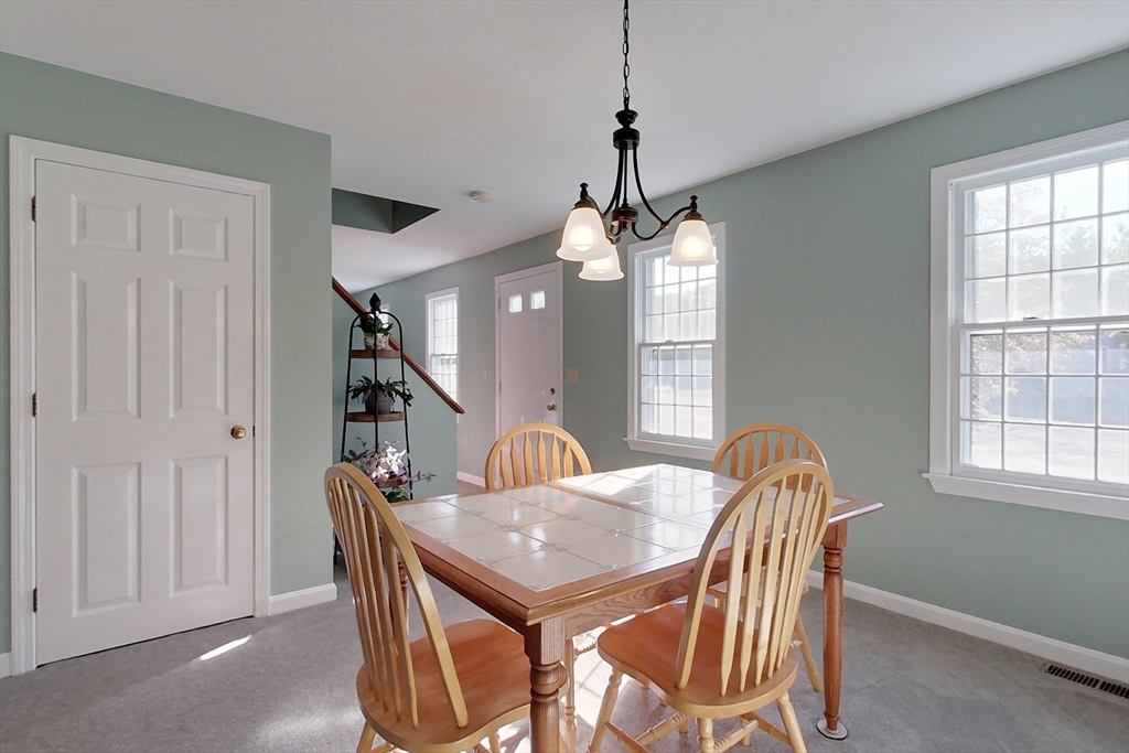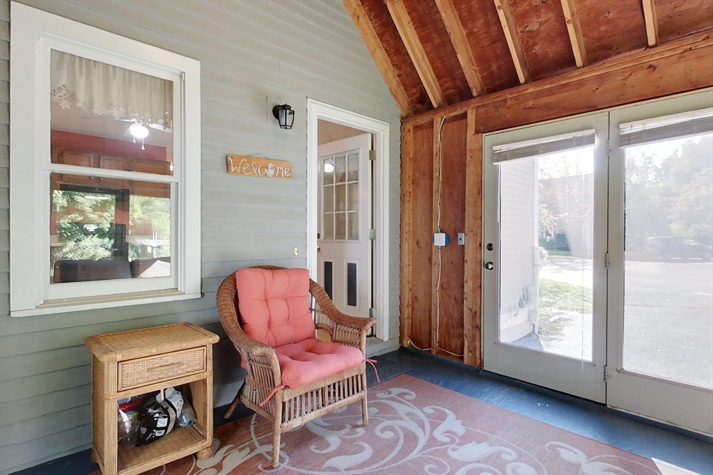 Welcome to this move-in ready detached Cape-style condo, tucked away in a quiet 5-home cul-de-sac yet just minutes from everything in town. Well-maintained & clean as a whistle, this home offers classic charm w/ great potential & comes w/ a low HOA fee. Enter inside to find new wall-to-wall carpets (2025) flowing from the entry into the formal dining room & living room. Off the living room is a desirable 1st floor bedroom (currently an office) along w/ a 1/2 bath & laundry hookups. The kitchen features warm, natural-toned cabinetry & opens into an enclosed porch w/ 3 full glass doors, filling the space w/ sunlight & providing a perfect spot to enjoy the outdoors while staying cozy inside. Upstairs, 2 spacious front-to-back bedrooms share a full bath. The basement offers 2 unfinished rooms, ideal for storage, a workshop, or future expansion. A tidy, move-in ready home w/ potential to make it your own—don’t miss out! Showings begin at an Open House on Sat 10/11 from 11am-1pm.