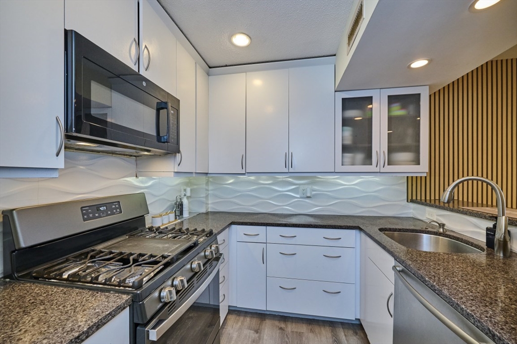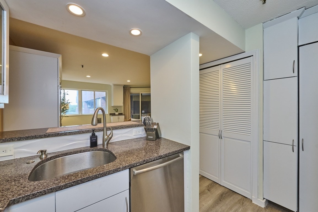 Stylish 2-Bed, 2-Bath upper-level condominium on the Brookline line in Allston. This move-in ready home features brand-new flooring, an updated kitchen with quartz countertops and stainless steel appliances, fresh paint, Nest thermostat, in-unit laundry, deeded garage parking (space #69), and extra storage (space #45). Enjoy an open living area with a private balcony and views of the Boston skyline. The spacious primary suite offers large double closets and direct balcony access. A versatile second bedroom works equally well as a guest room or home office with a pleasant window view. Recent upgrades include new windows, heat pump, A/C, and washer/dryer. Residents enjoy a host of amenities, including an indoor pool, fitness center, sun deck, racquetball court, and elevators. Situated in a prime location, you'll enjoy quick access to the Green Line, Coolidge Corner, Longwood Medical Area, downtown Boston, and more—plus vibrant shops, supermarkets, and restaurants are all just steps away