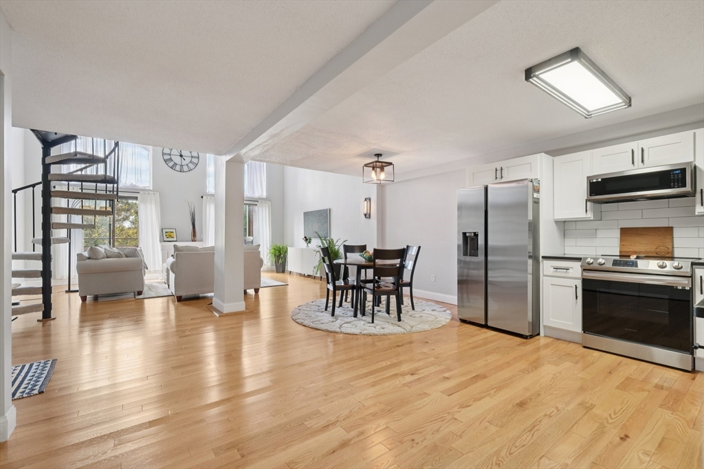 Welcome to River Bend... This complex features; elevators, a salt water in-ground swimming pool, tennis courts, indoor racquetball court, function room, fitness room/gym, laundry in unit & in complex, and a picturesque sitting area alongside the Taunton River! This unit has the most amazing cathedral ceiling in the open living room with large, picturesque sliders to covered balcony making it a space you will just love. Beautiful new kitchen opens into the living room to make for a great entertaining space! First floor has a 3/4 bath with wide shower. Gleaming hardwood floors make cleaning a breeze in the living room, halls and bedrooms. Master bedroom has a full en-suite! There is also another great bedroom on the 2nd floor overlooking the main living area. Central ac will feel good once the summer rolls back around! This complex is close to Routes 140, 24, 495 and 44. Nearby are great restaurants and shopping! Call the list agent today to see how you could call this amazing unit home!