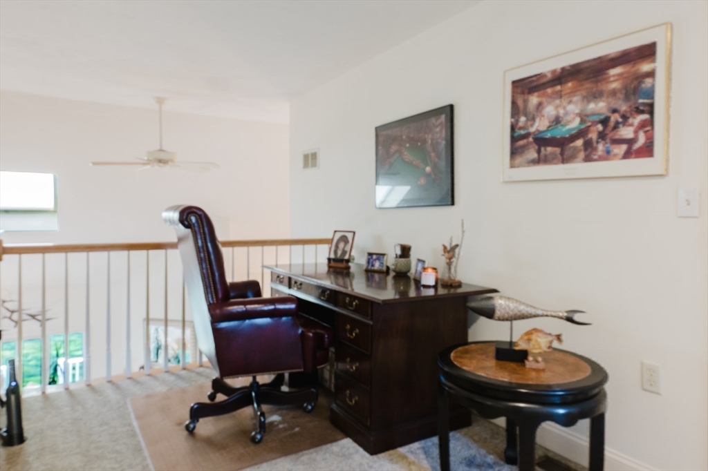 Welcome to 22 Stratford Ridge in well maintained desirable Stratford Ponds Condo complex in Mashpee. This end unit is located in the last phase of SP, Offers first floor living at its finest. Pretty tiled foyer with powder room, opens to LR with cathedral ceilings, gas fireplace and private deck. Ther is a large new designer kitchen with a cozy sitting are and breakfast nook. The open formal DR has sliders to another very private screened in porch all overlooking the woodlands. There is a first floor laundry, plus a spacious first floor primary with huge walk in closet and full bath with SS. The 2nd floor offers a bedroom, private full bath, office area, loft and family room, perfect for extra guests. Walk in storage and attic access. Central A/C, gas heat, an attached direct entry one car garage. Mostly hardwood floored on 1st floor, and carpet in primary BR and 2nd floor. A beautiful unit, updated utilities, newer W/D, fab. new kitchen and appliances. Tennis, pool, great walking area