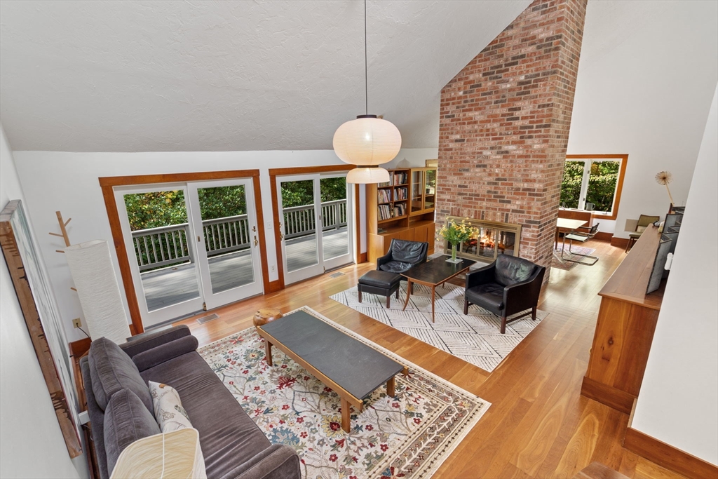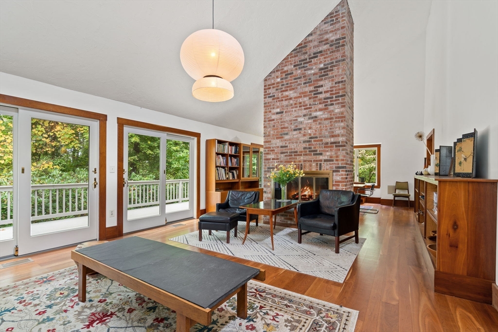 URBAN SOPHISTICATION MEETS WOODLAND TRANQUILITY IN THIS SPECTACULAR 4 LEVEL HOME! This unique residence provides the feel of a single-family home with the convenience of condo living! Lincoln Ridge offers TRAIL ACCESS, A TENNIS COURT & DOCK ACCESS ON FARRAR POND! The main floor has a LARGE KITCHEN with natural wood tones! The living & dining room share a DOUBLE SIDED FIREPLACE, with VAULTED CEILINGS & large slider doors to the PRIVATE DECK! The 2nd level hosts 2 bedrooms, including a primary suite with a walk-in closet! The lower level feels like a 1st floor, with full size windows that let in natural light & OFFER BEAUTIFUL PRIVATE VIEWS! A 3rd room on this level is ideal for guests & features BUILT-IN BOOKCASES. A generous family room on this level has a glass door providing access to a 2nd patio! Yet another lower level has a LARGE OFFICE showcasing additional built-in bookcases! ALL THIS & A ONE CAR GARAGE! PERFECTLY NESTLED IN A TRANQUIL WOODED SETTING WITH FANTASTIC AMENITIES!