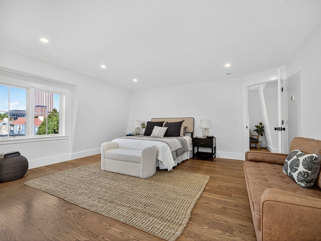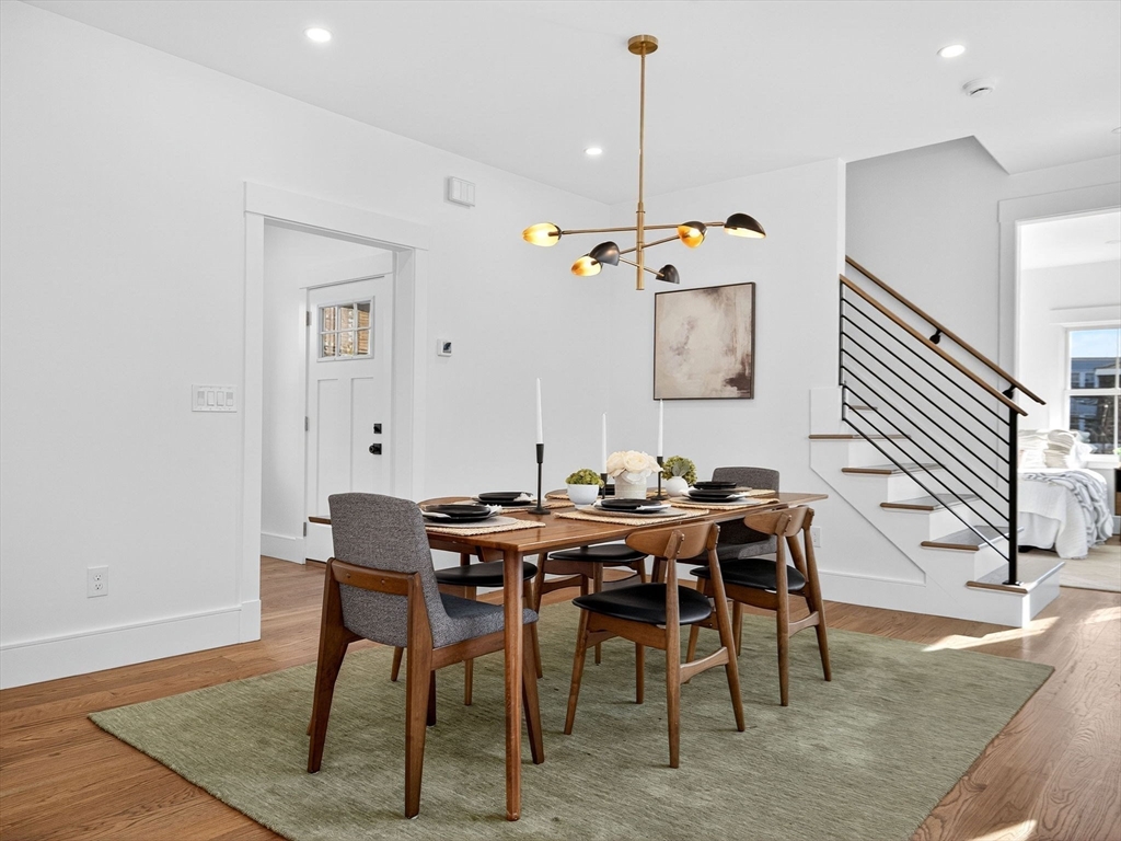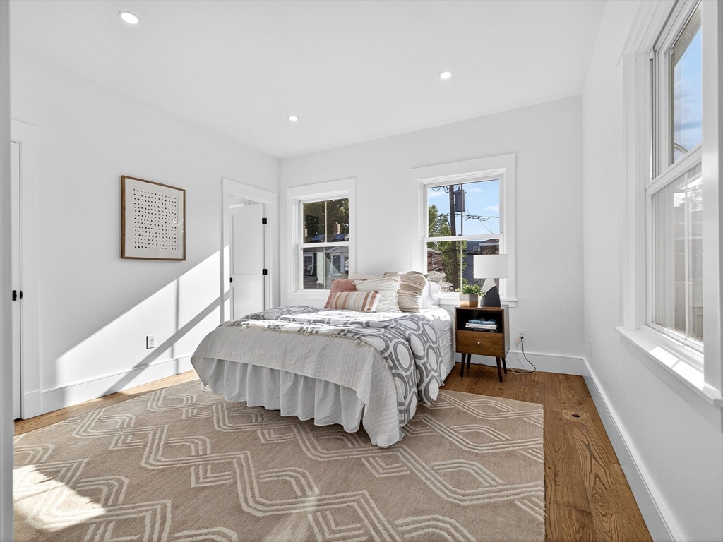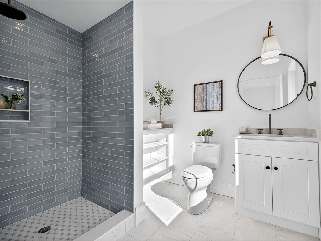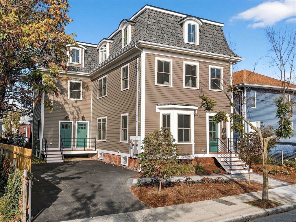 Designed with elegance and sophistication, this top floor Philadelphia-Styled condo offers 4 beds, 3.5 baths and 1 off-street parking spot! The main level boasts an expansive floor plan and has plenty of windows for copious amounts of natural light throughout the day. The fully equipped kitchen has electric cooking, stainless steel appliances, & shaker cabinetry complemented with gold hardware. A bedroom with an en ensuite complete the main level. 3 bedrooms are on the second level. The owner suite has a massive walk-in closet and a beautiful en-suite with showcasing an oversized shower. Other noteworthy features include laundry on the second level, a finished storage area in the basement, private yard and shared patio. Conveniently located between Union and Inman Squares with a variety of local shops, unique eateries/bars and close to the Union Greenline T-Stop.
