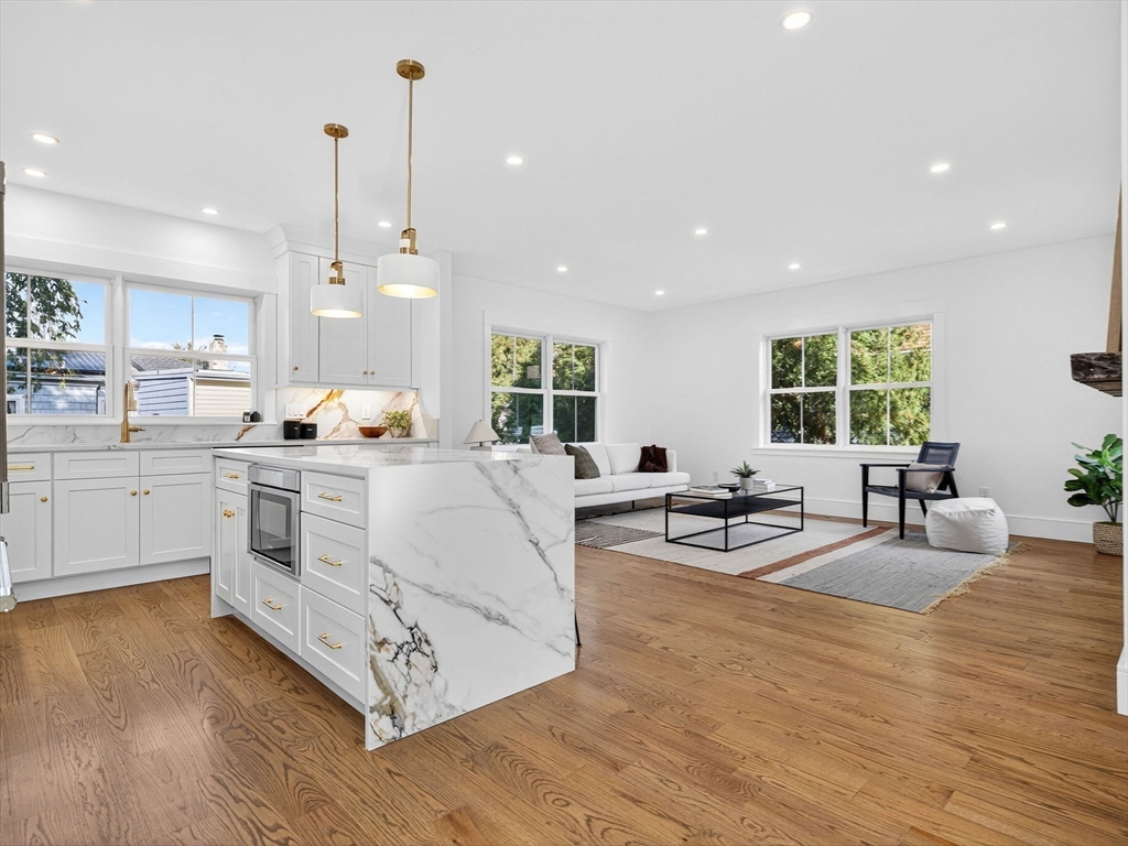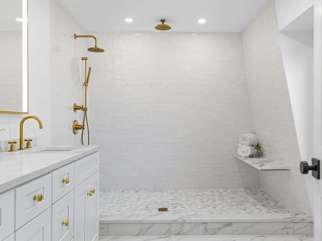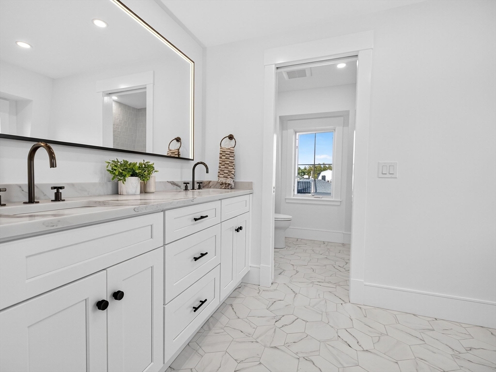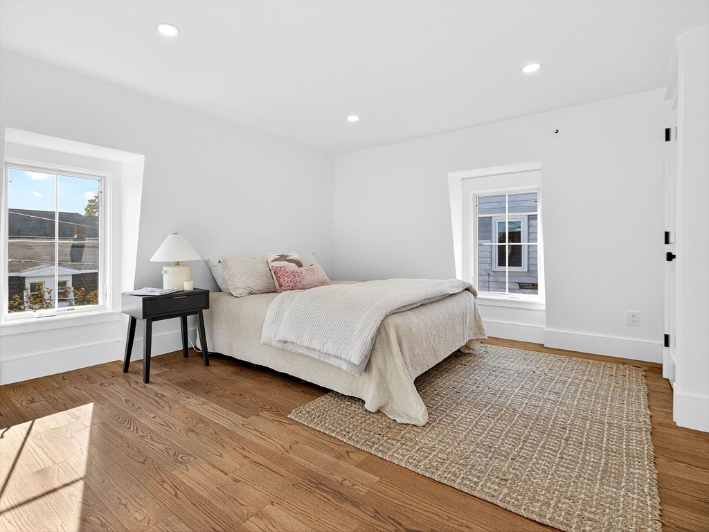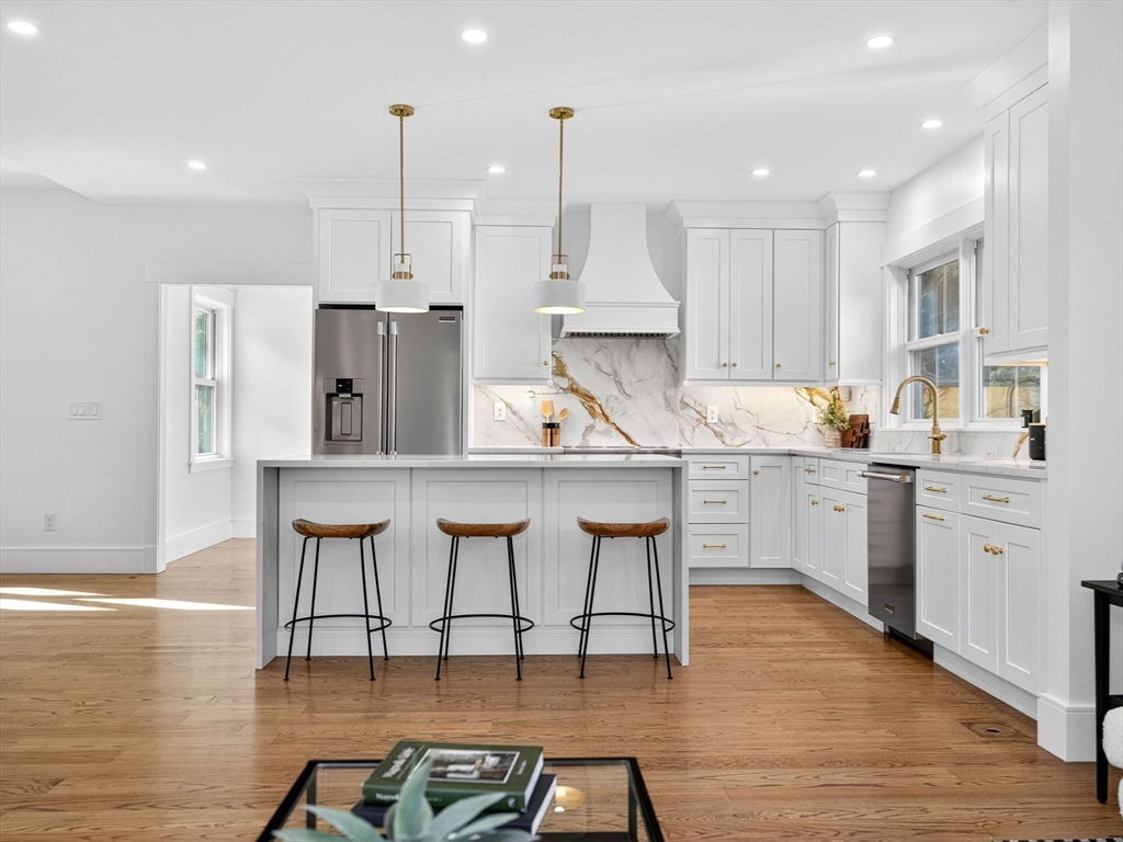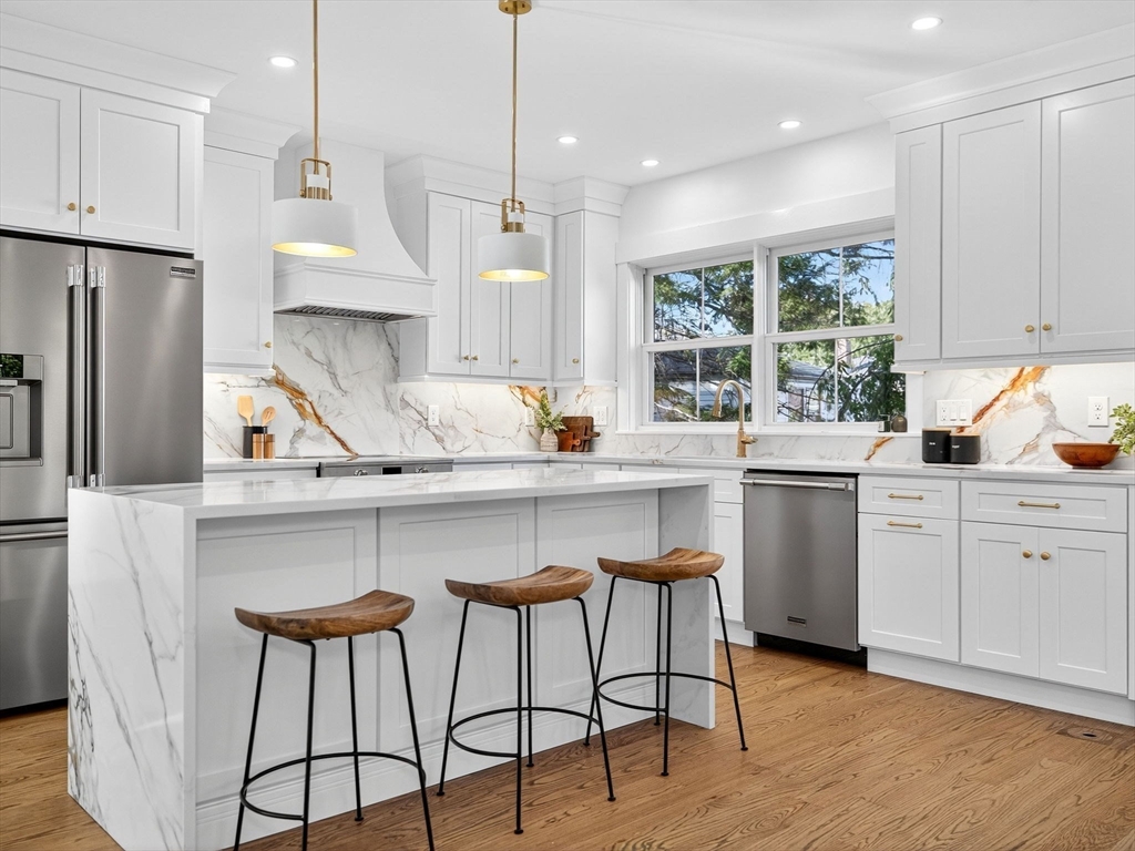 Designed with elegance and sophistication, this top floor Philadelphia-Styled condo offers 4 beds, 3.5 baths and 1 off-street parking spot! The main level boasts an expansive floor plan and has plenty of windows for copious amounts of natural light throughout the day. The fully equipped kitchen has electric cooking, stainless steel appliances, & shaker cabinetry complemented with gold hardware. A bedroom with an en ensuite complete the main level. 3 bedrooms are on the second level. The owner suite has a massive walk-in closet and a beautiful en-suite with showcasing an oversized shower. Other noteworthy features include laundry on the second level, a finished storage area in the basement, private yard and shared patio. Conveniently located between Union and Inman Squares with a variety of local shops, unique eateries/bars and close to the Union Greenline T-Stop.