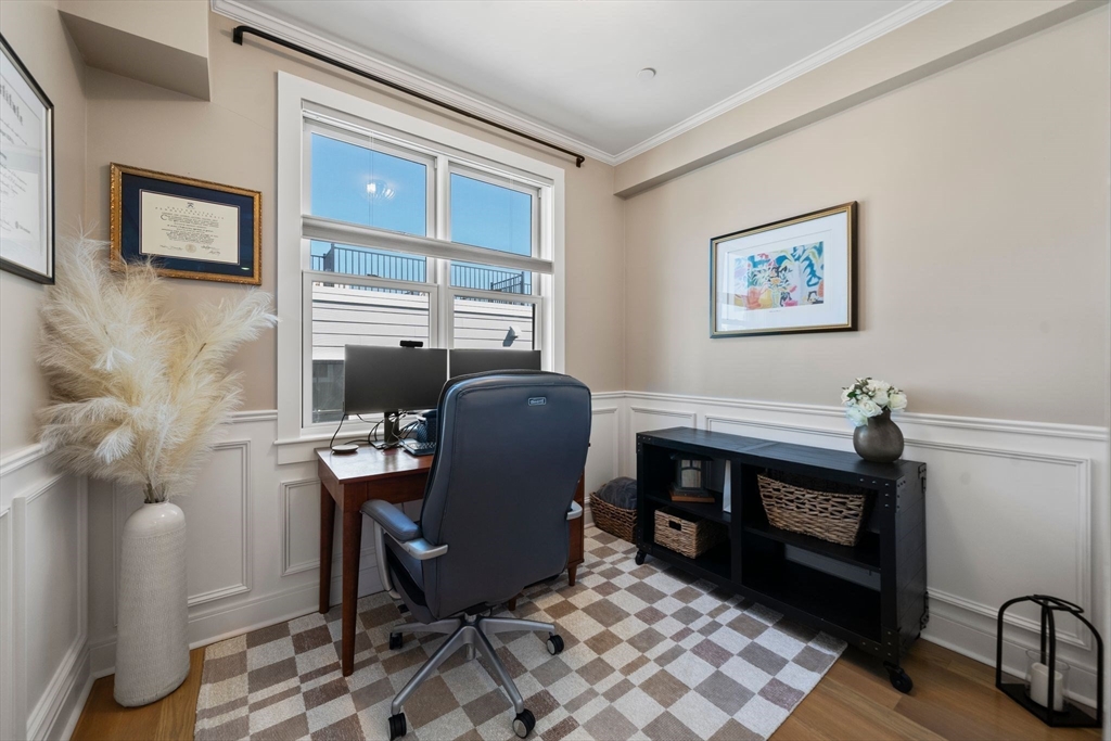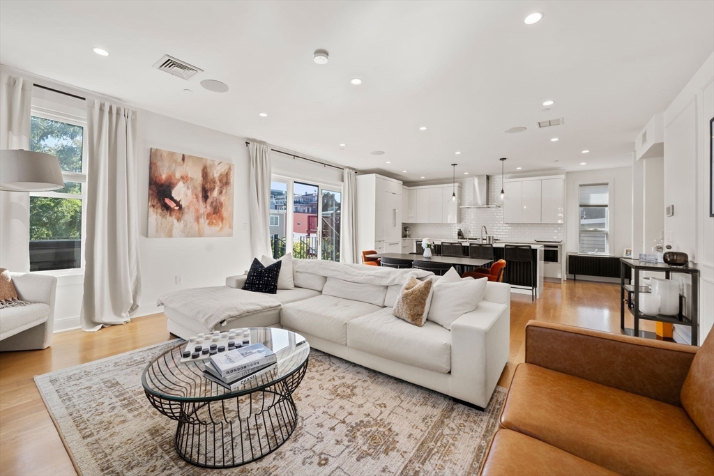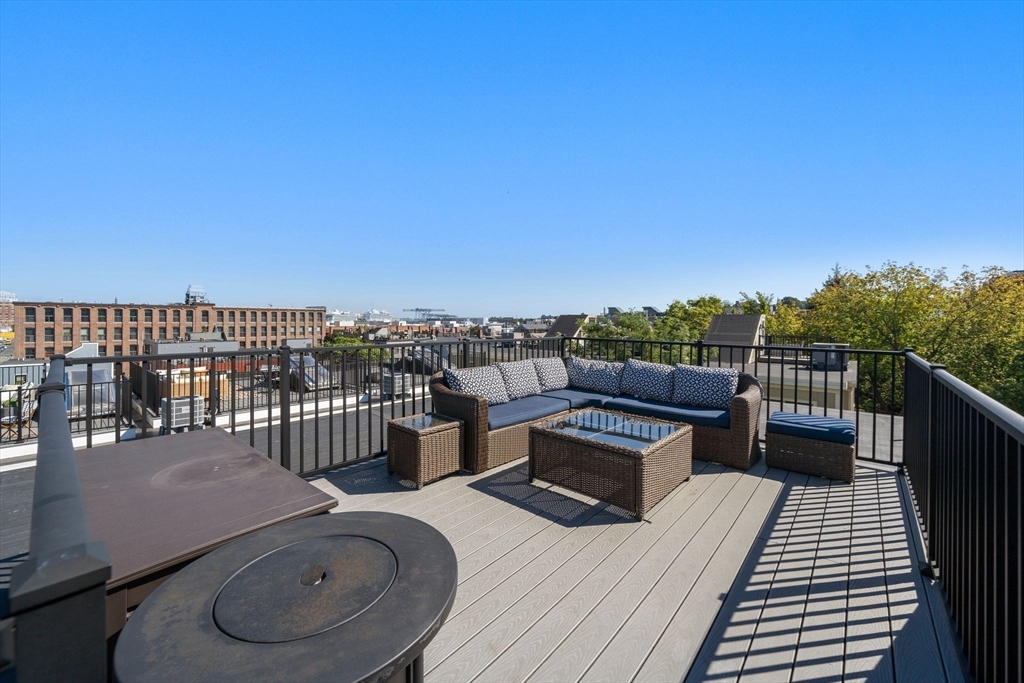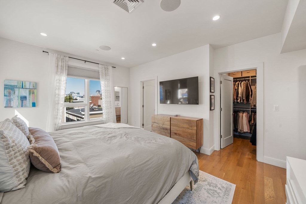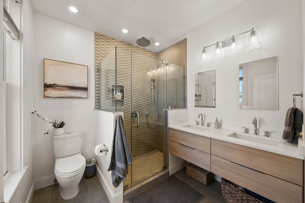 Welcome to the 341 E Street Penthouse — where modern design meets South Boston lifestyle. Flooded with natural light, this stunning condo offers an open floor plan that seamlessly connects a stylish kitchen with custom cabinetry, stainless steel appliances, and a spacious living area made for entertaining or unwinding. The serene primary suite, second bedroom with generous storage, and versatile bonus room—ideal for an office, nursery, or guest space—offer flexibility to fit your lifestyle. Two full baths feature sleek tile and high-end finishes throughout. Step outside to your private deck for morning coffee or enjoy sweeping city views from your private roof deck. With in-unit laundry, central air, garage parking and private extra storage, every detail was designed for comfort and convenience. Perfectly located near West Broadway’s restaurants, the Seaport, and South Boston’s beaches, this home captures the best of city living.