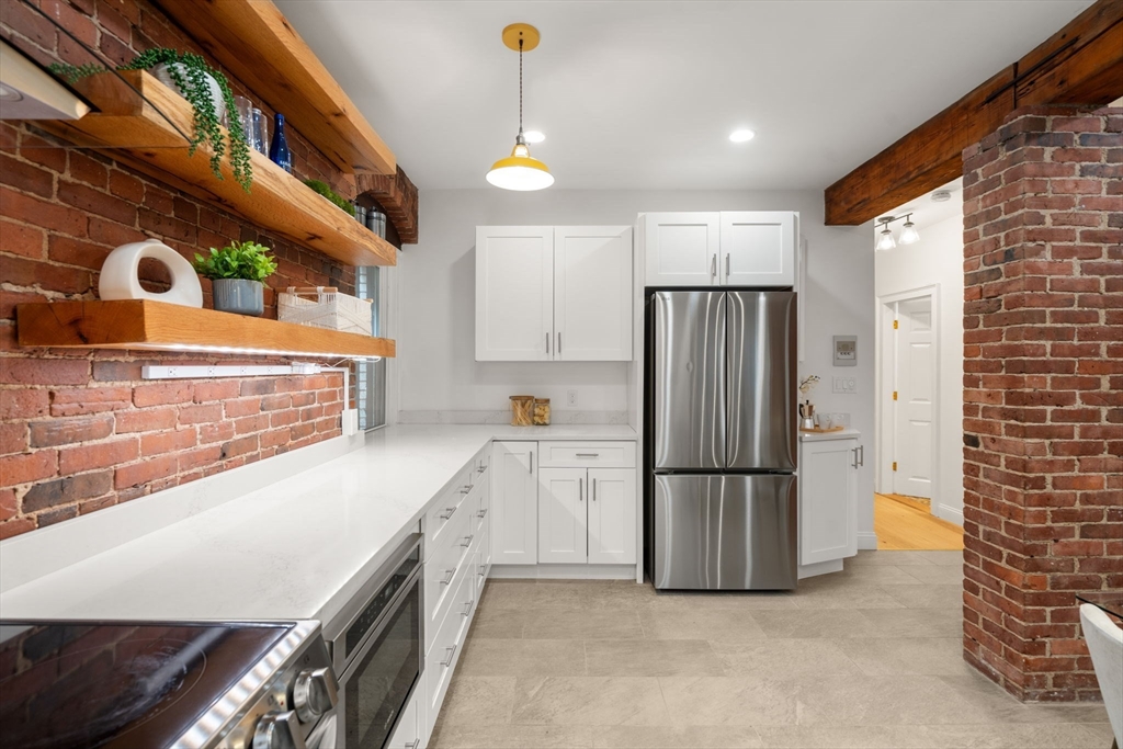 Every so often, that dream home in a dream location hits the market, & this is it. Perfectly situated on coveted Kent St in the heart of Brookline Village, this magazine-worthy 2-bed residence blends architectural character w/ thoughtful modern updates. The updated eat-in kitchen shines w/ quartz counters, custom red oak shelving w/ under lighting, vented induction range, soft-close cabinetry, pantry, exposed brick, support beams, recessed lighting & new stainless appliances. 9 ft ceilings, arches, wood floors & abundant natural light create an effortless flow that highlights every detail. Two spacious beds plus a flexible bonus room or cozy Harry Potter-style nook provide comfort & versatility. Curb appeal, craftsmanship & warmth define every inch, w/ designer touches throughout. Pet-friendly w/ private storage, this home delivers lifestyle, charm & convenience near Cypress Playground, Emerson Park, Coolidge Corner, Longwood Medical & Whole Foods. OH Thur 3-4, Sat 12-1, Sun 12-1:30