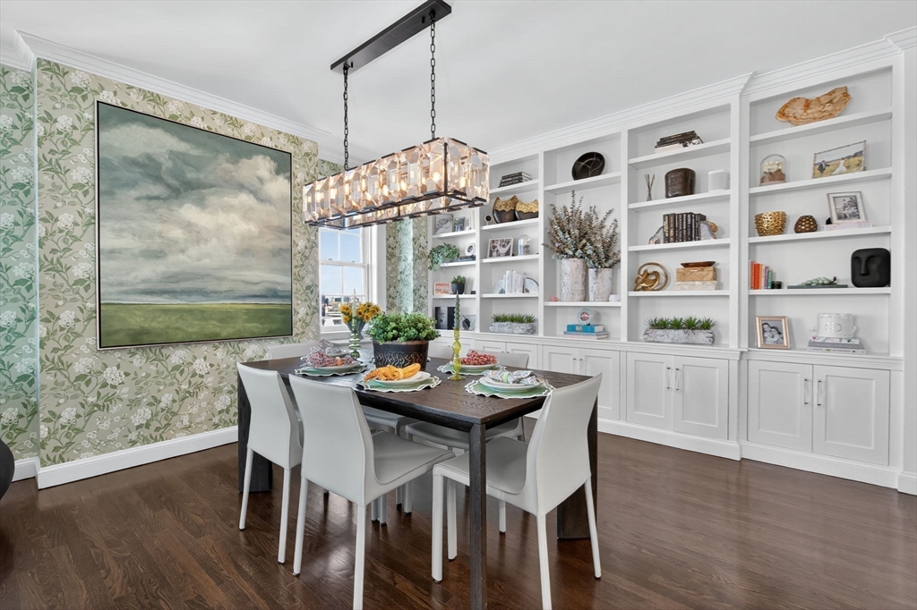 A masterfully reimagined penthouse atop the corner of Comm Ave & Clarendon St. Spanning more than 2,300 sq ft on 1 sunlit level w/ 3 exposures, this residence offers an unrivaled blend of architectural heritage & contemporary sophistication. A grand foyer sets the stage, welcoming you to an expansive living/dining area featuring marble wood-burning fireplace, custom millwork, &sweeping Back Bay views. The designer chef’s kitchen is a true centerpiece, complete w/ top-of-the-line appliances, adjacent butler’s pantry, & statement picture window framing the city skyline.The thoughtfully designed living quarters comprises 4 versatile bedrooms & 3 baths allowing for a range of room functionality. A dramatic primary suite captivates w/ fireplace, walk-in dressing room, private study,& spa-inspired bath w/ radiant heated floors.Exquisite details include luxury wall coverings, tailored built-ins &refined finishes. Addt'l highlights include, an office, pvt storage, central a/c & on-site super