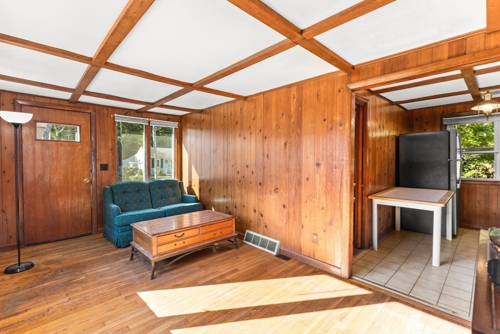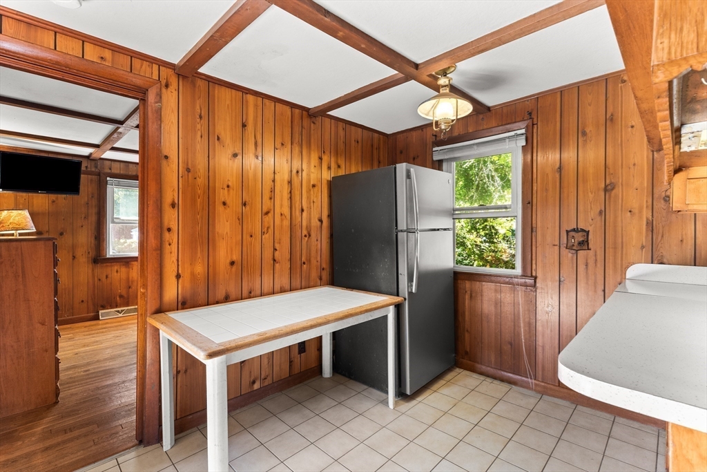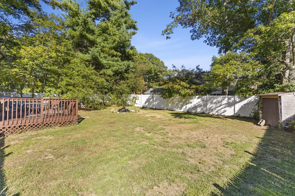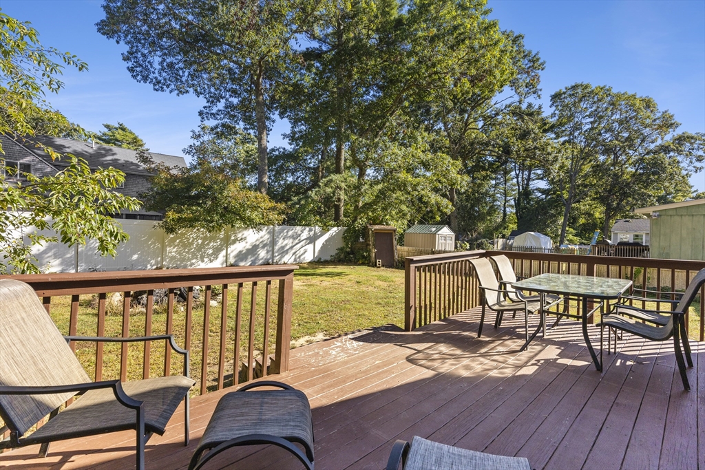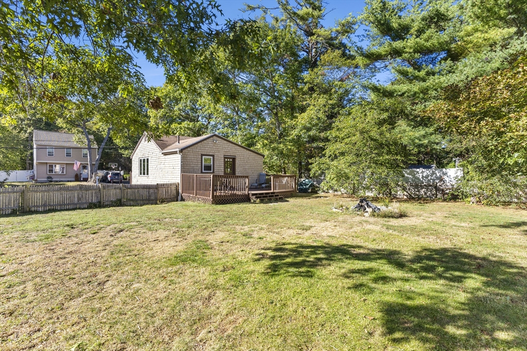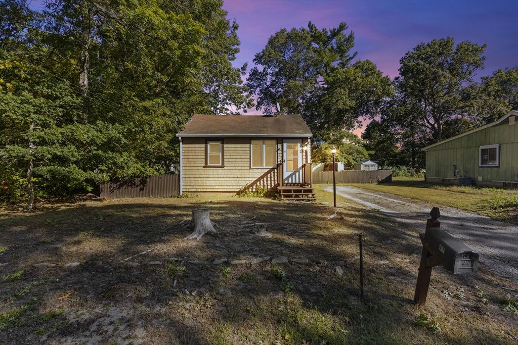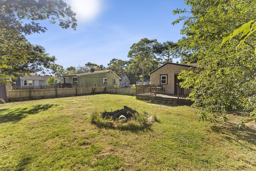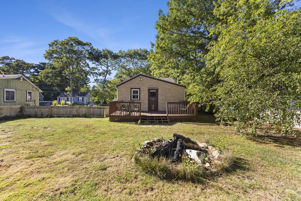 This cozy doll house is sandwiched between two beaches. A freshwater pond down the street and a saltwater beach less than a mile away. This adorable home will make a great starter or beach retreat. Lovely hardwood in living room with ample closets. Eat in kitchen with breakfast bar and natural gas cooking. Hardwood built-in pantry for all your storage needs. Hardwood in bedroom. Full basement for further storage with washer/dryer hookup. Walk out to your attached deck that overlooks the large, fenced back yard for your pet's enjoyment or summer family cook outs and outdoor firepit fun. Furnace is only five years old, and most windows have been updated. This home offers lots of character. Come view the charm and make it your own! Close to all major highways for easy commute. Minutes to the Cape bridges. 24 hour notice a MUST for showings.