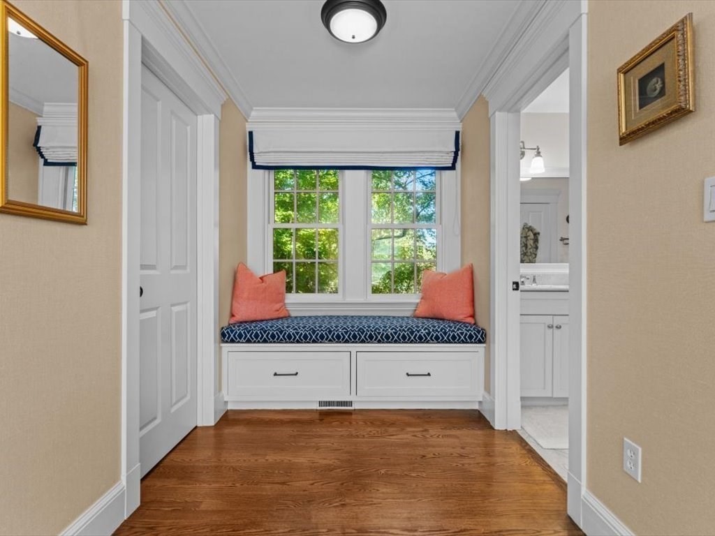 Beautifully sited on a knoll, this exceptional home by Windover Construction offers timeless design and numerous updates by the current owner. The inviting exterior features a farmer’s porch, stone terraces, professional landscaping, and expanded parking. Flexible floor plan with option for a first-floor primary or guest suite. Large gourmet eat-in kitchen opens to a cozy family room with French doors leading to private gardens. Open dining and living room with fireplace and additional French doors provide seamless indoor-outdoor flow. Second floor includes four bedrooms, featuring a spacious primary suite with luxurious bath, separate shower, and two walk-in closets. A laundry room and additional full bath complete the level. Finished lower level offers a mudroom, exercise room, office, and sixth bedroom with adjoining bath and large windows for natural light. Fully fenced gardens include a private dog run. Discover where timeless architectural charm meets todays modern comforts.