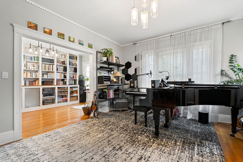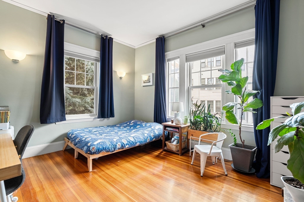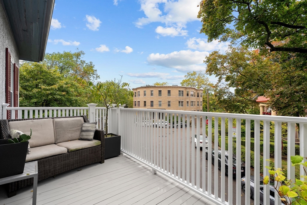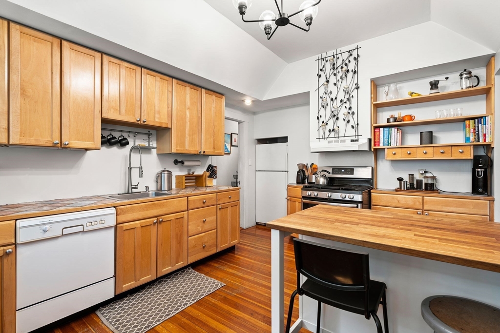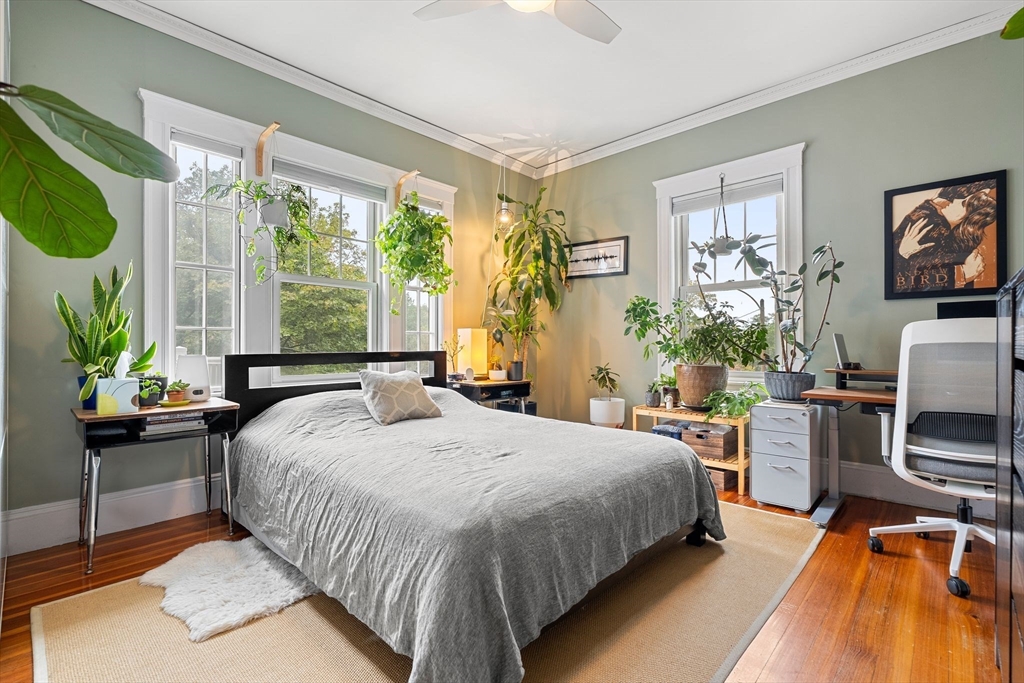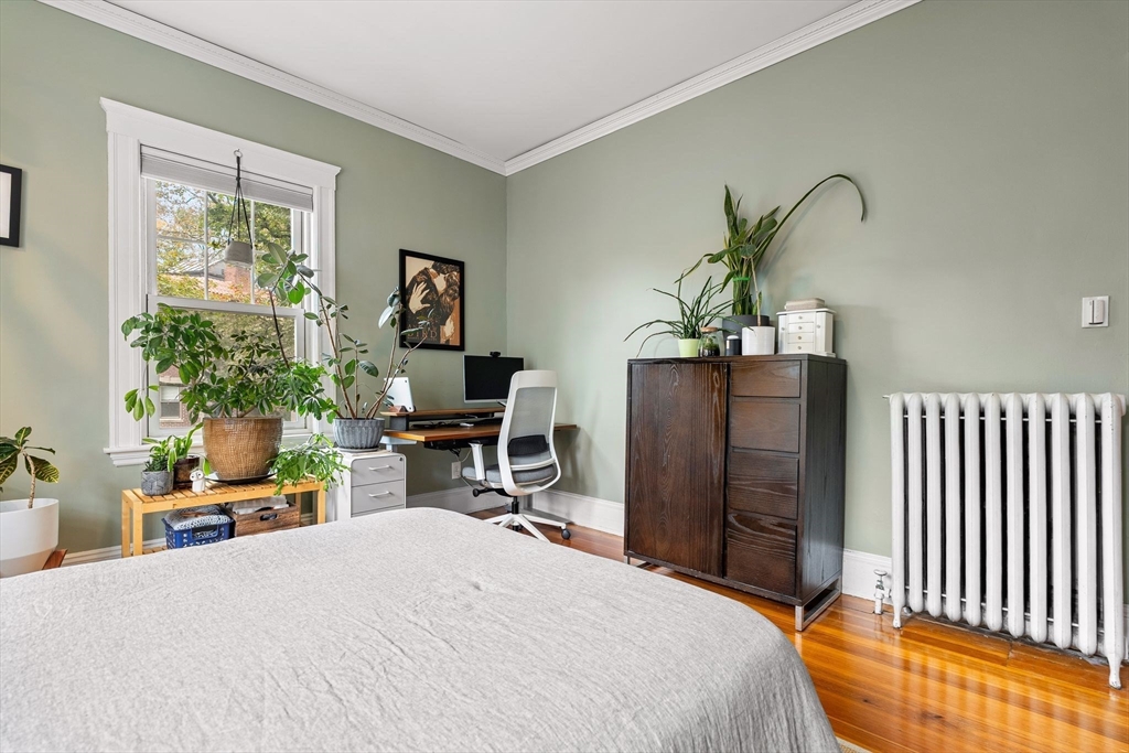 Charming 2 bed, 2nd floor condo is hidden just one block from bustling Centre St. in a quaint, tree-lined neighborhood. You’ll be greeted by an oversized foyer with a full wall of custom-built bookshelves, an office area, and access to the large front porch. Open floor plan with soaring ceilings flows into the formal living rm with decorative fireplace, currently being utilized as the piano room. Off the LR you'll find the family/dining area with original built-in hutch. A walk-through pantry leads to a well-appointed kitchen w/ a breakfast bar plus ample counter & storage space. Lovely bathroom is highlighted by a clawfoot tub & period details, and two large bedrooms on opposite sides provide exceptional privacy. Common laundry in building + large private basement storage rm. This home is a unique space offering a peaceful location in the cloud of urban life. Walkable to Centre St, Jamaica Pond, & an easy commute to downtown or Longwood via Orange Line T or 39 bus.