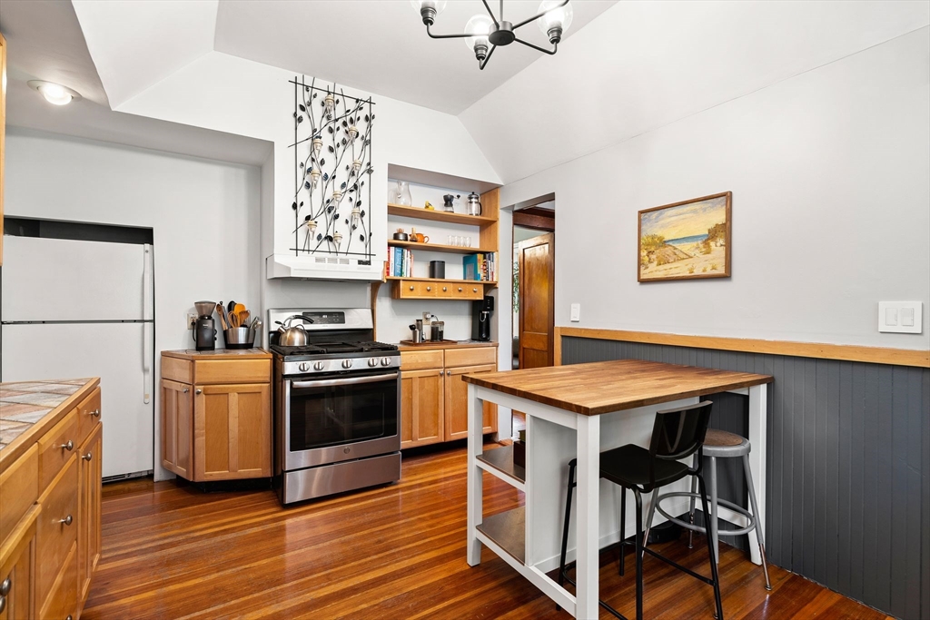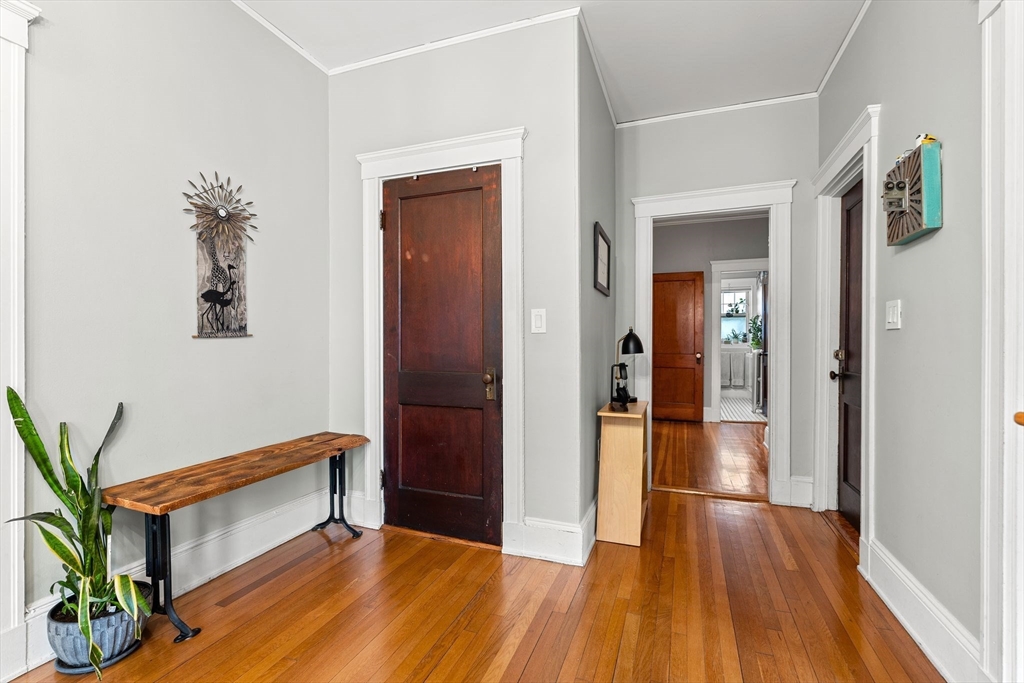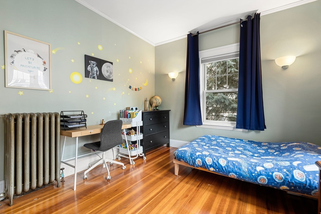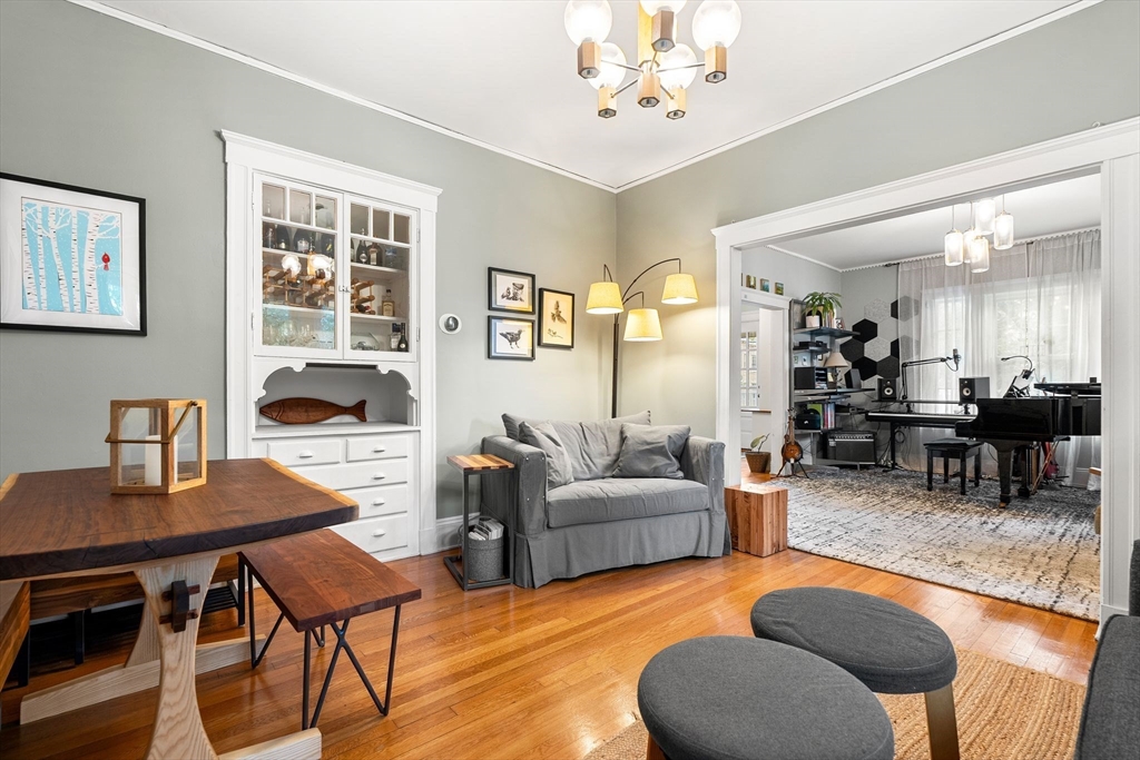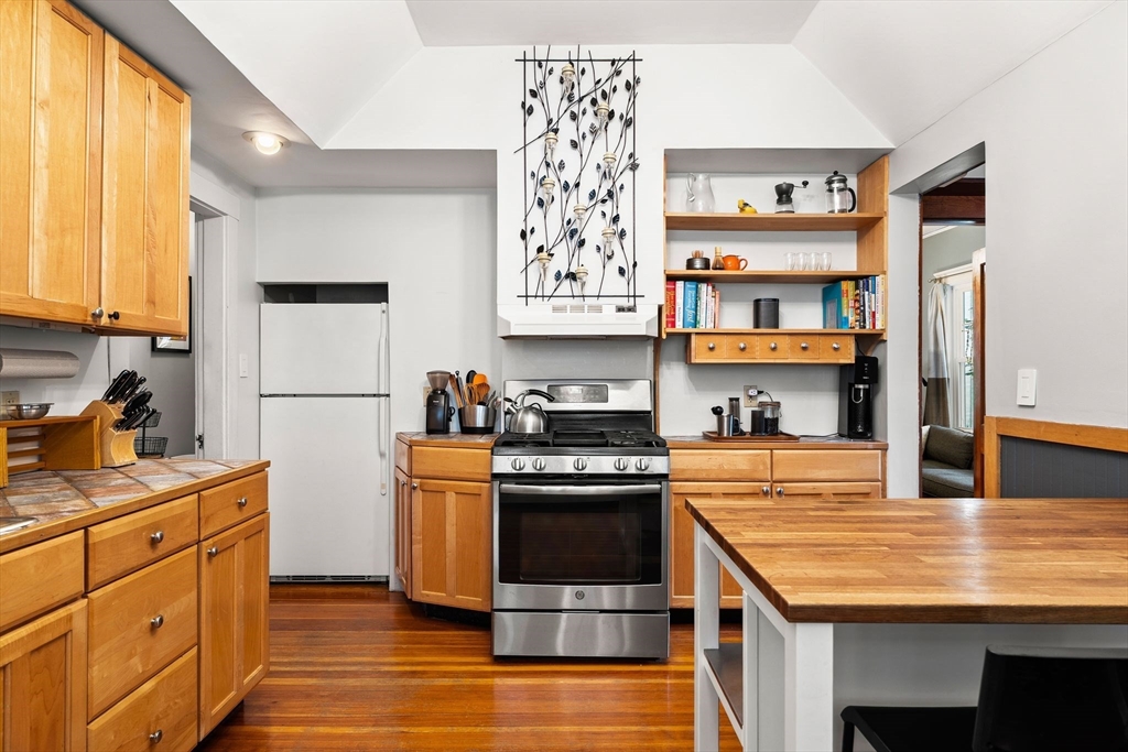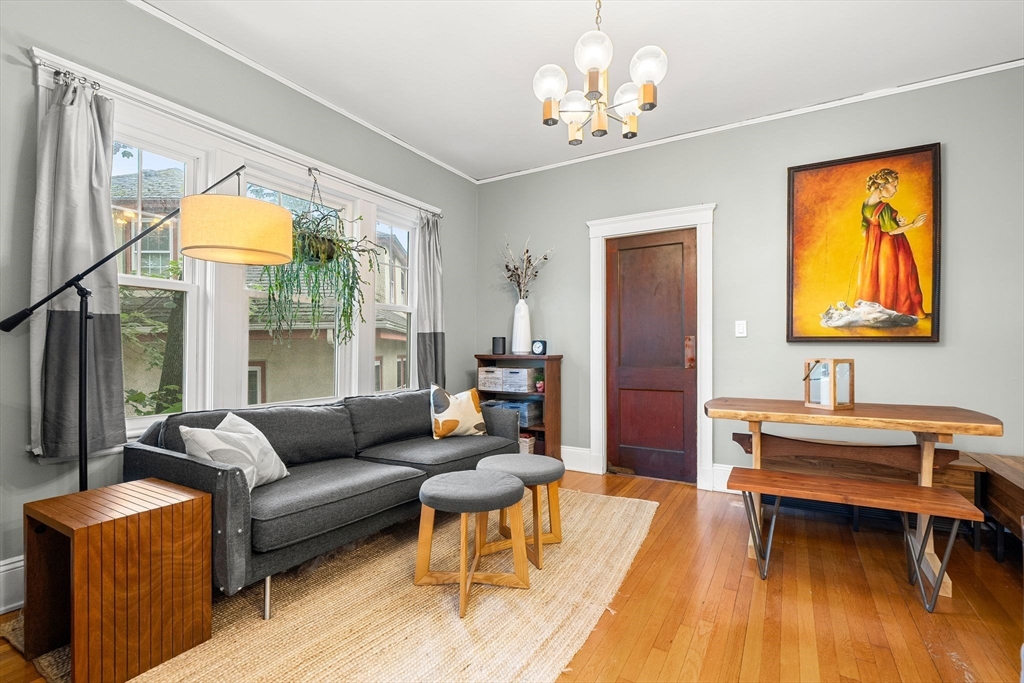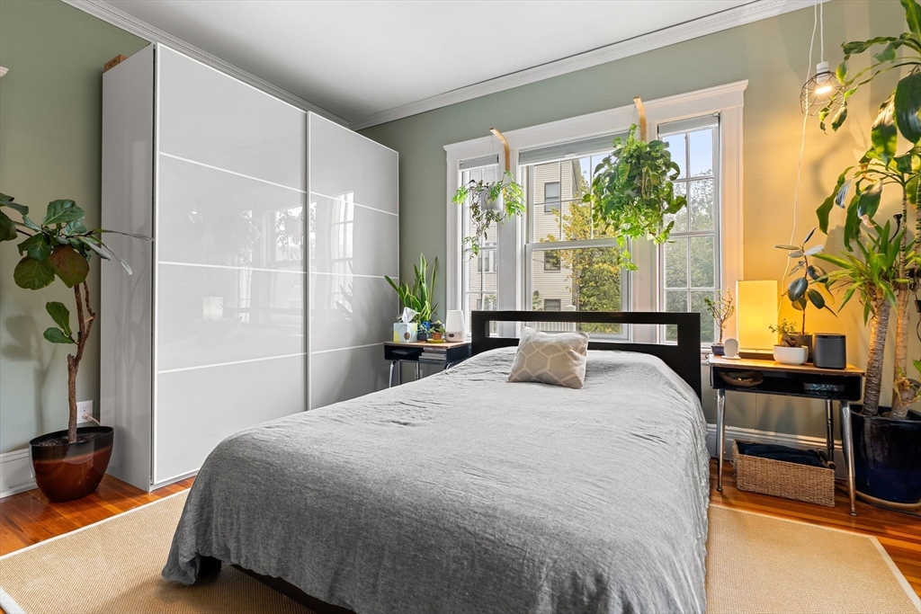 Charming 2 bed, 2nd floor condo is hidden just one block from bustling Centre St. in a quaint, tree-lined neighborhood. You’ll be greeted by an oversized foyer with a full wall of custom-built bookshelves, an office area, and access to the large front porch. Open floor plan with soaring ceilings flows into the formal living rm with decorative fireplace, currently being utilized as the piano room. Off the LR you'll find the family/dining area with original built-in hutch. A walk-through pantry leads to a well-appointed kitchen w/ a breakfast bar plus ample counter & storage space. Lovely bathroom is highlighted by a clawfoot tub & period details, and two large bedrooms on opposite sides provide exceptional privacy. Common laundry in building + large private basement storage rm. This home is a unique space offering a peaceful location in the cloud of urban life. Walkable to Centre St, Jamaica Pond, & an easy commute to downtown or Longwood via Orange Line T or 39 bus.