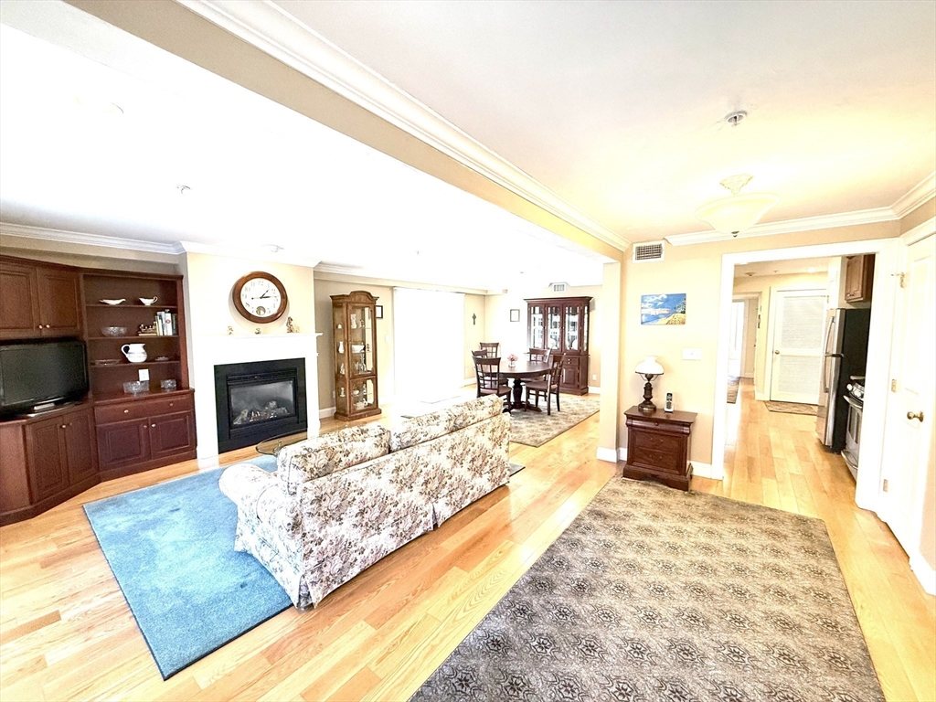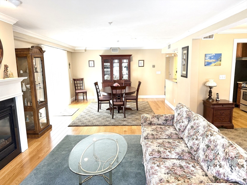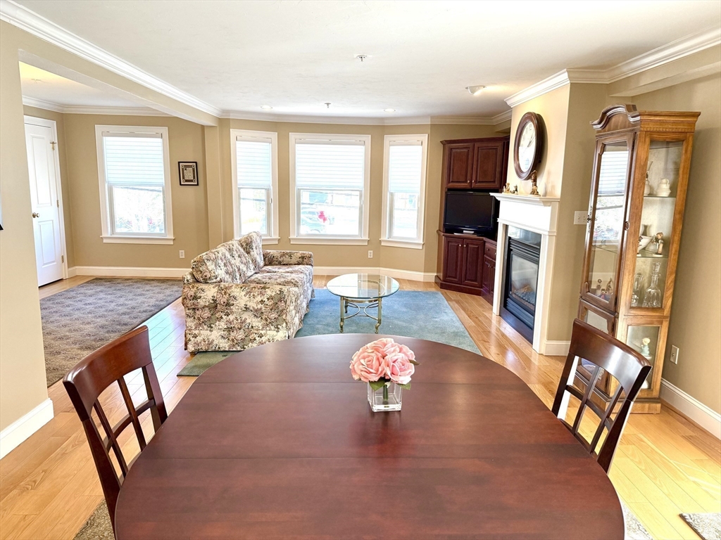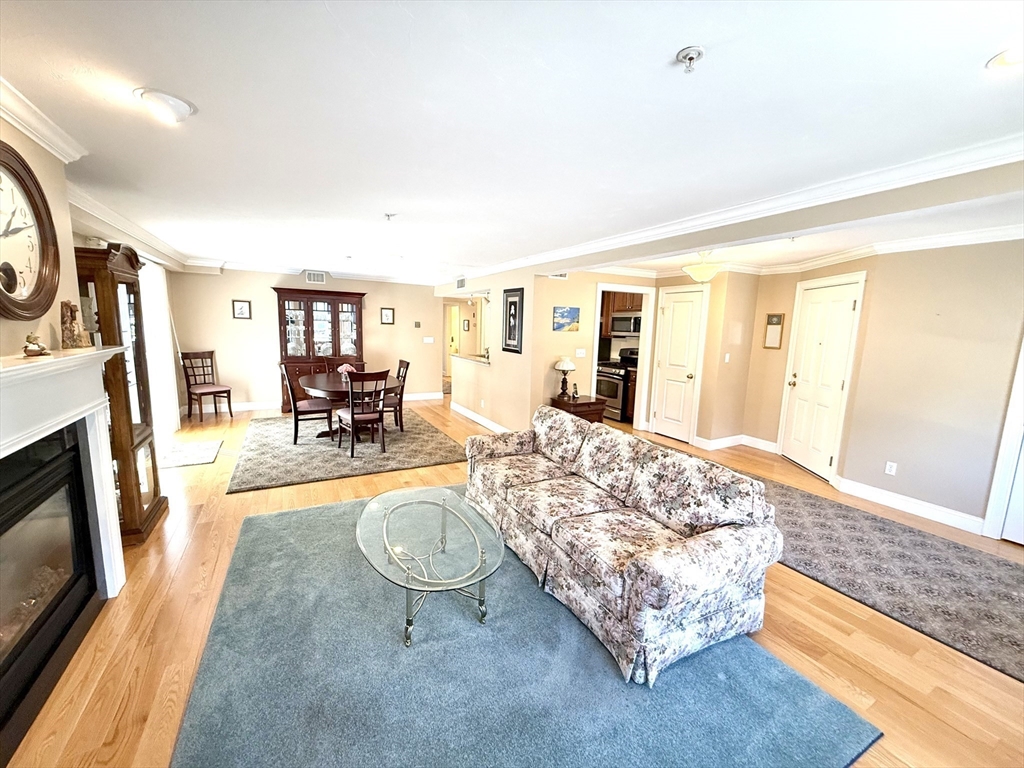 A commuter’s dream — just minutes from the commuter rail to Boston and located in the heart of vibrant Stoughton Center, offering shops, restaurants, and more! This beautifully maintained one-level unit proudly owned by its original owner, features an open floor plan with a spacious living room, complete with a gas fireplace, gleaming hardwood floors, crown molding, and recessed lighting. The living area flows seamlessly into the dining space with sliders leading to your own private balcony. The kitchen boasts granite countertops, stainless steel appliances, and ample cabinetry. The king-sized primary suite includes a walk-in closet and a private en-suite bath. Additional highlights include 2 full bathrooms, full-size in-unit laundry, A/C, an elevator, and one, exclusive-use parking space. The condo fee also includes heat and hot water, and the building features a brand-new heating system. Move right in and enjoy comfort, style, and unbeatable convenience!