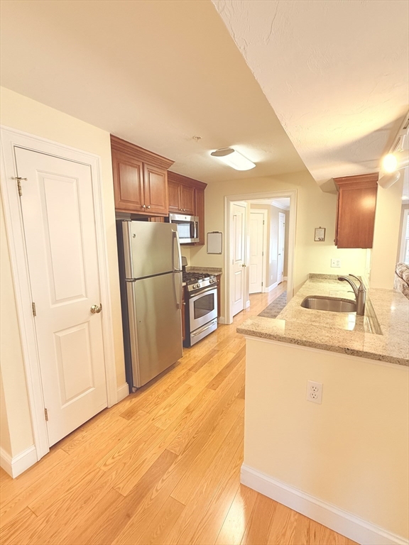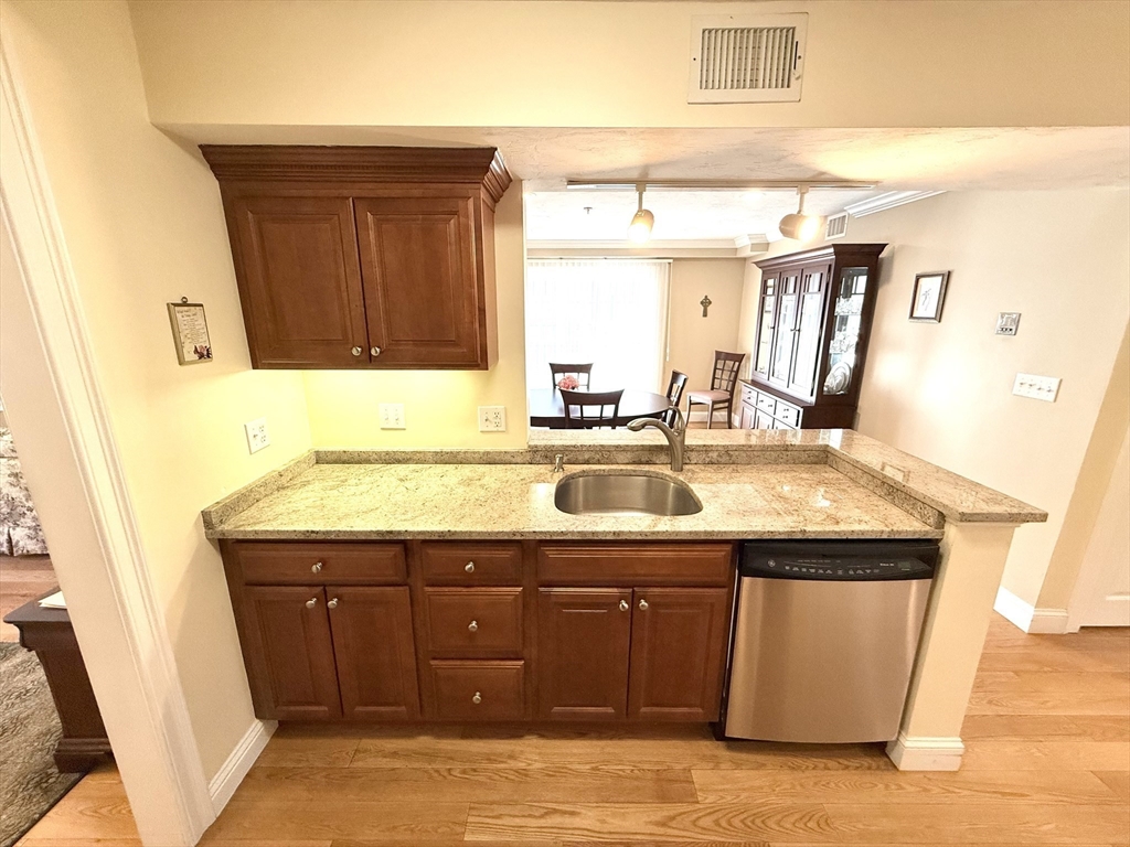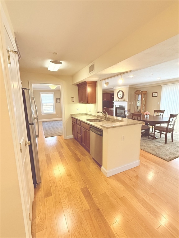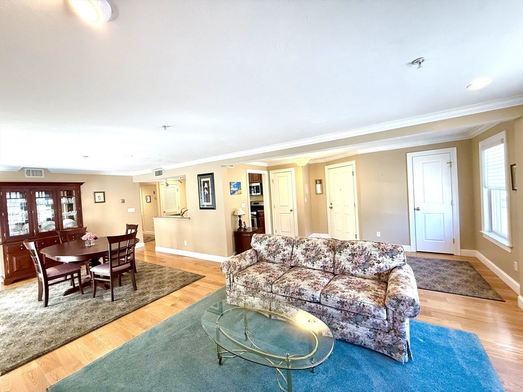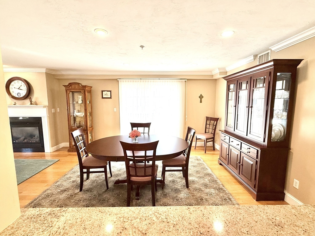 A commuter’s dream — just minutes from the commuter rail to Boston and located in the heart of vibrant Stoughton Center, offering shops, restaurants, and more! This beautifully maintained one-level unit proudly owned by its original owner, features an open floor plan with a spacious living room, complete with a gas fireplace, gleaming hardwood floors, crown molding, and recessed lighting. The living area flows seamlessly into the dining space with sliders leading to your own private balcony. The kitchen boasts granite countertops, stainless steel appliances, and ample cabinetry. The king-sized primary suite includes a walk-in closet and a private en-suite bath. Additional highlights include 2 full bathrooms, full-size in-unit laundry, A/C, an elevator, and one, exclusive-use parking space. The condo fee also includes heat and hot water, and the building features a brand-new heating system. Move right in and enjoy comfort, style, and unbeatable convenience!