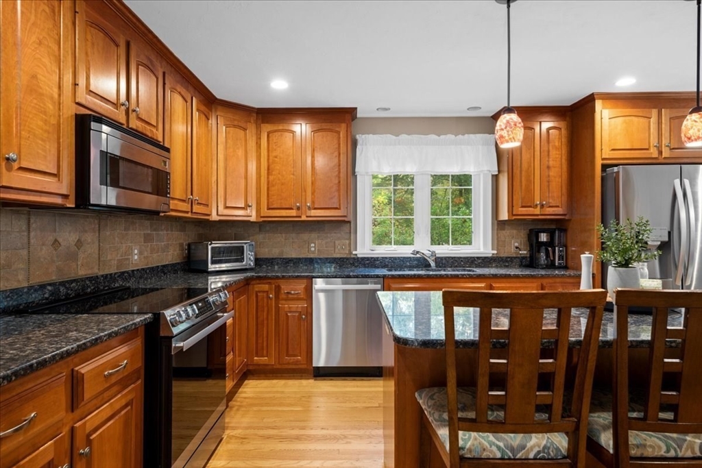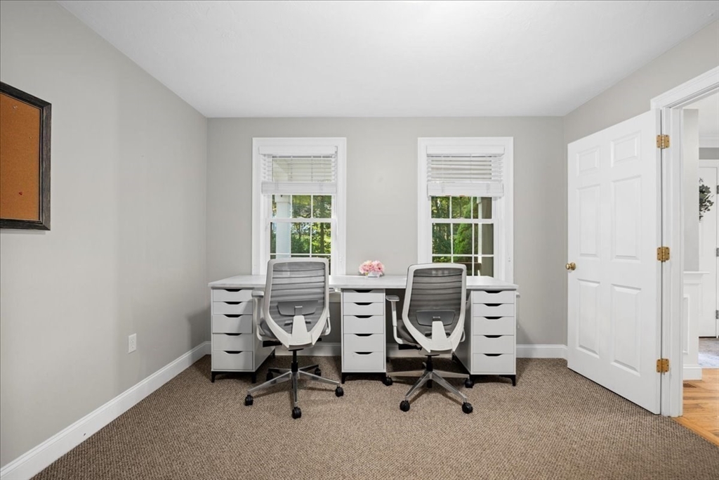Welcome to 14 Auburn Rd, nestled in one of West Millbury’s most desirable locations. Set back from the road, this beautiful 4-bedroom home offers a wonderful sense of privacy with peaceful woods behind. Inside, you’ll find a spacious eat-in kitchen that opens to a stunning cathedral great room—perfect for entertaining or relaxing. The primary suite includes its own full bath for comfort and convenience, while a dedicated home office provides valuable flexibility for today’s lifestyle. Hardwood floors highlight the main level, adding warmth and character throughout. With its inviting layout, natural light, and tranquil setting, this home combines the space and comfort of suburban living with the privacy and charm so many buyers are looking for. Conveniently located near major routes, shopping, and schools, 14 Auburn Rd is ready to welcome you home.