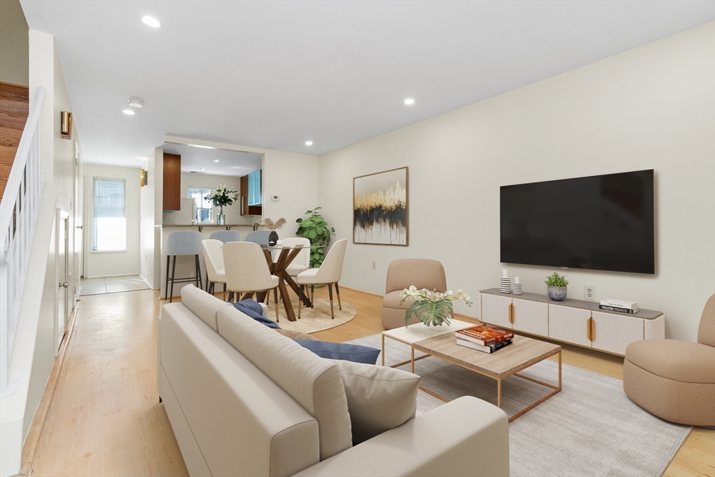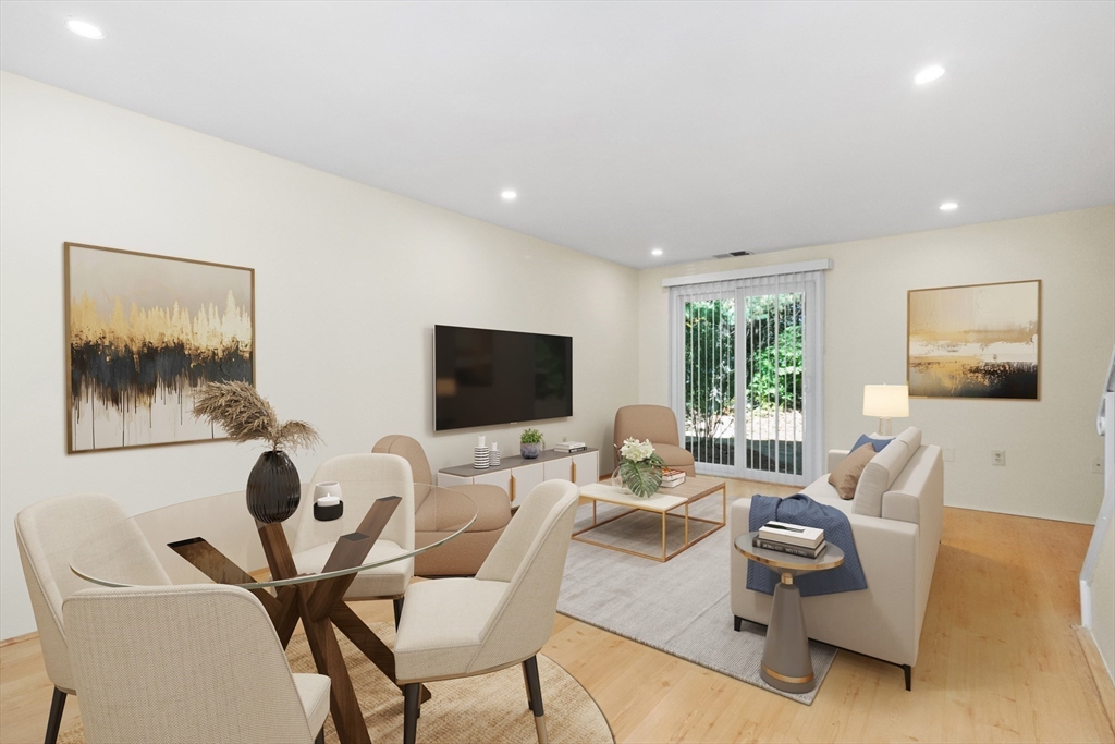 Here's your opportunity to own a rarely available townhouse in popular Natick Green offering 2 levels of living and your own private entrance! This 2 bedroom, 1.5 bath condo features a LR and DR combo with Pergo laminate flooring and recessed lights. The slider off the LR leads to a small patio and outdoor space for relaxation & enjoyment. Completing the first floor is the kitchen with updated contemporary cabinets, a breakfast bar and powder room with a pedestal sink. Upstairs are two spacious bedrooms with recessed lighting, bamboo pre-engineered hardwood floors and a full wall of IKEA wardrobes with built-in shelves, drawers & lots of closet space. The glass sliding doors are fabulous! The main bathroom includes a new vinyl floor & LG front loading washer/dryer (2022). The unit has been freshly painted, replacement windows & slider & newer hot water tank.(2023). Amenities include inground pool, 2 tennis courts, separate barbecue area & on-site management. Great location, great unit