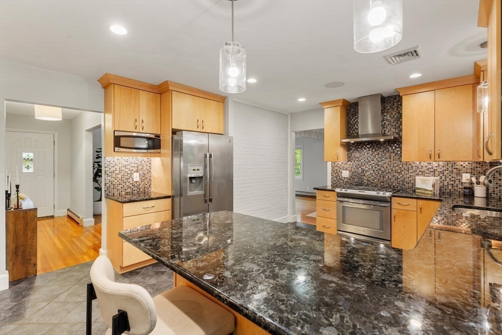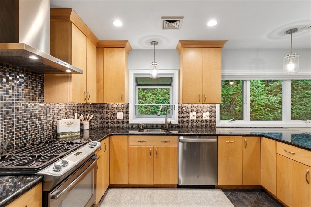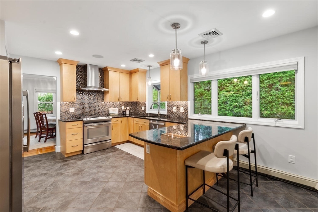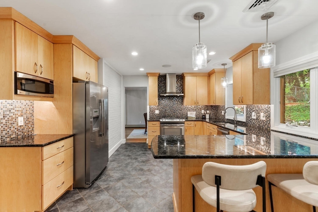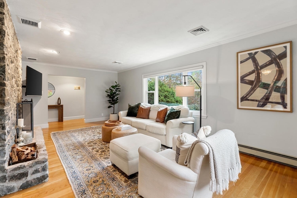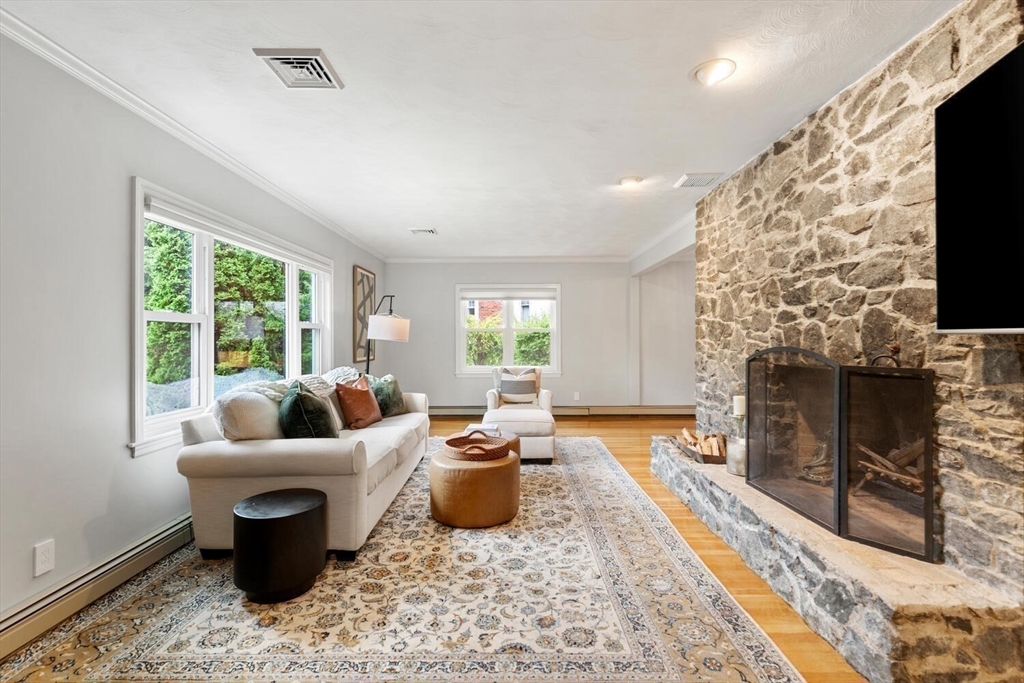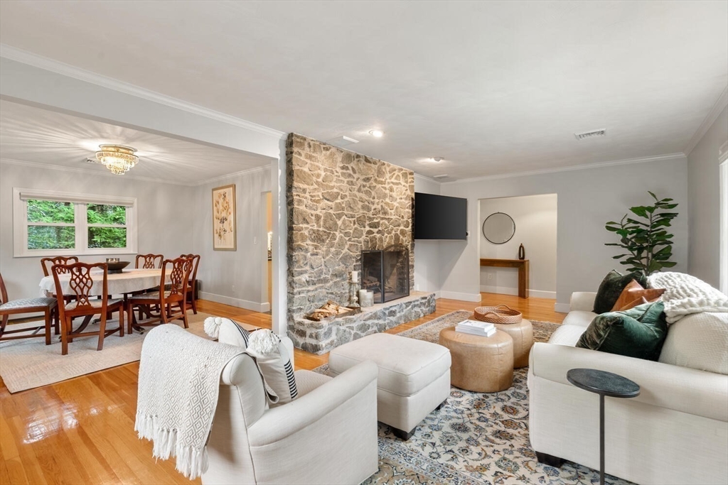Welcome to the Winchester Highlands! This inviting 4-bedroom, 2.5-bath home blends comfort and character in the desirable Lincoln School District—just a short distance to downtown Winchester, the commuter rail, I-93, and the Middlesex Fells. A sun-filled living room with custom stone fireplace flows seamlessly into the dining area, perfect for gatherings. The kitchen offers a vented gas range, light maple cabinetry, and a peninsula with views of the private backyard oasis featuring a stone patio and tree lined property. Enjoy easy single-level living with four bedrooms and 1.5 baths on the main floor, including a spa-inspired bath with walk-in shower and whirlpool tub not to mention hardwood floors throughout. The finished lower level offers a family room, home gym, full bath, laundry, and direct garage access. Thoughtfully maintained with many homeowner improvements, this home combines warmth, functionality, and timeless appeal in one of Winchester’s most sought-after neighborhoods.